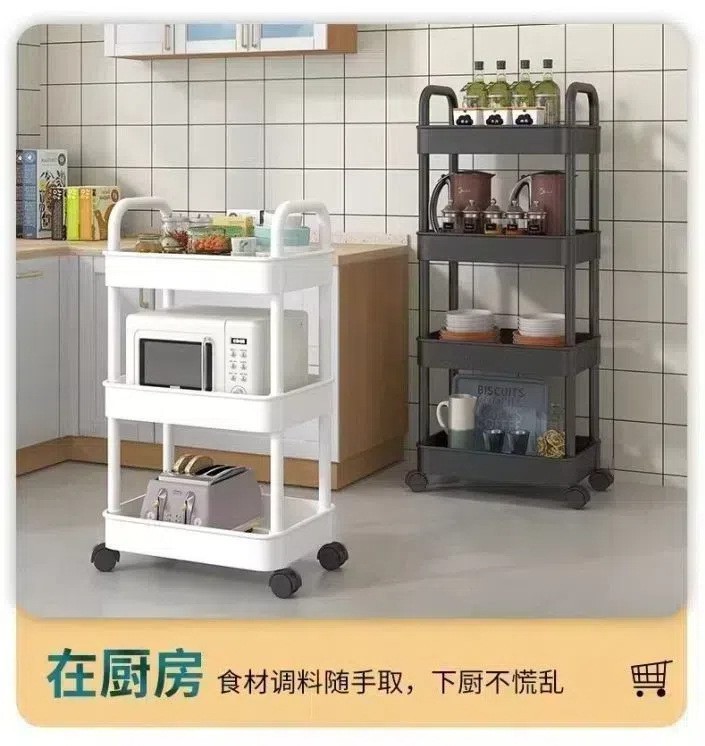 이동식 선반 플라스틱 트롤리 선반 가정용 바닥 화이트 3층 1/개스토어 가기