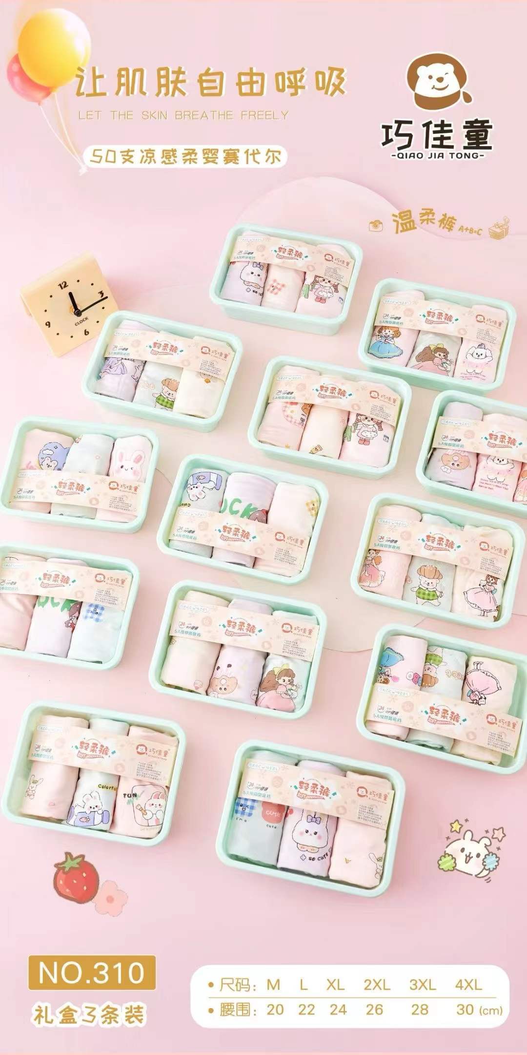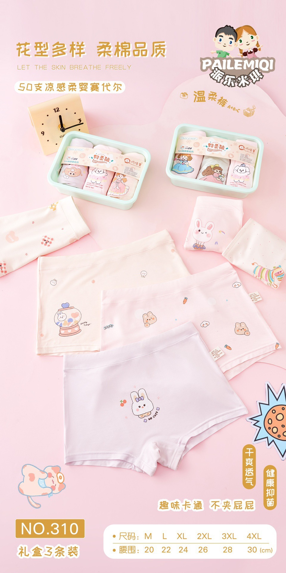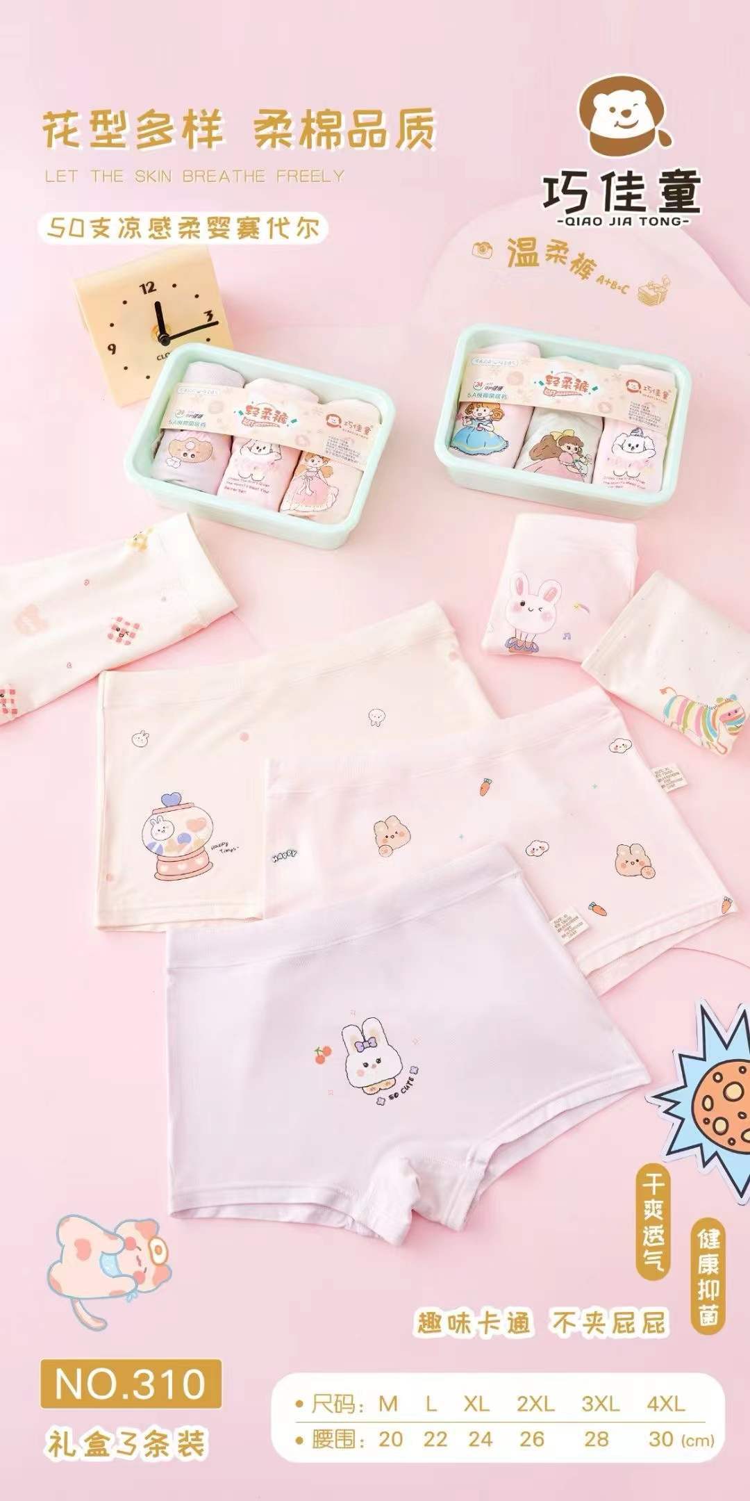 Qiaojiatong 310 어린이 순면 클래스 A 항균 속옷 소녀 속옷 어린이 원활한 만화 패턴 복서 팬티스토어 가기