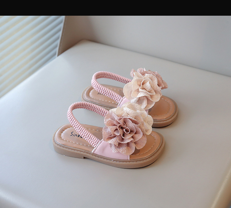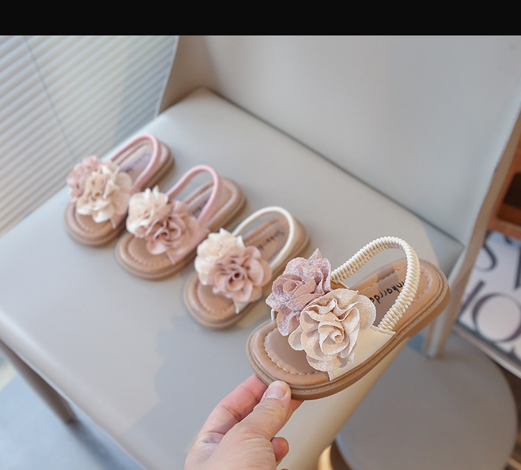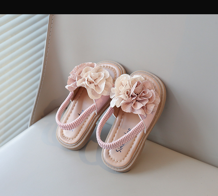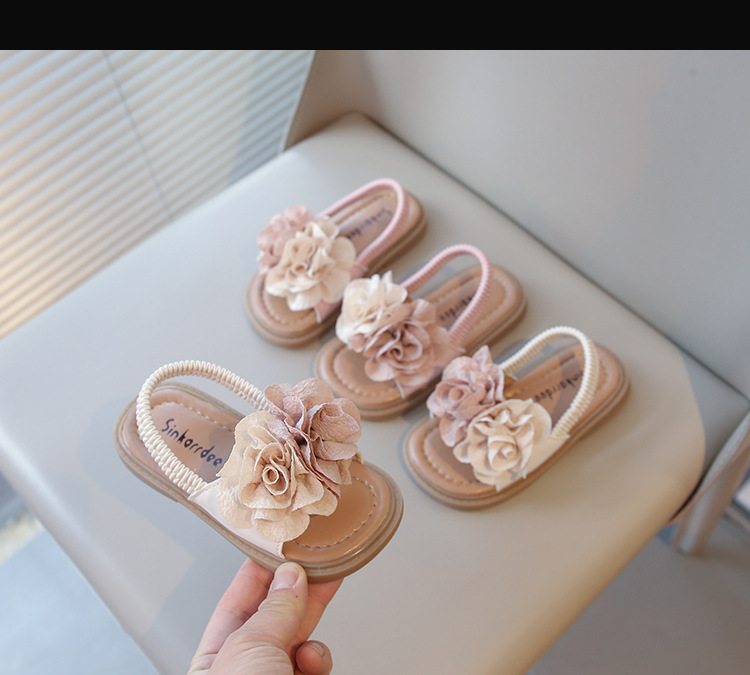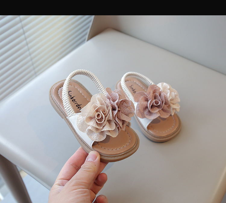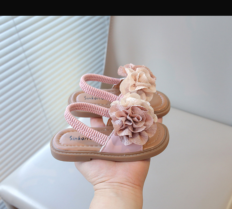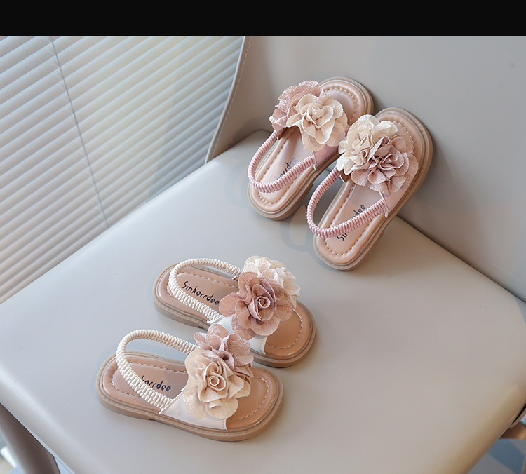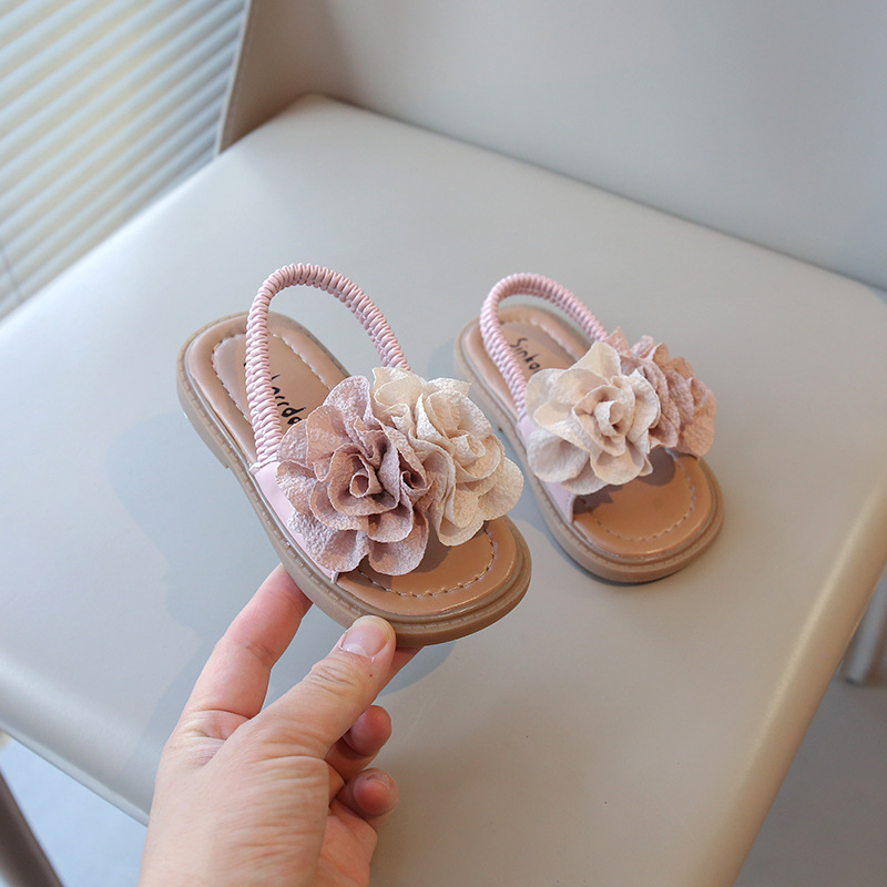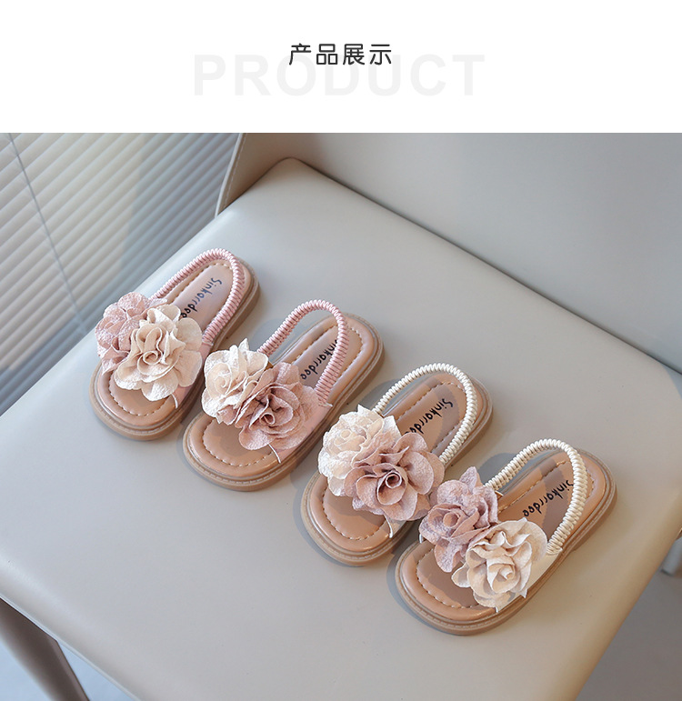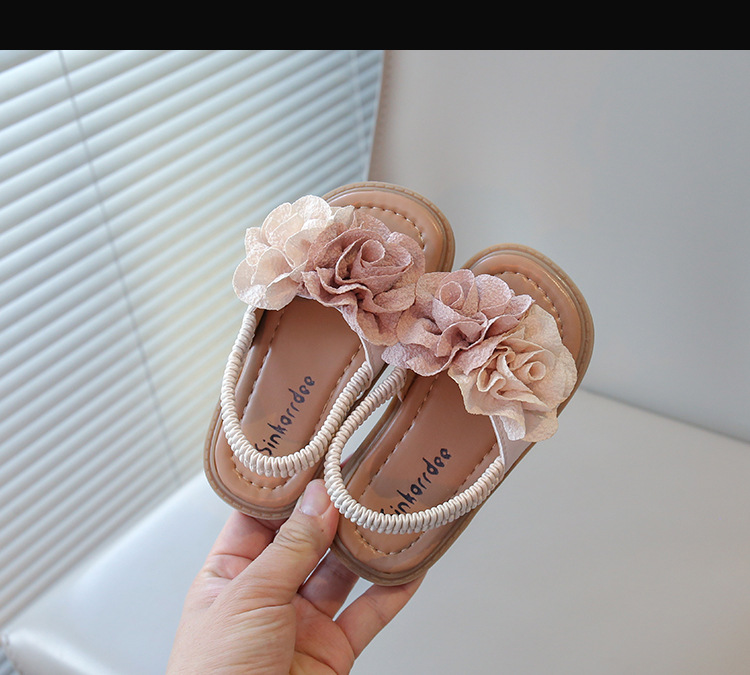 여아 샌들, 세련된 공주풍 신발, 2026년 여름 신상, 꽃 장식, 아기용 부드러운 밑창, 오픈토 비치 샌들, 트렌디스토어 가기