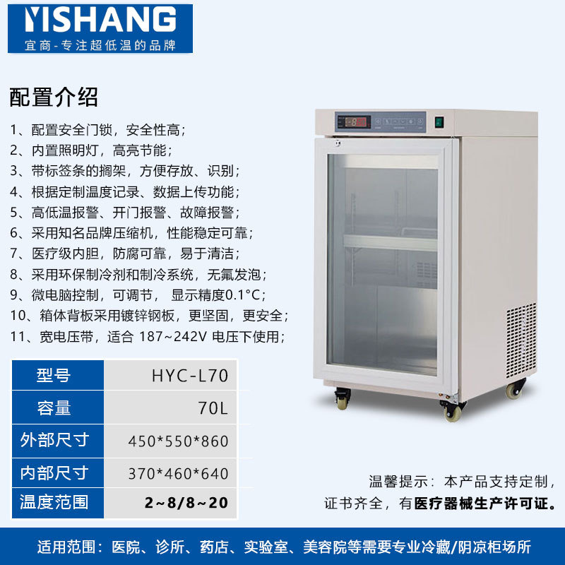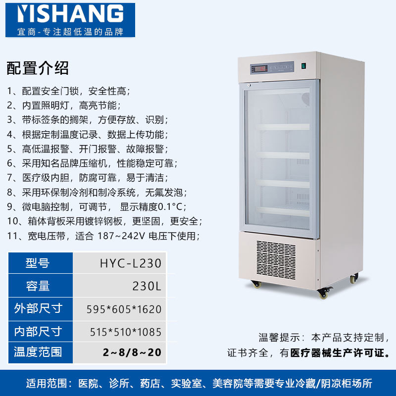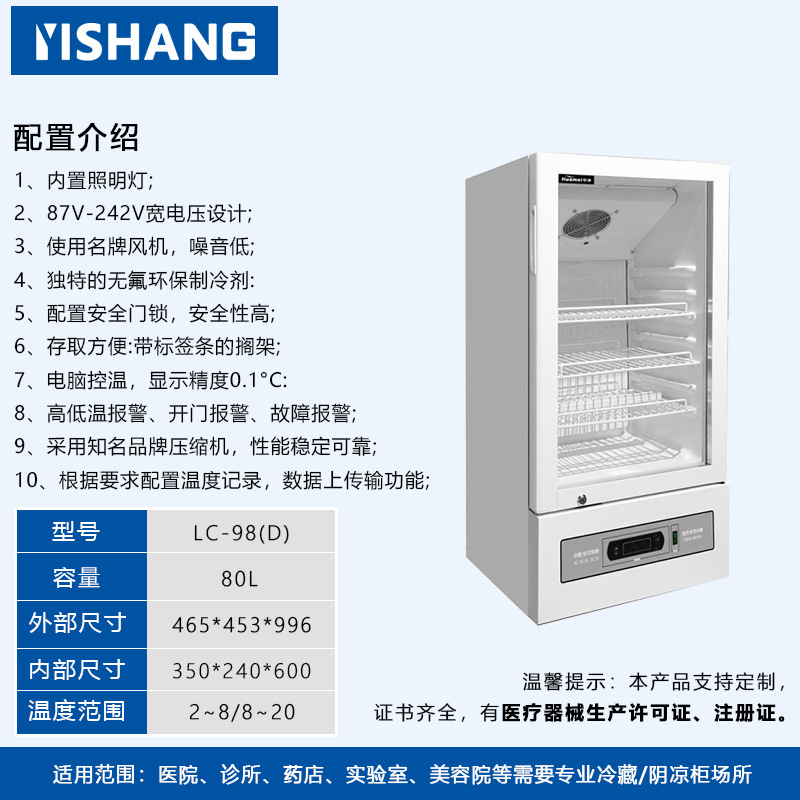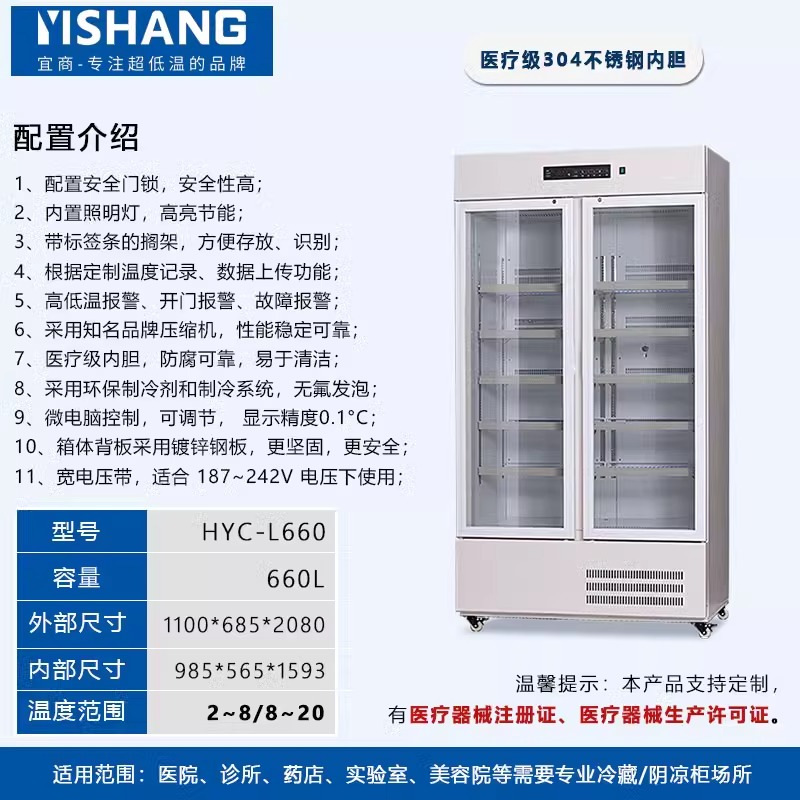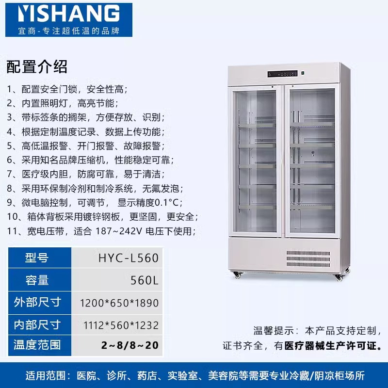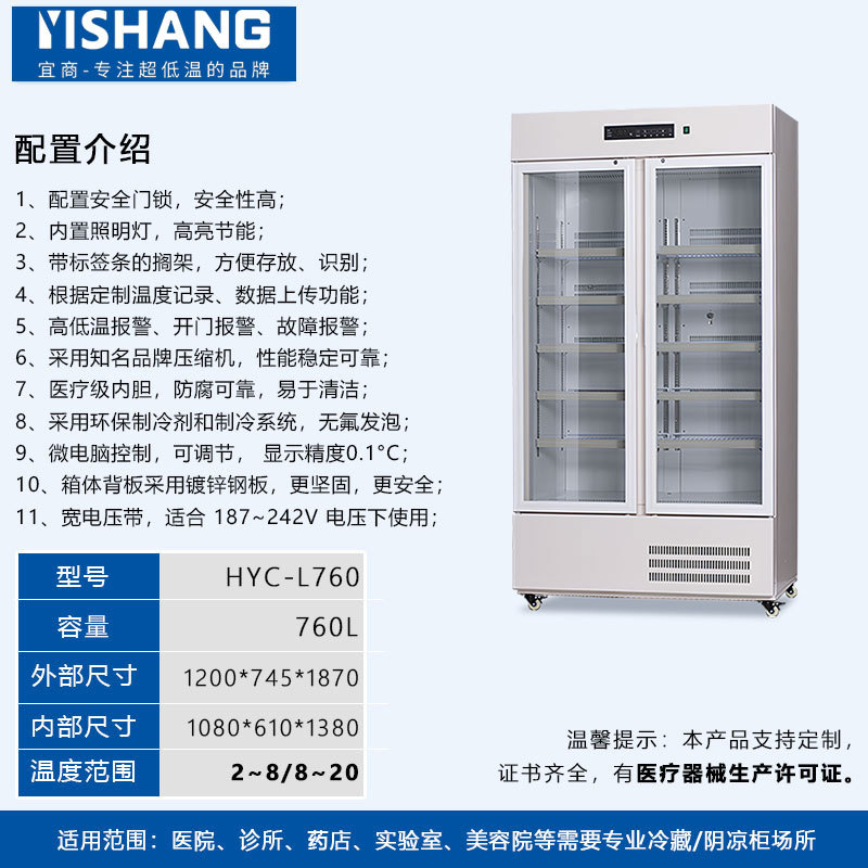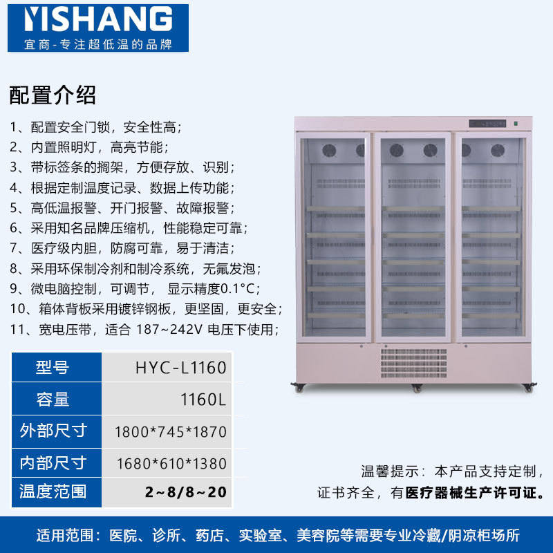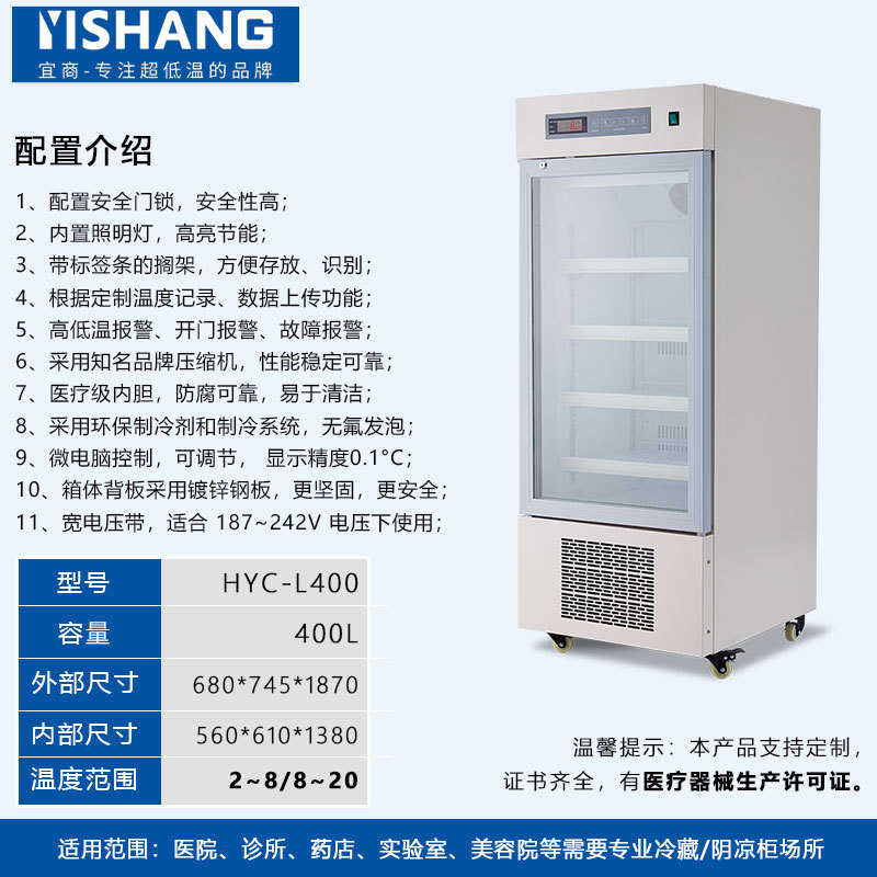 Yishang 의약품 냉장 캐비닛 병원 약국 냉장 캐비닛 단일 및 이중 도어 상업용 수직 디스플레이 캐비닛 의료 인증 냉장고스토어 가기