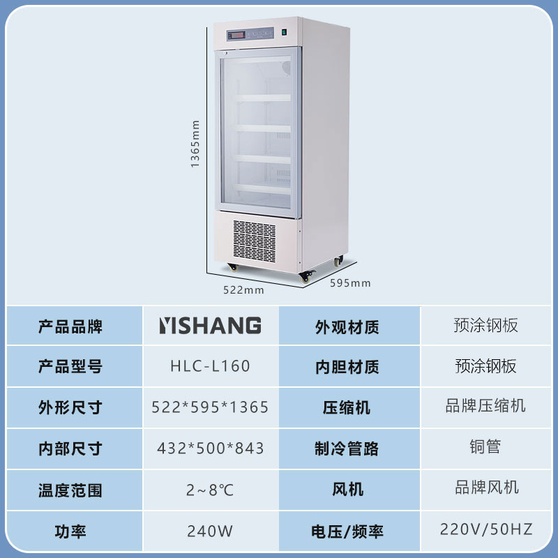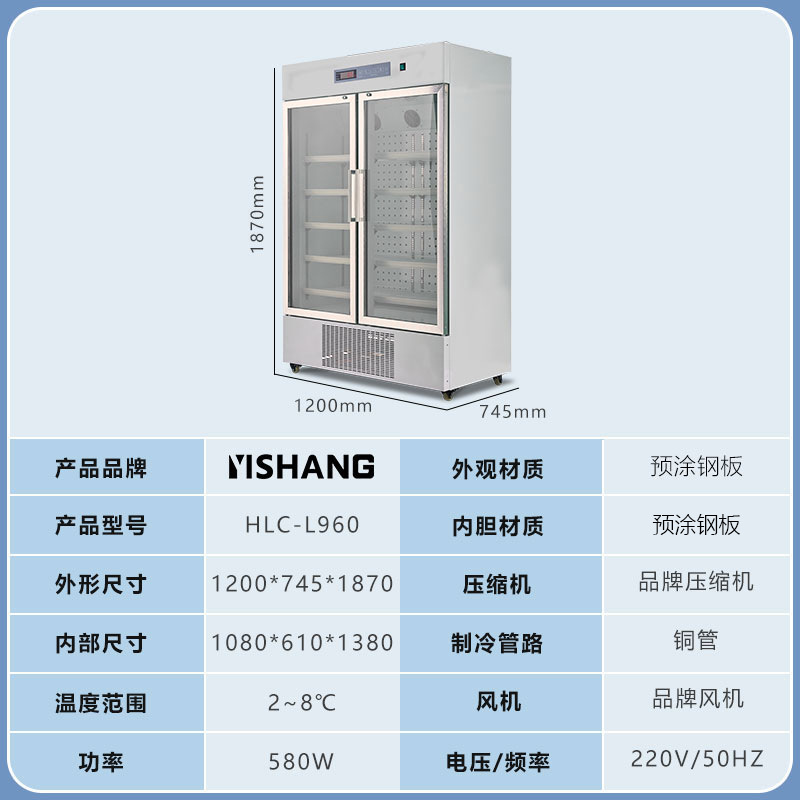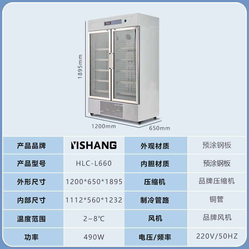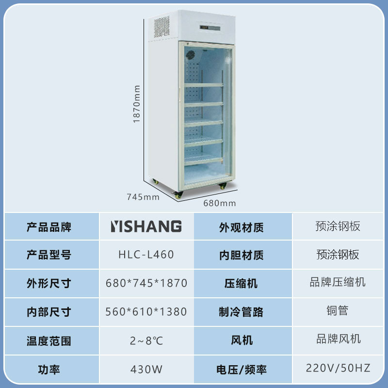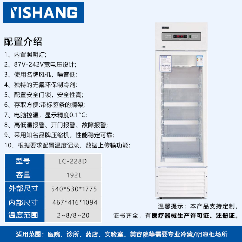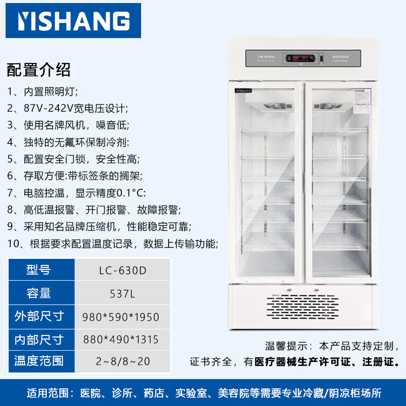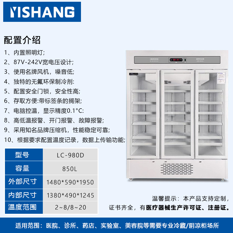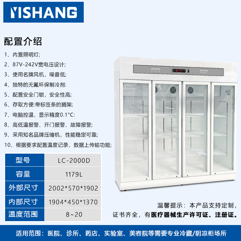 Yishang 의약품 냉장 캐비닛 병원 약국 냉장 캐비닛 단일 및 이중 도어 상업용 수직 디스플레이 캐비닛 의료 인증 냉장고스토어 가기