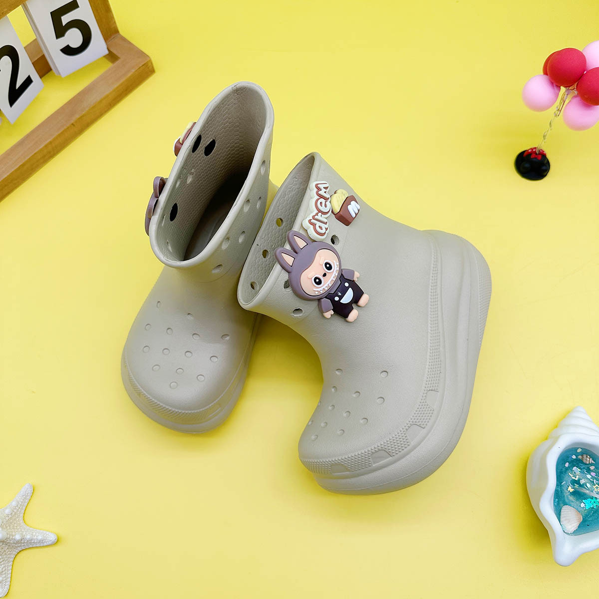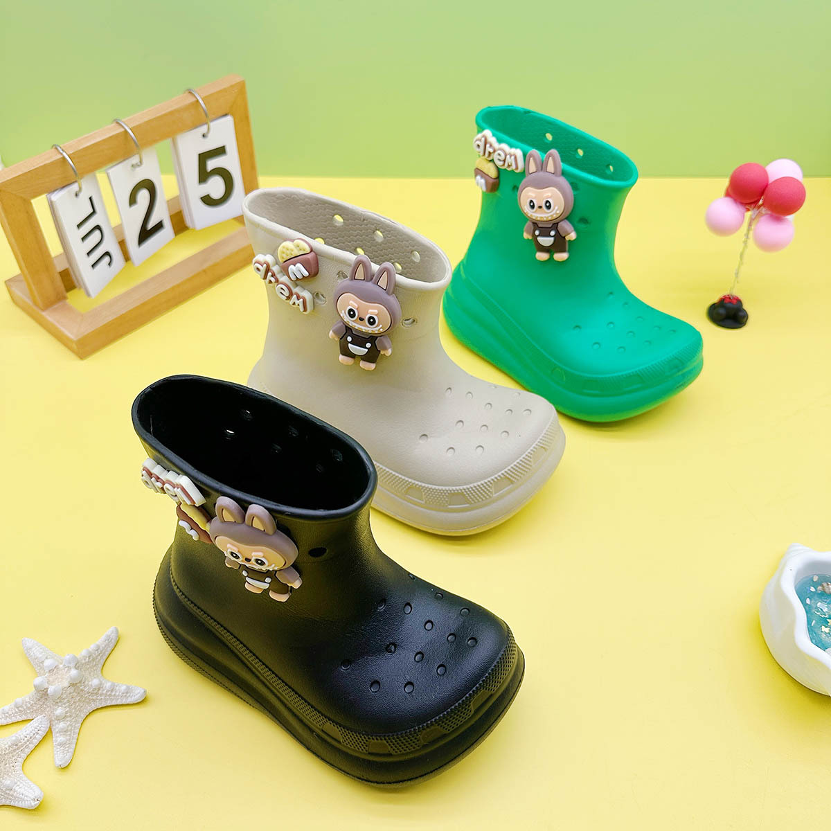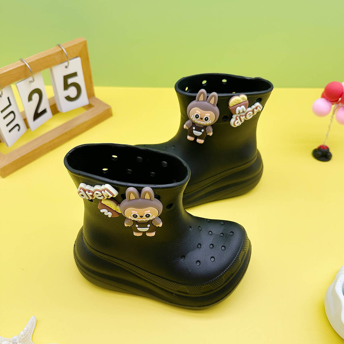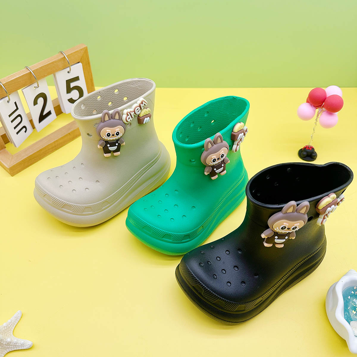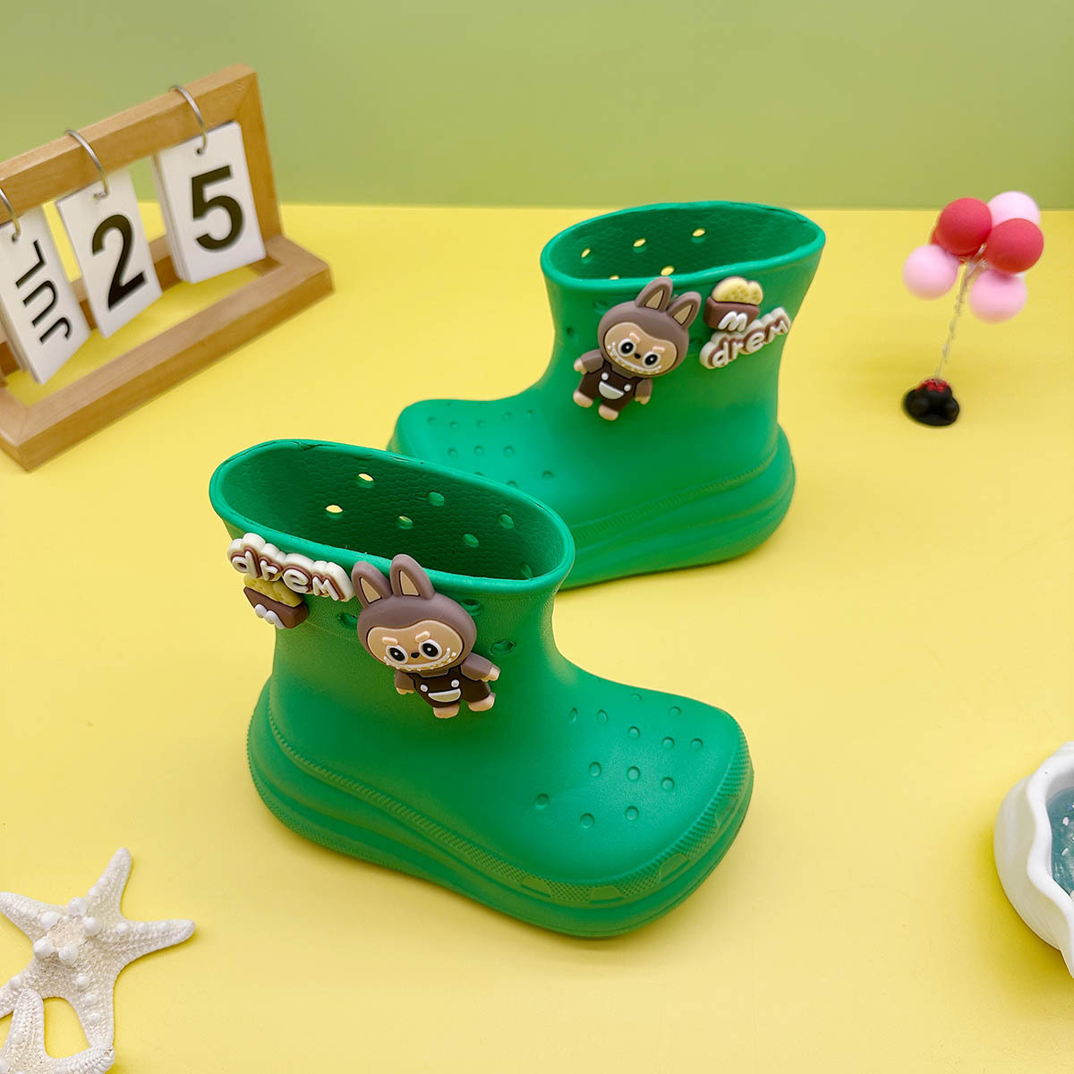 레인부츠 만화 문자 래부부 어린이 구멍 레인부츠 유니버설 소녀 워터슈즈 중형 소년 중형 및 대형 어린이 워터슈즈스토어 가기