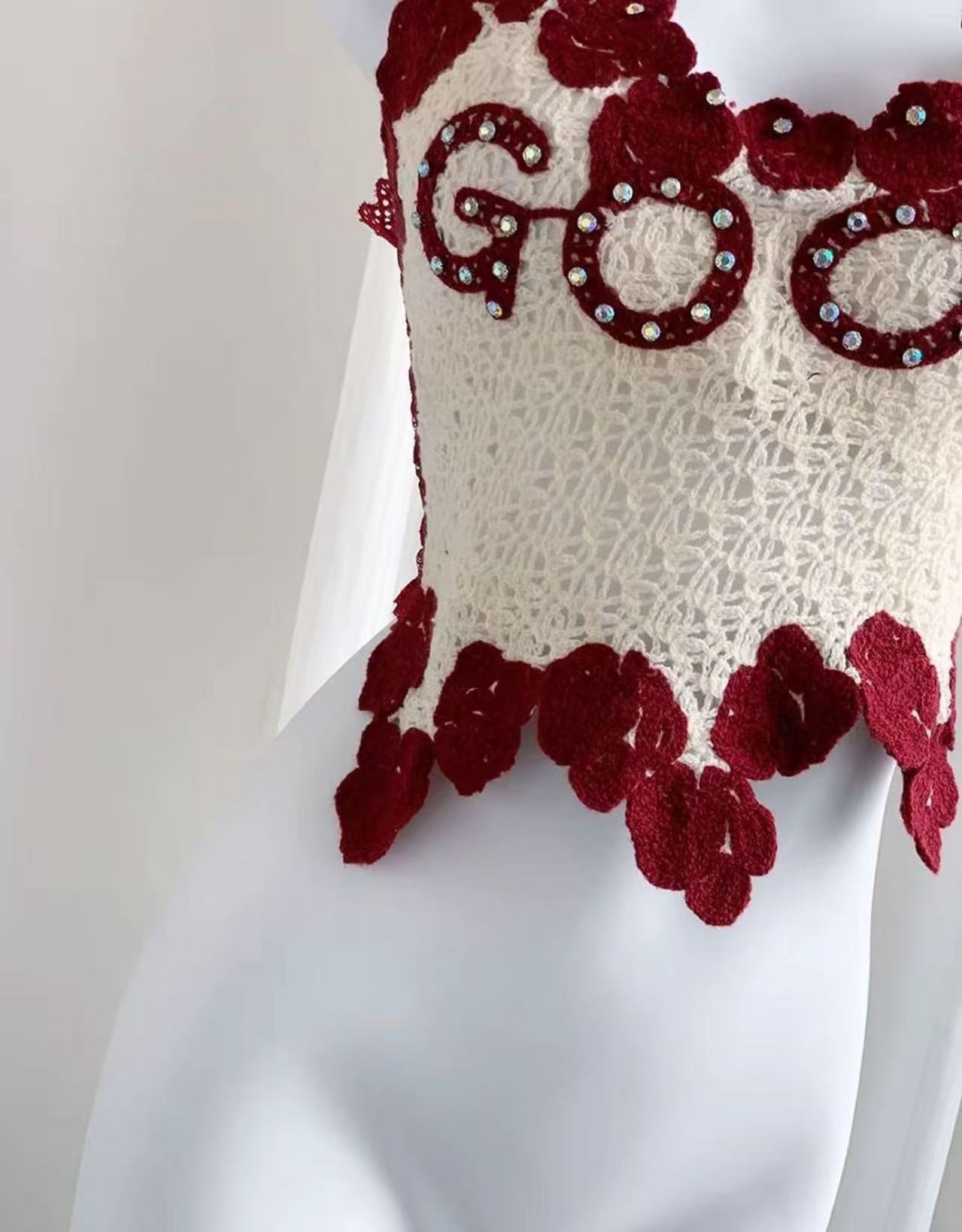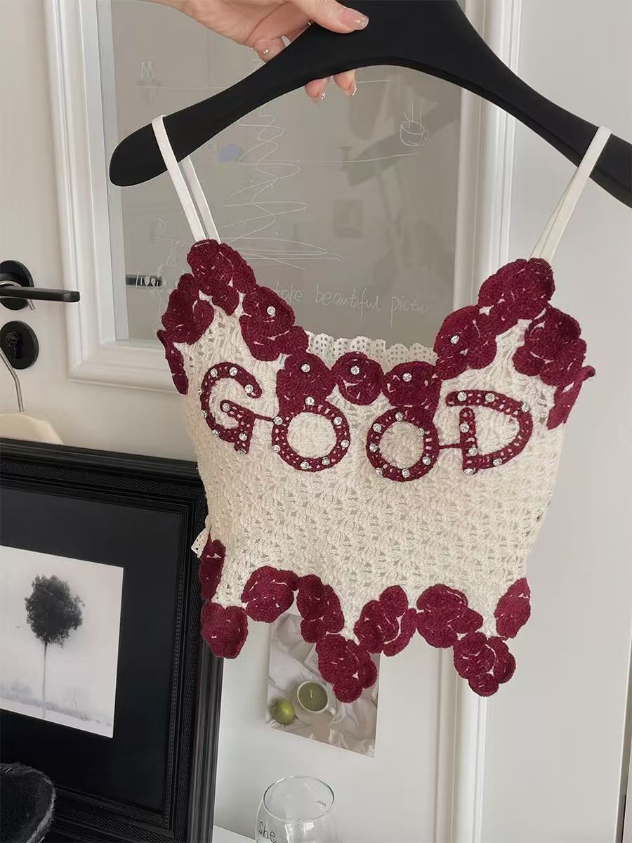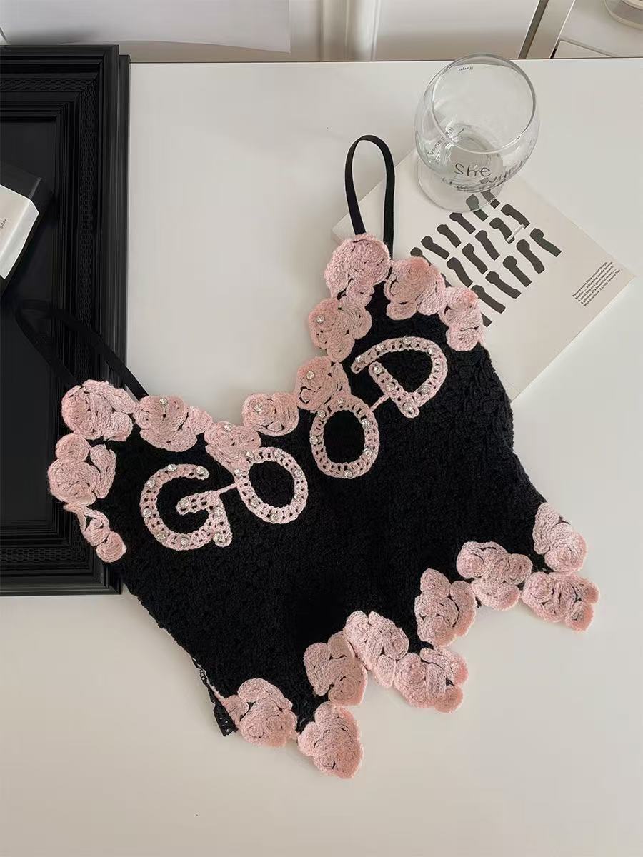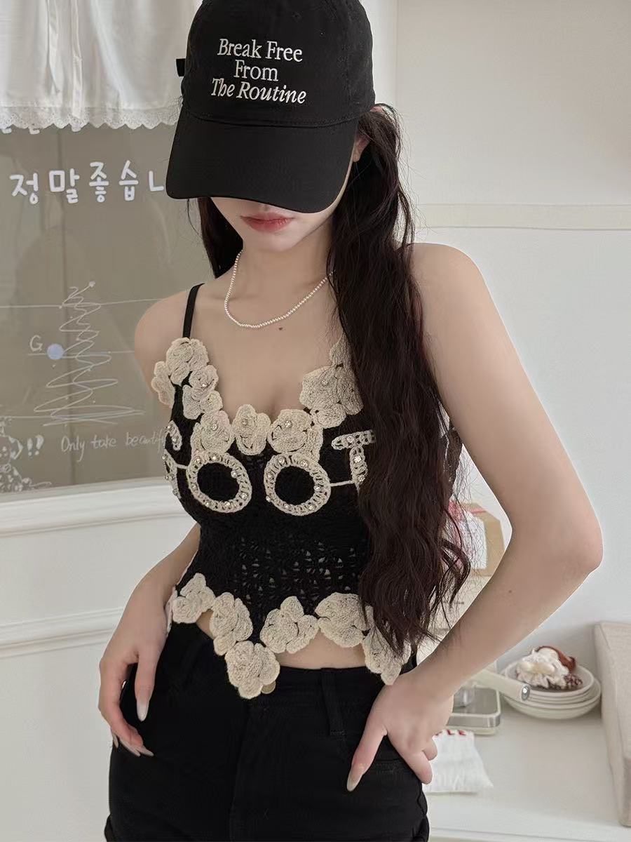 아메리칸 스타일 풀 다이아몬드 대비 컬러 핫걸 레이스 아름다운 백 서스펜더, 가슴 패드와 뒷면 주름, 쇄골 노출 조끼 여성용스토어 가기