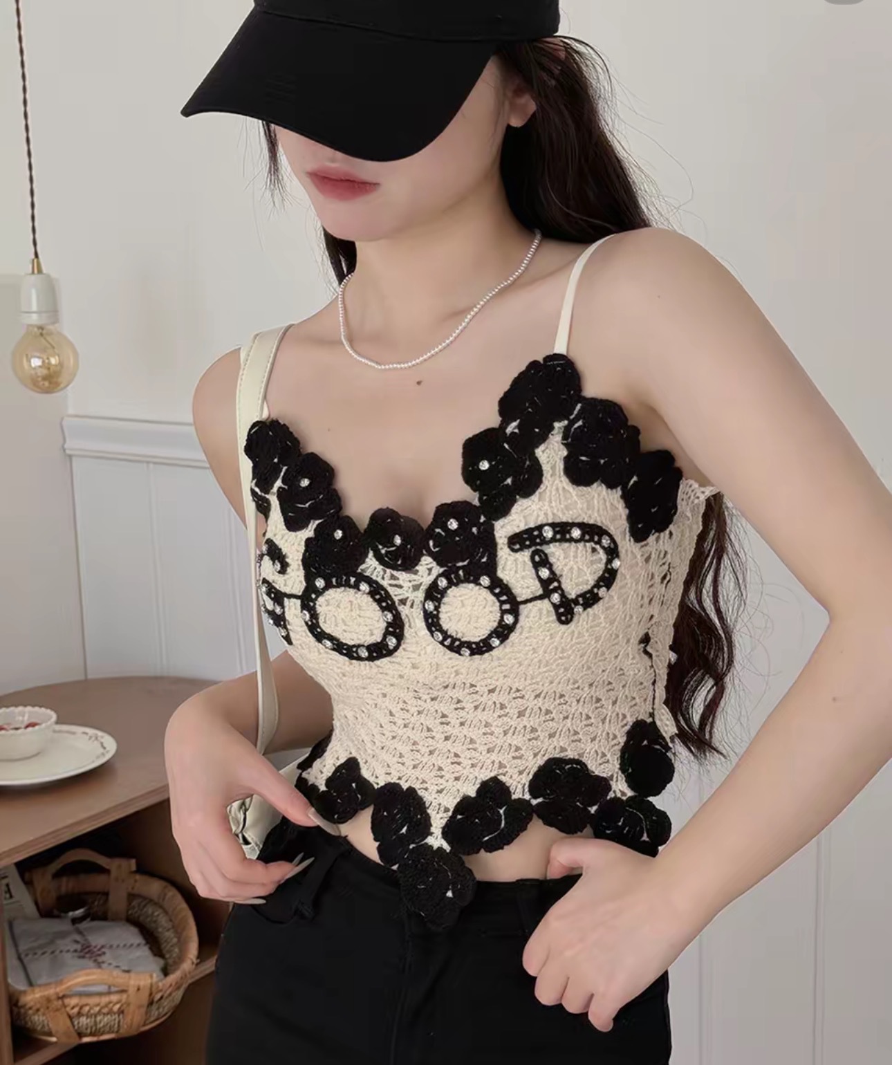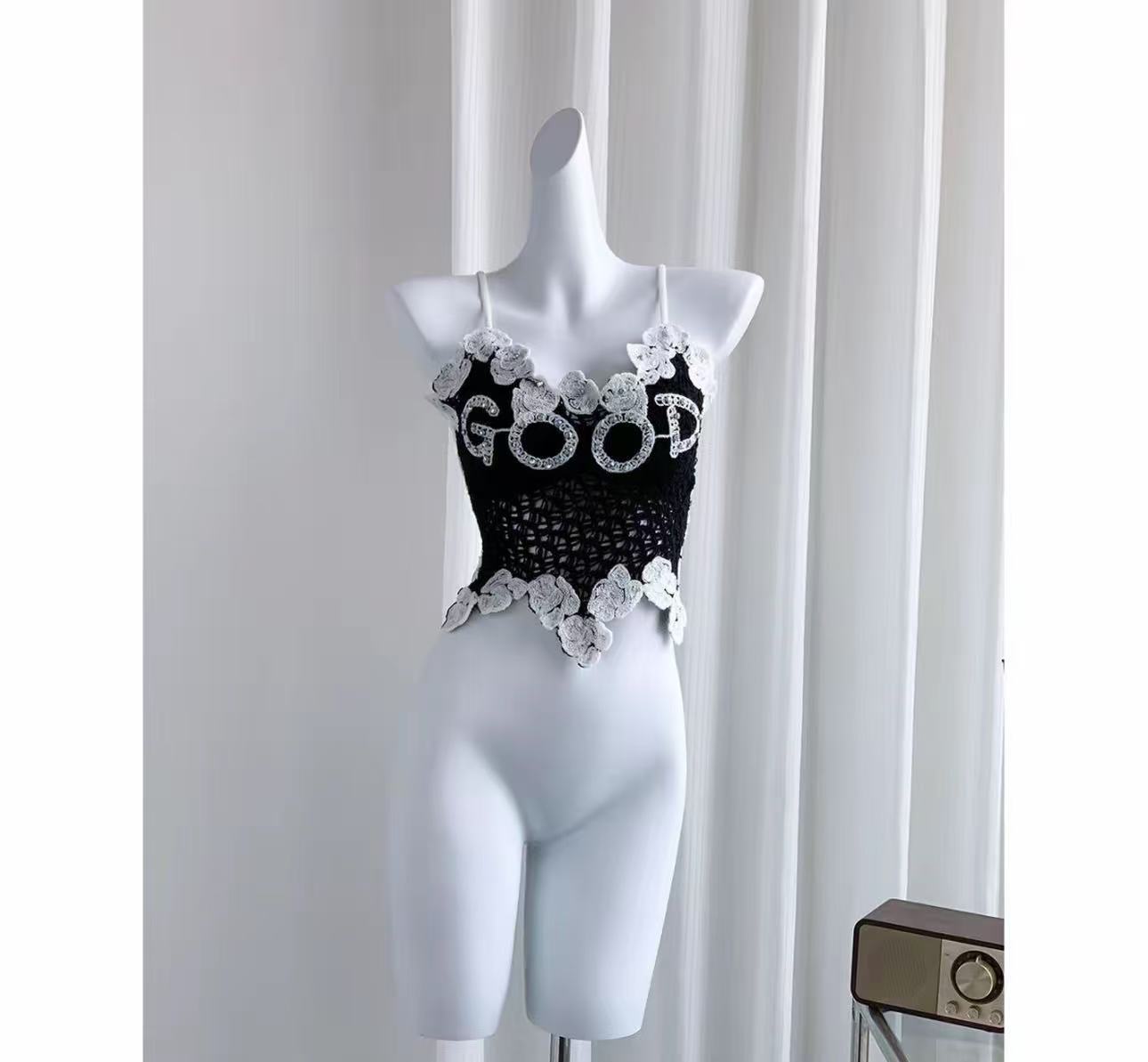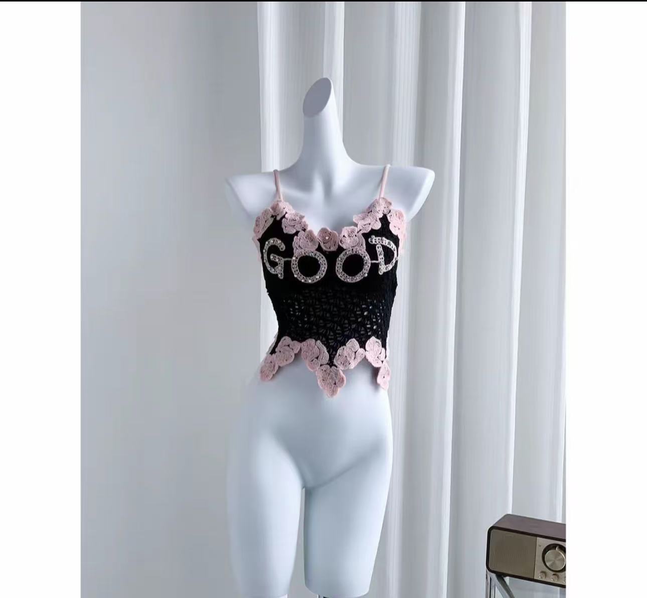 아메리칸 스타일 풀 다이아몬드 대비 컬러 핫걸 레이스 아름다운 백 서스펜더, 가슴 패드와 뒷면 주름, 쇄골 노출 조끼 여성용스토어 가기