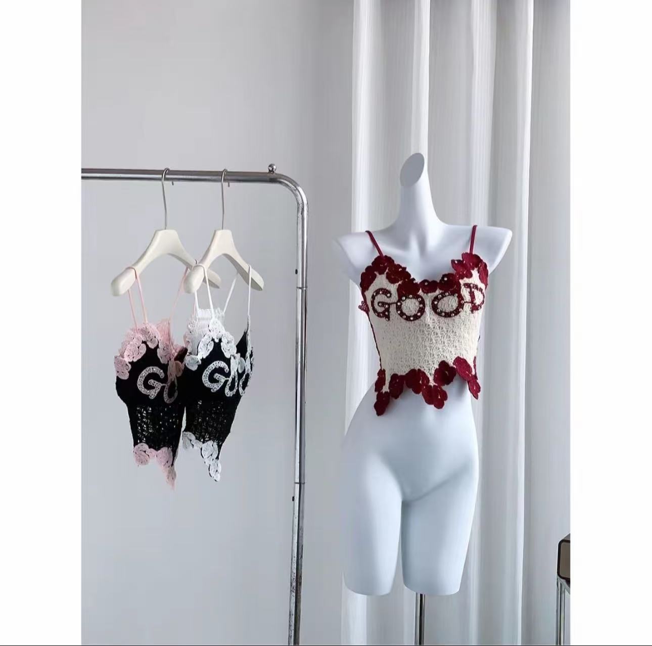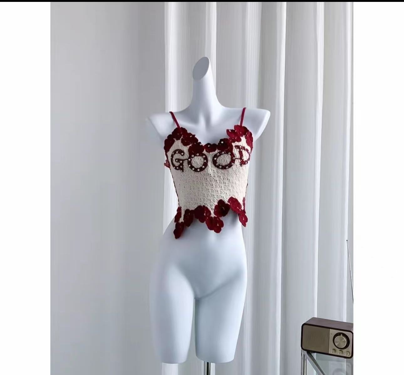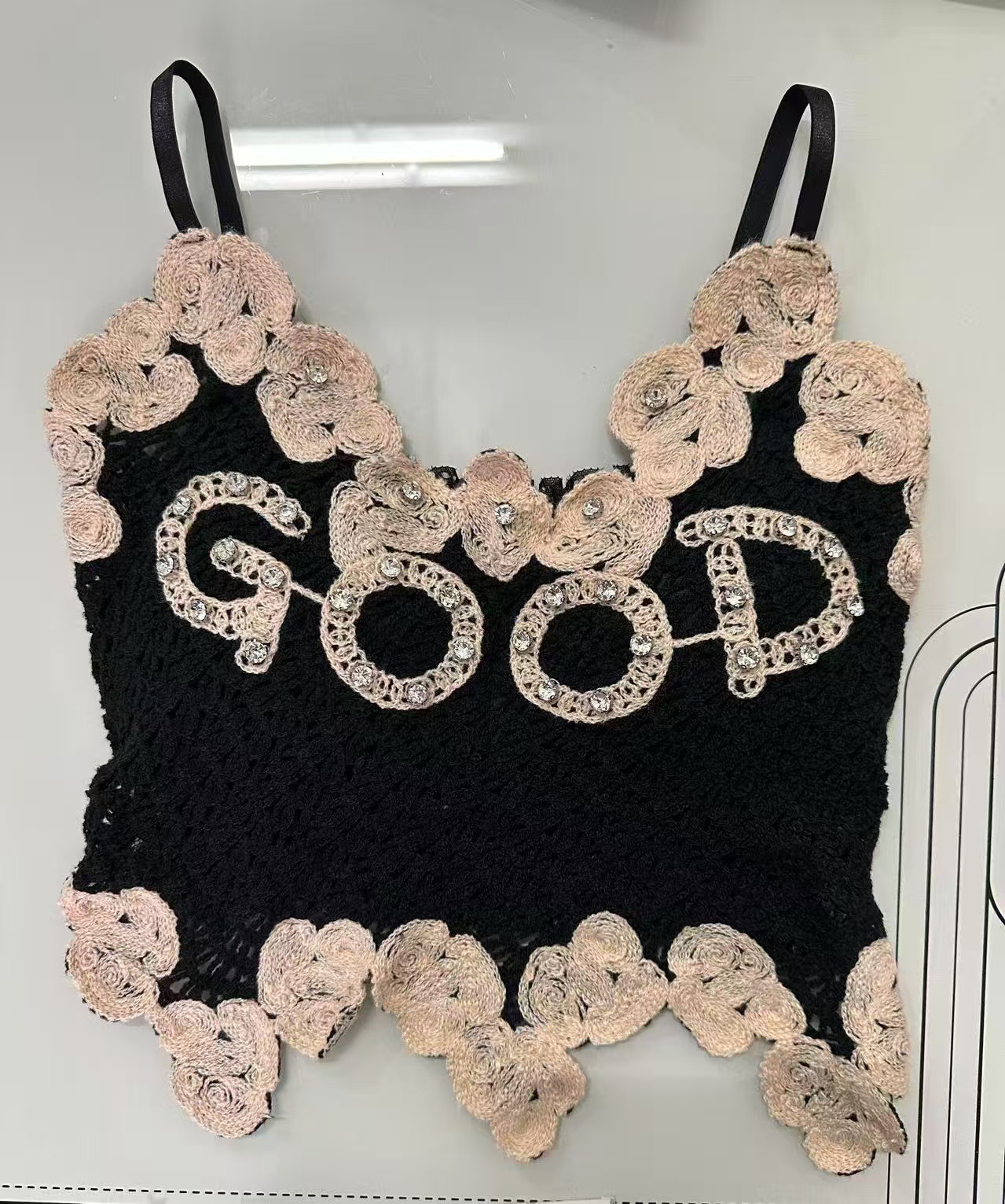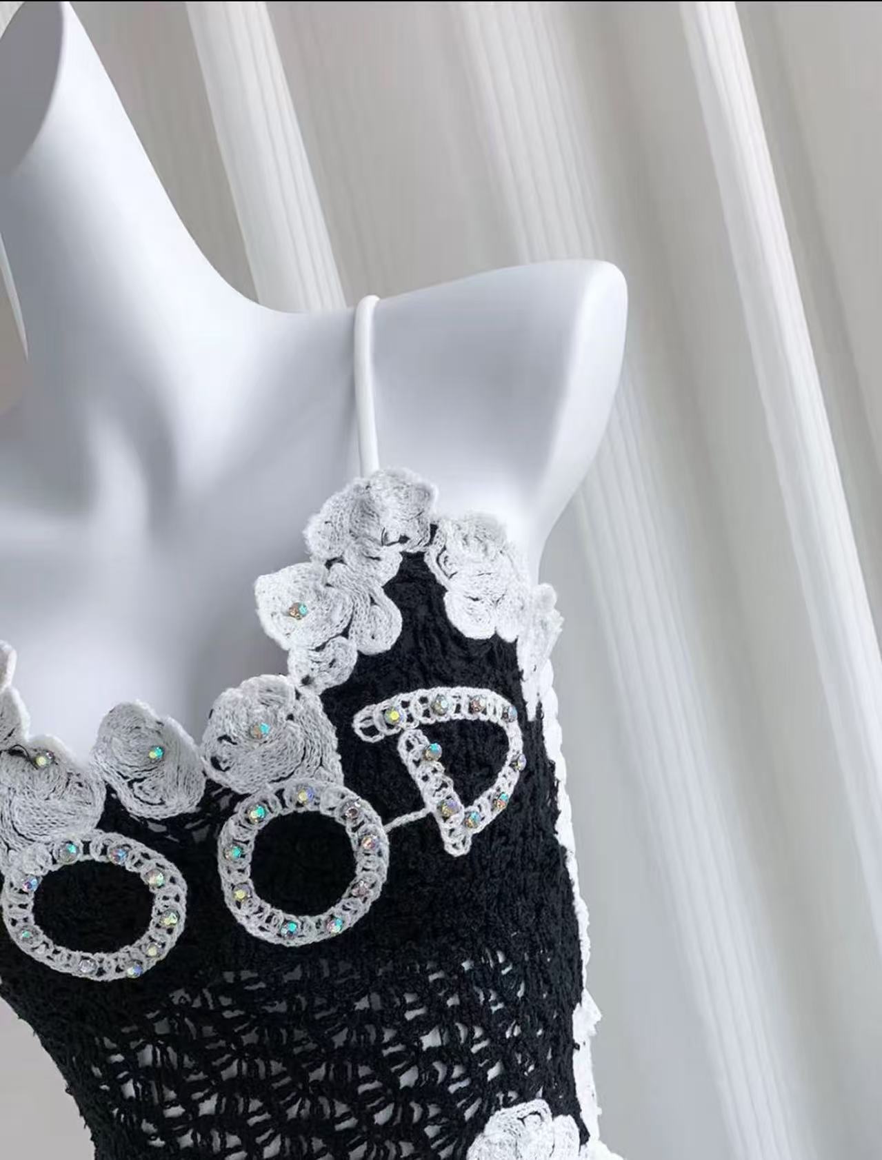 아메리칸 스타일 풀 다이아몬드 대비 컬러 핫걸 레이스 아름다운 백 서스펜더, 가슴 패드와 뒷면 주름, 쇄골 노출 조끼 여성용스토어 가기