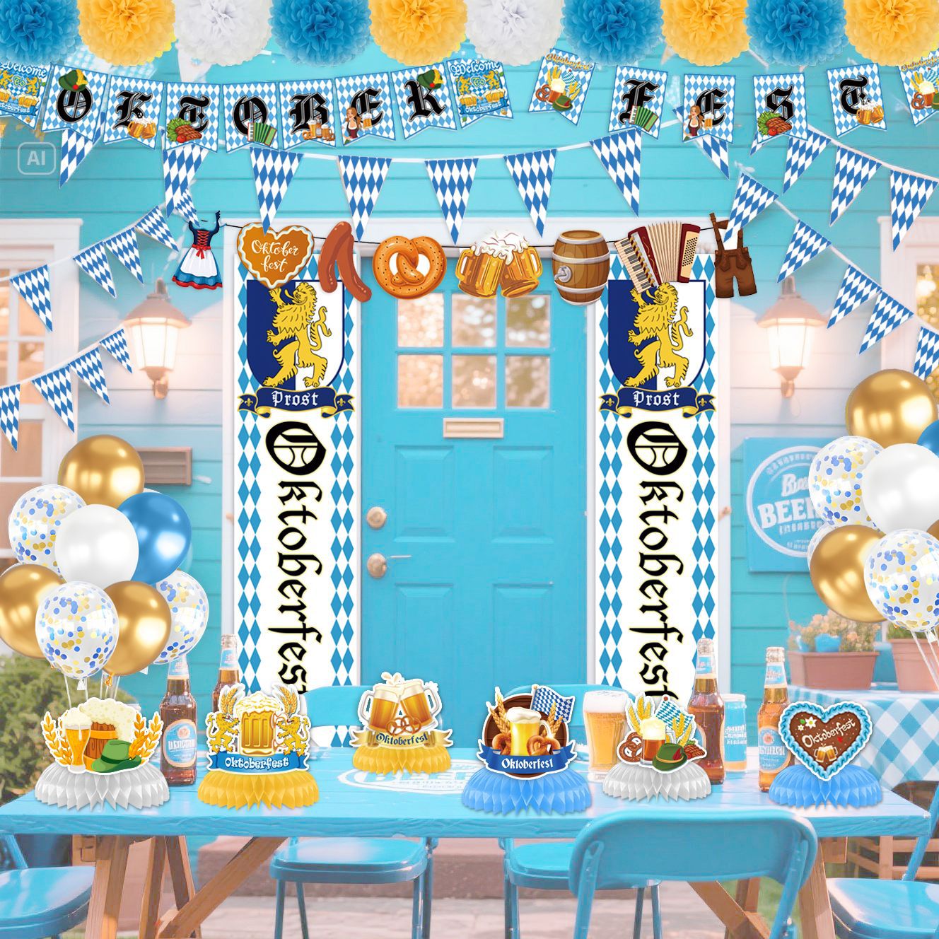 유럽 맥주 축제 파티 용품 장식 배너 풍선 옥토버 페스트 케이크 삽입 장소 레이아웃 플래그