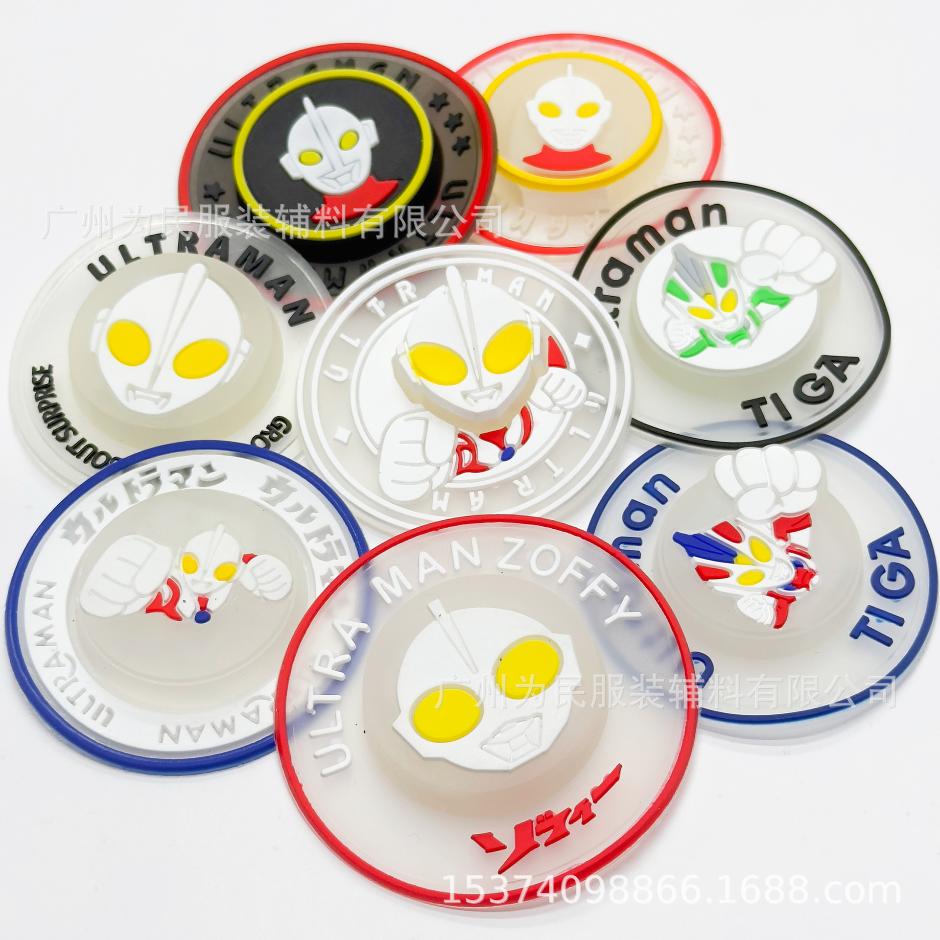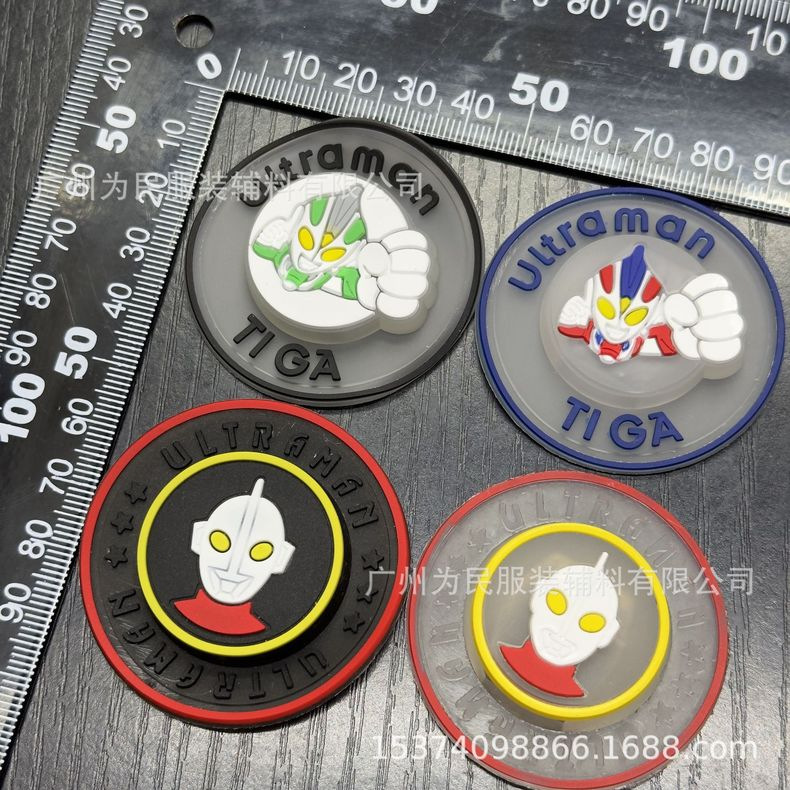 재고 있음 도매 신발 및 모자 액세서리 귀엽고 다재다능한 울트라맨 플라스틱 실리콘 스탬프 플래시 쉘 크리 에이 티브 라운드 간판