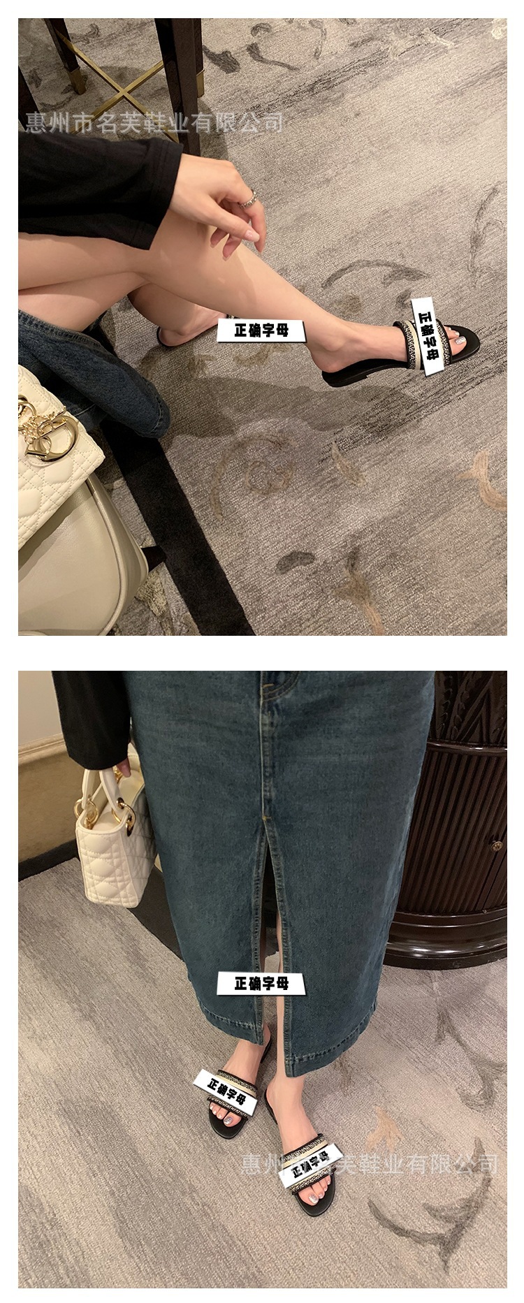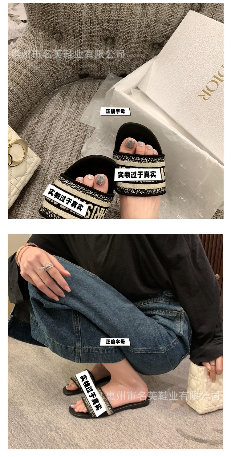 여성용 여름 아우터 플랫 슬리퍼, 다용도 비치 슈즈 도매를 위한 엄선된 하이 버전 DR 레터 자수 슬리퍼스토어 가기