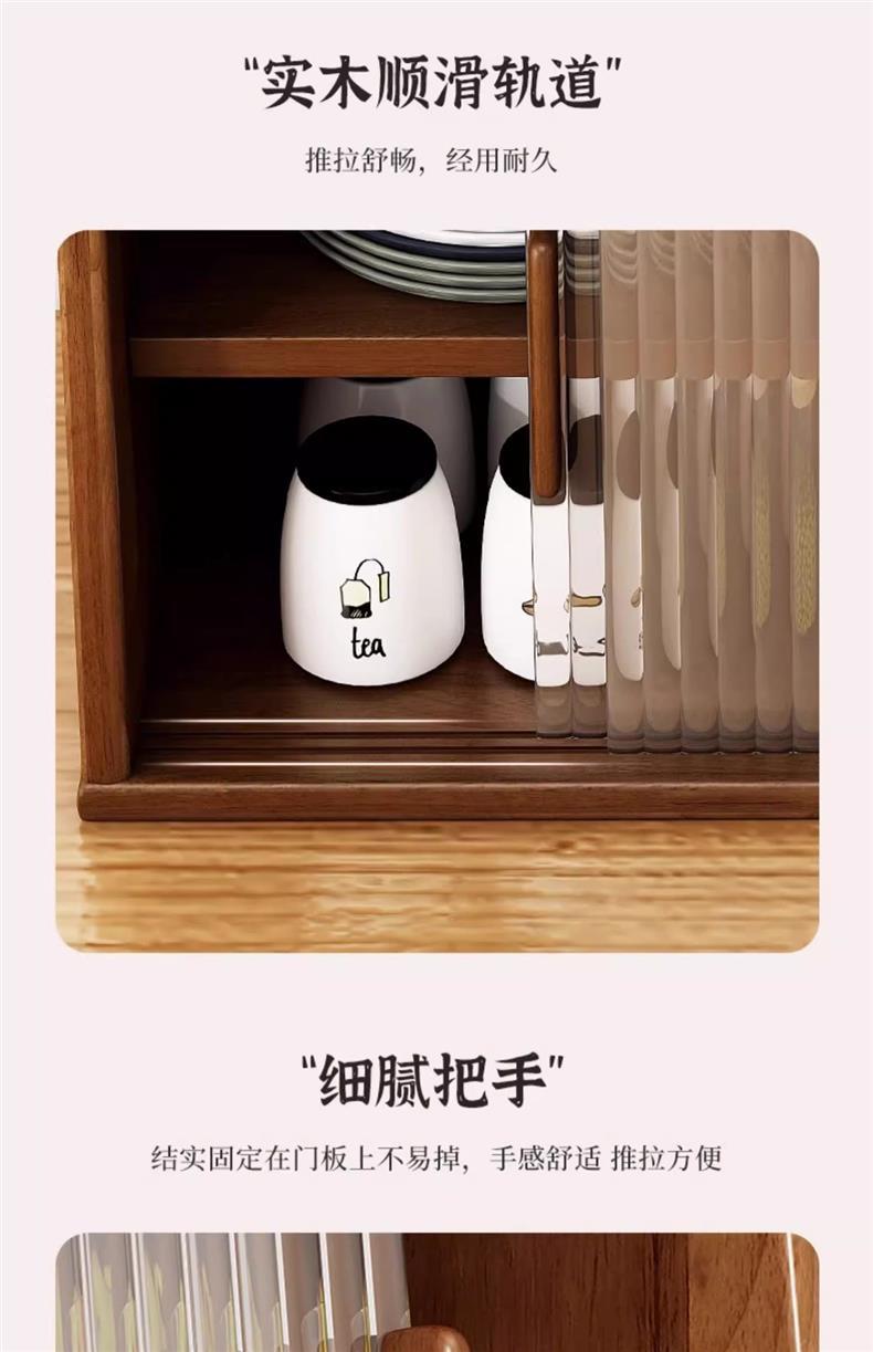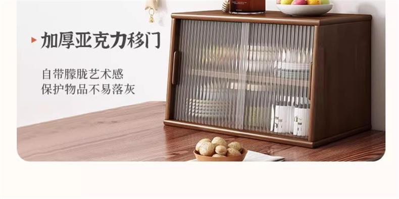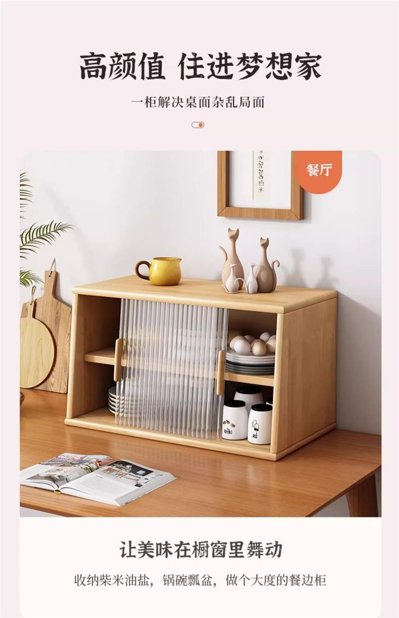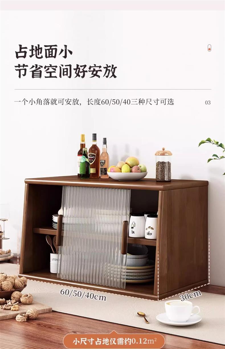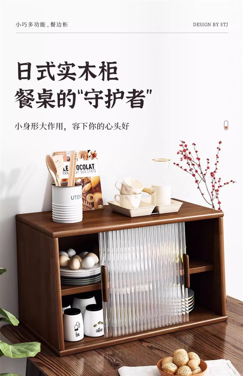 日式实木餐边柜台面收纳柜玻璃门厨房防尘柜子咖啡置物柜桌面杯架