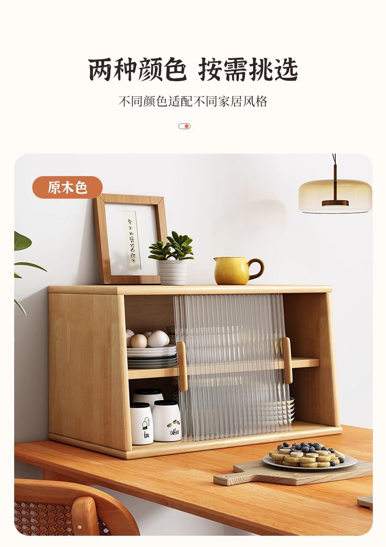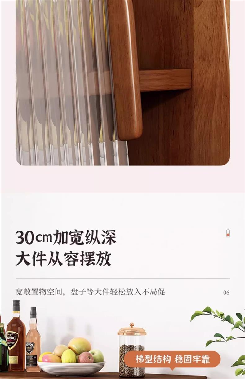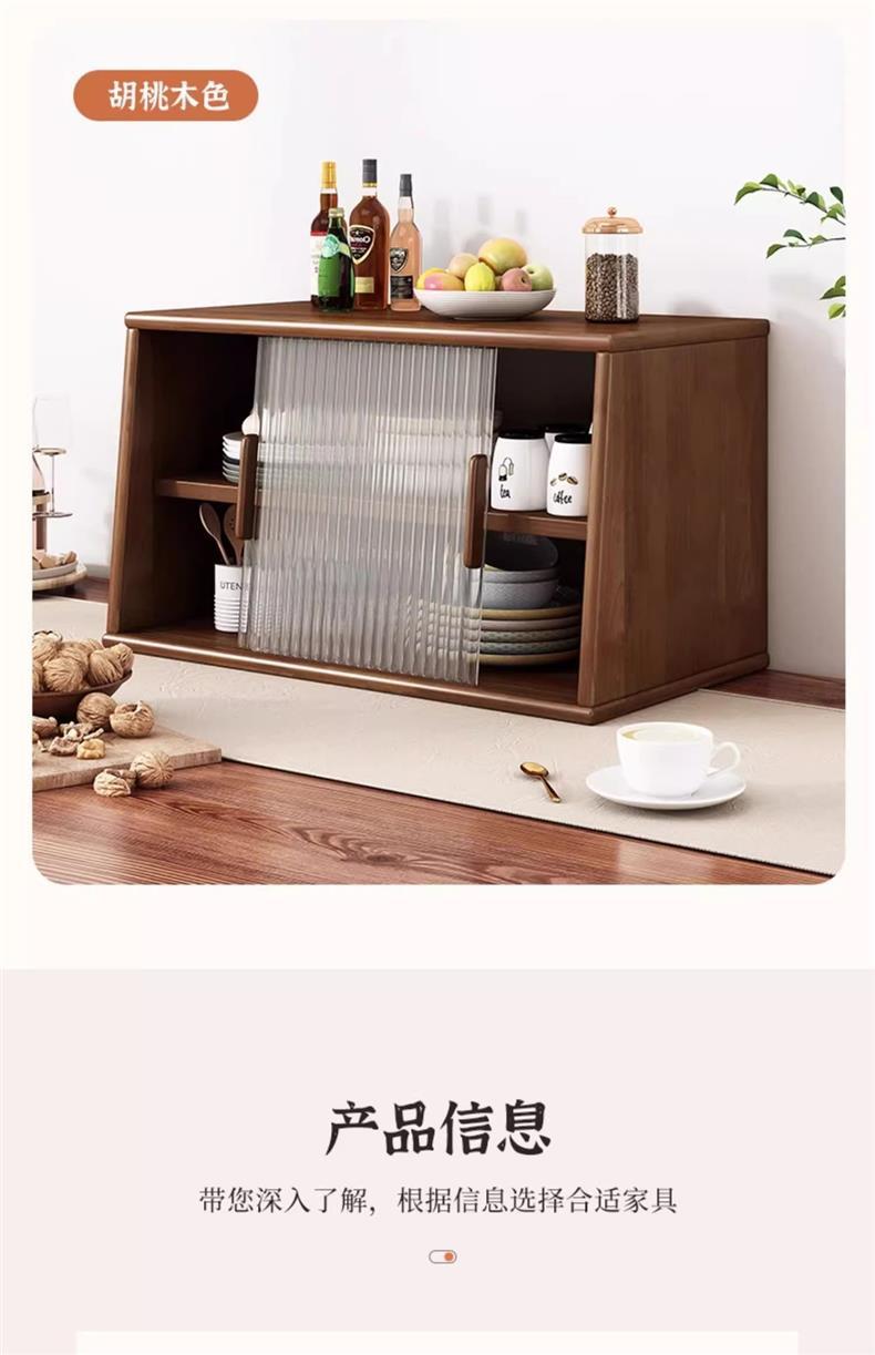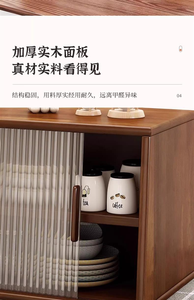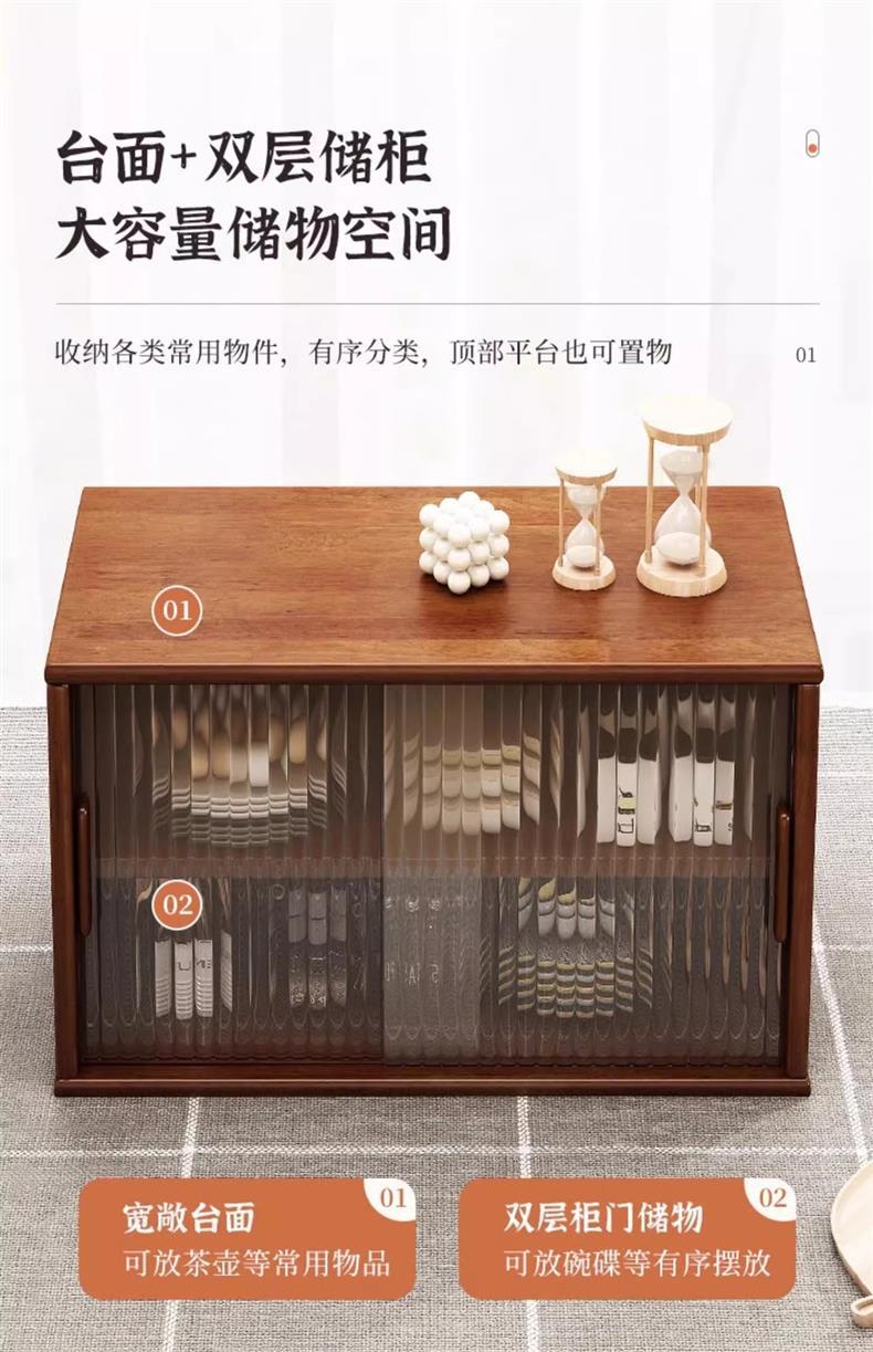 日式实木餐边柜台面收纳柜玻璃门厨房防尘柜子咖啡置物柜桌面杯架