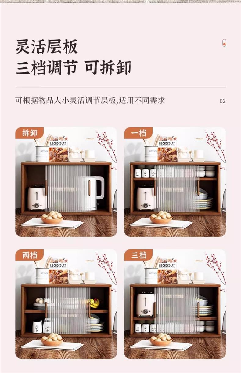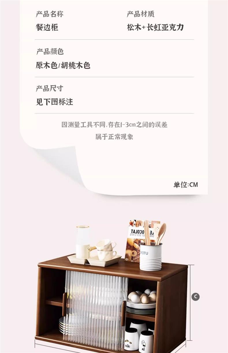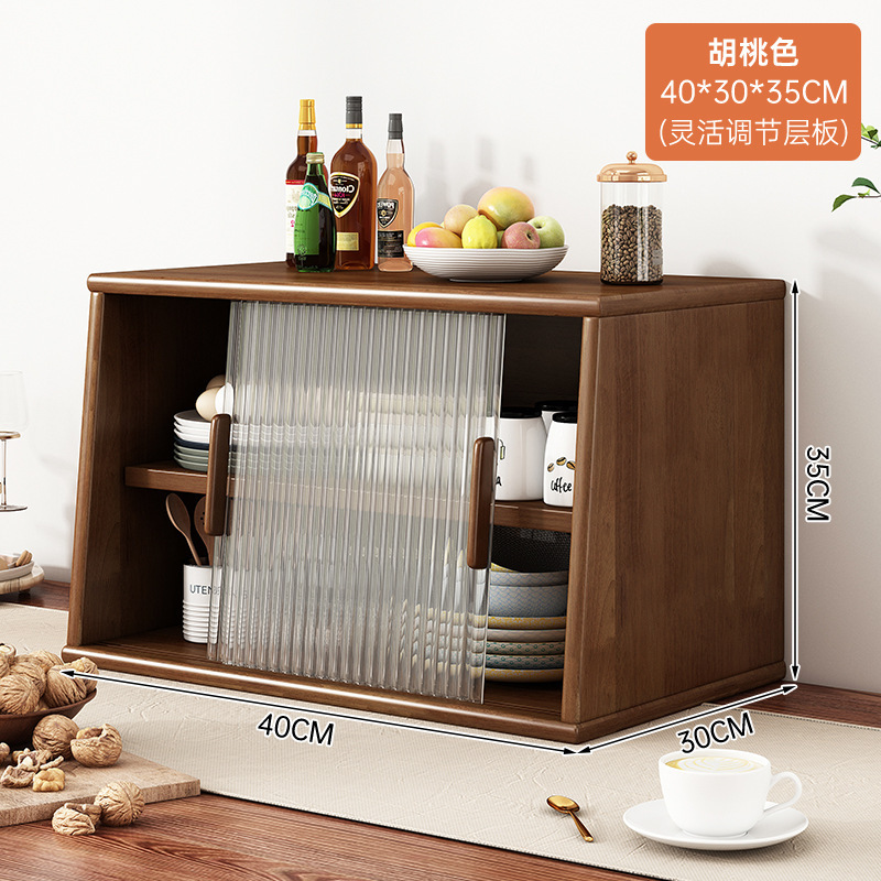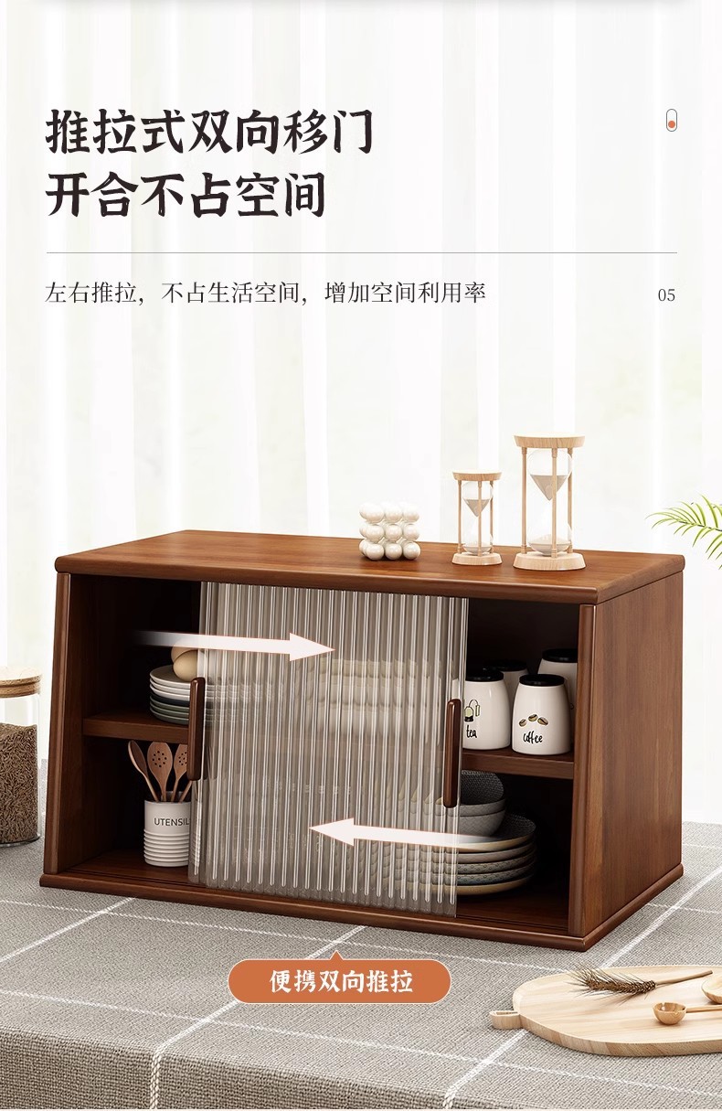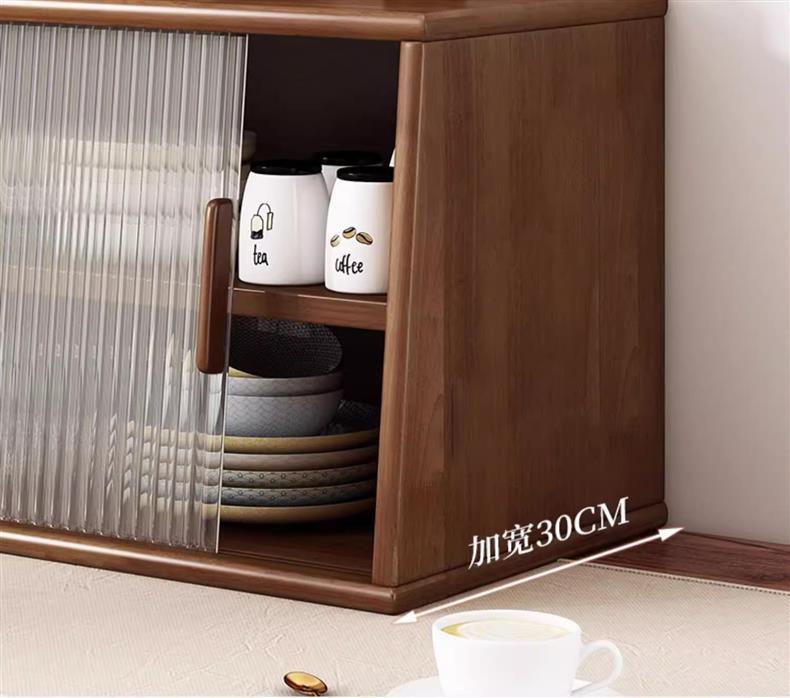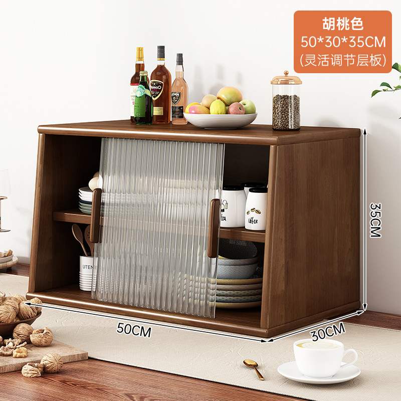 日式实木餐边柜台面收纳柜玻璃门厨房防尘柜子咖啡置物柜桌面杯架