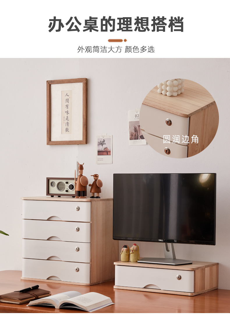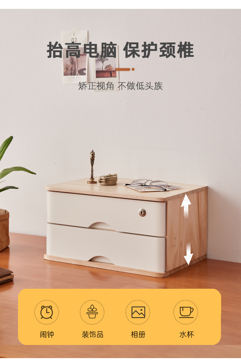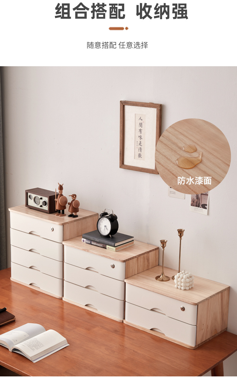 2F 잠글 수있는 데스크탑 단단한 나무 보관 상자 서랍 형 보관 캐비닛 다층 사무실 보관 작은 캐비닛 나무 정리스토어 가기
