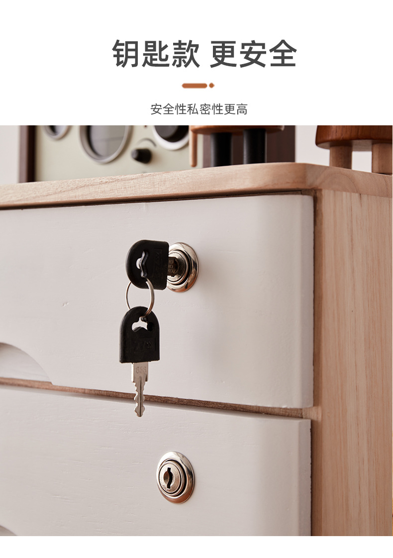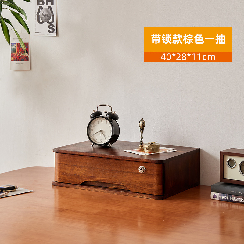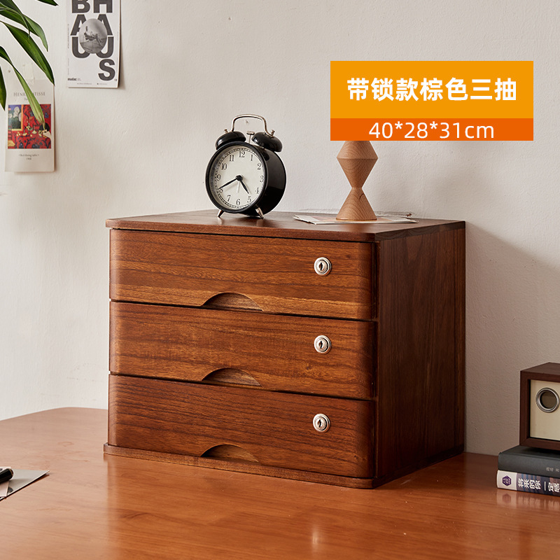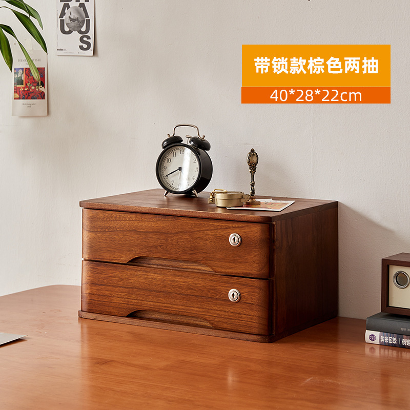 2F 잠글 수있는 데스크탑 단단한 나무 보관 상자 서랍 형 보관 캐비닛 다층 사무실 보관 작은 캐비닛 나무 정리