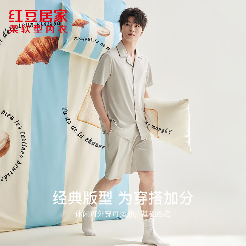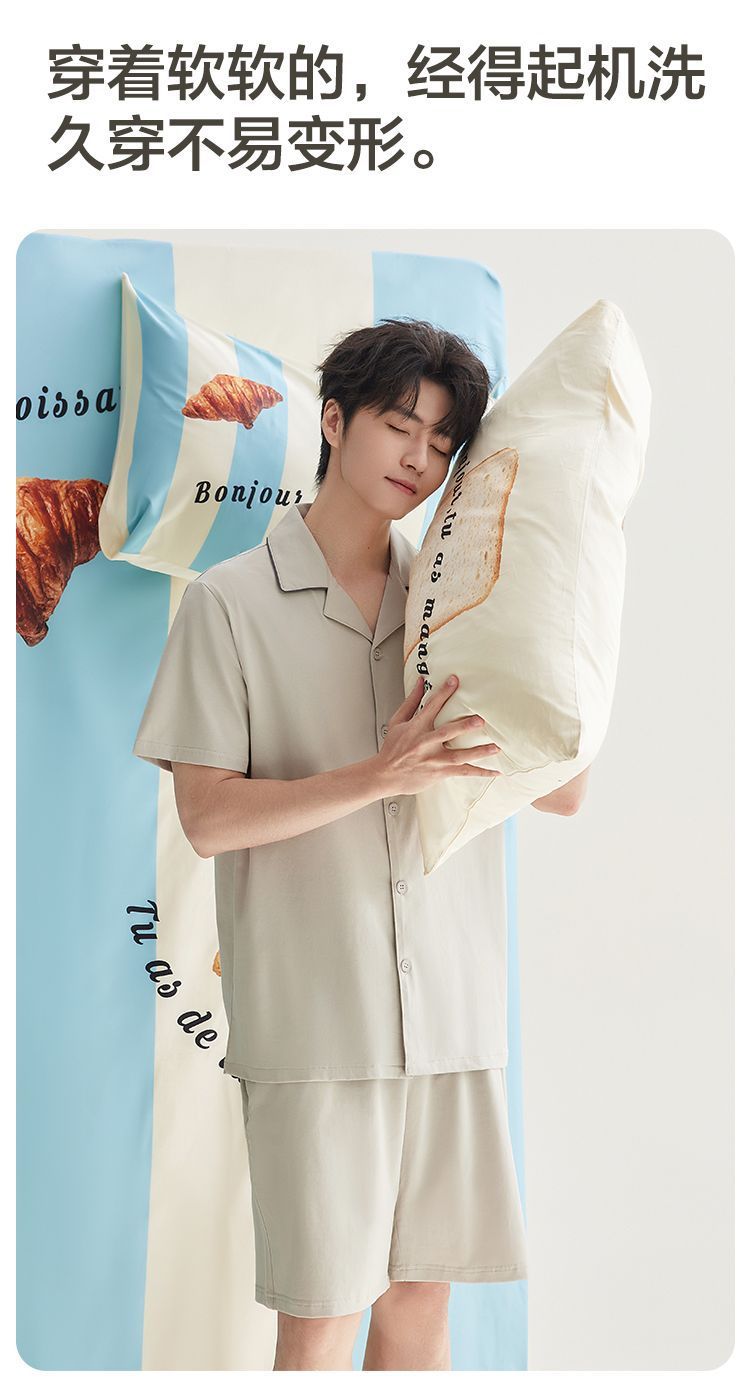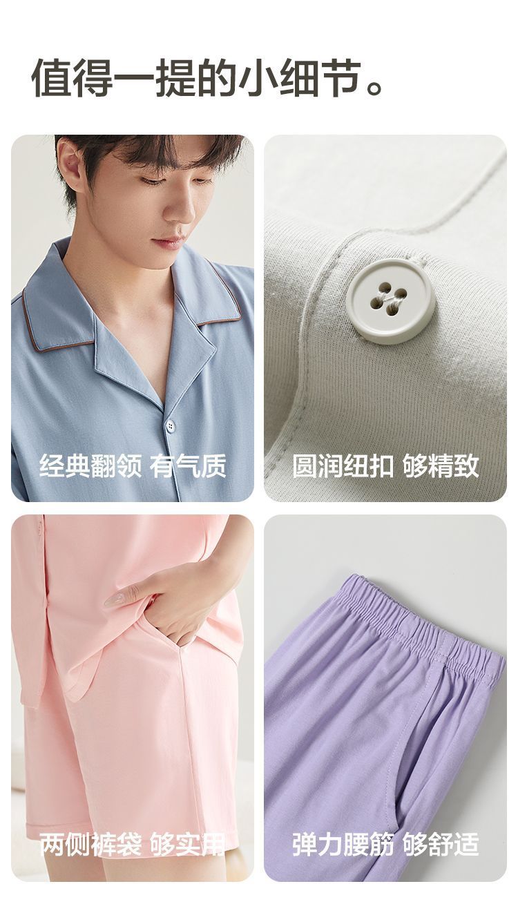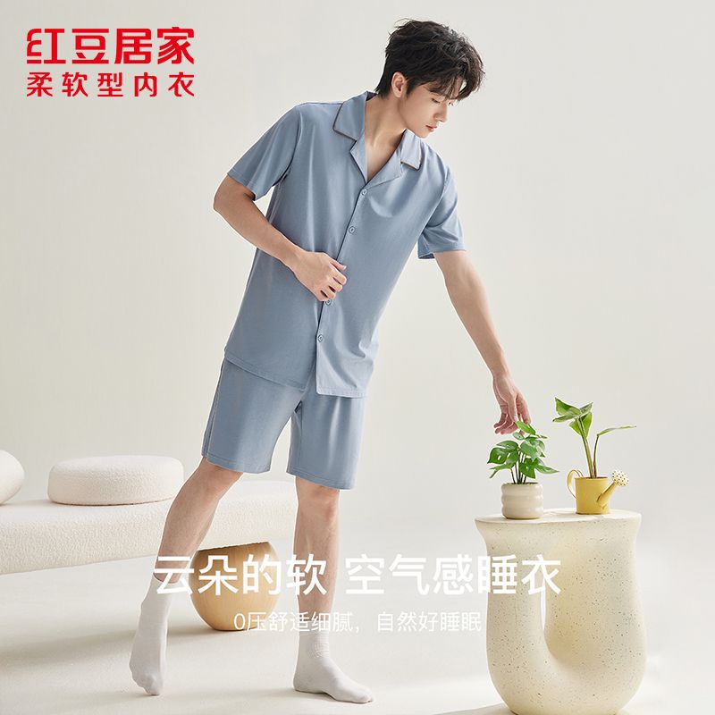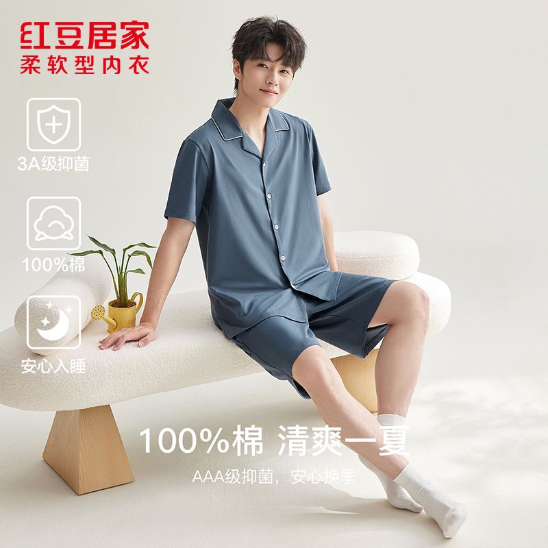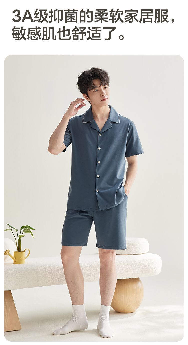 Hongdou Home [면 항균] 봄 여름 3A 항균 라펠 가디건 반팔 남성 순면 정장 홈웨어스토어 가기