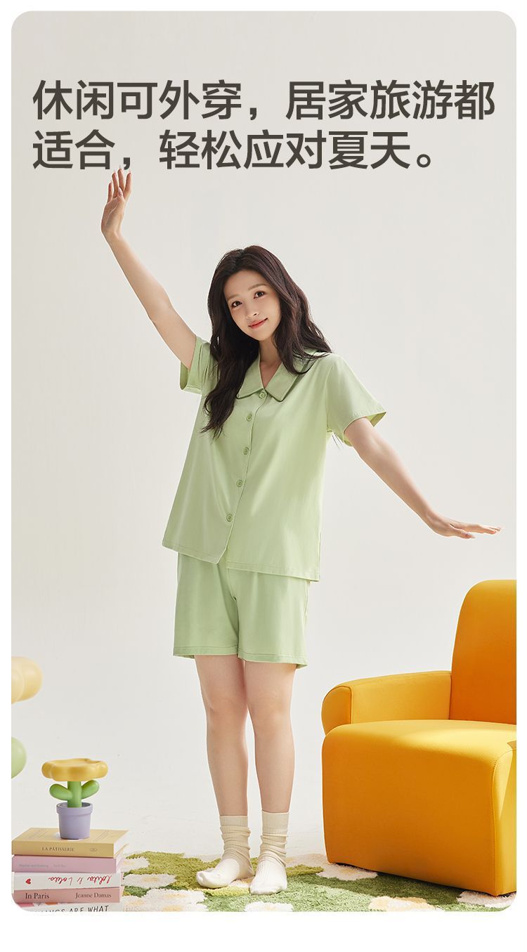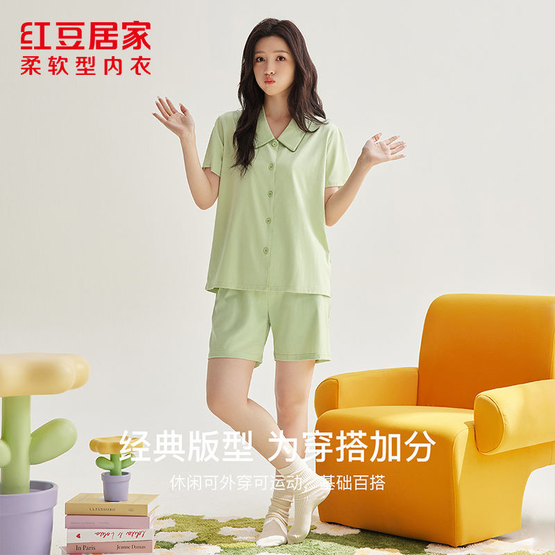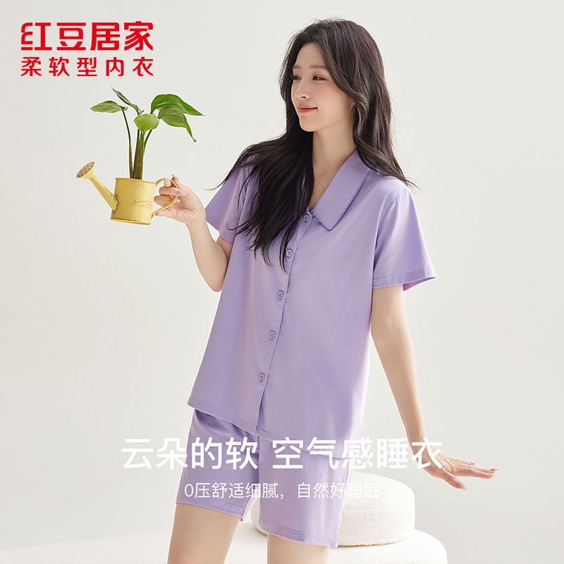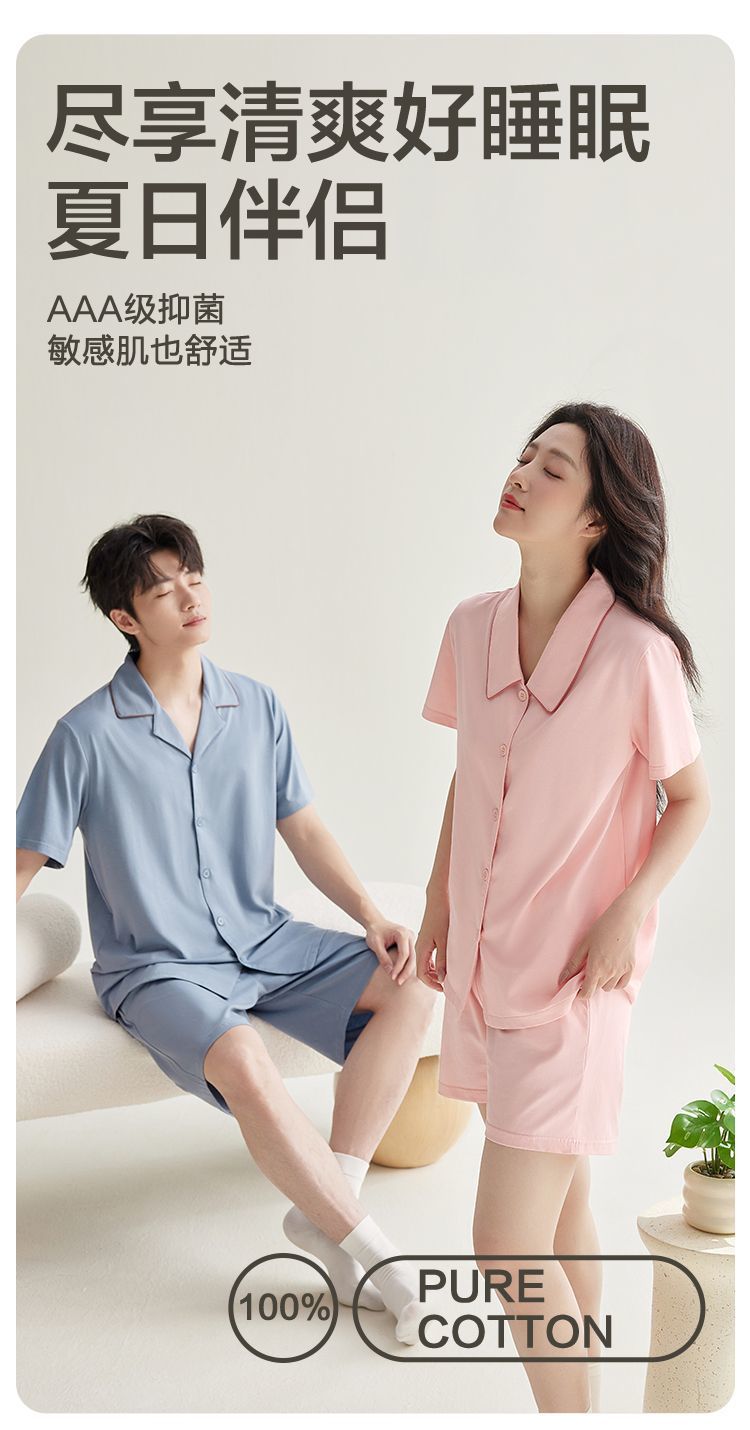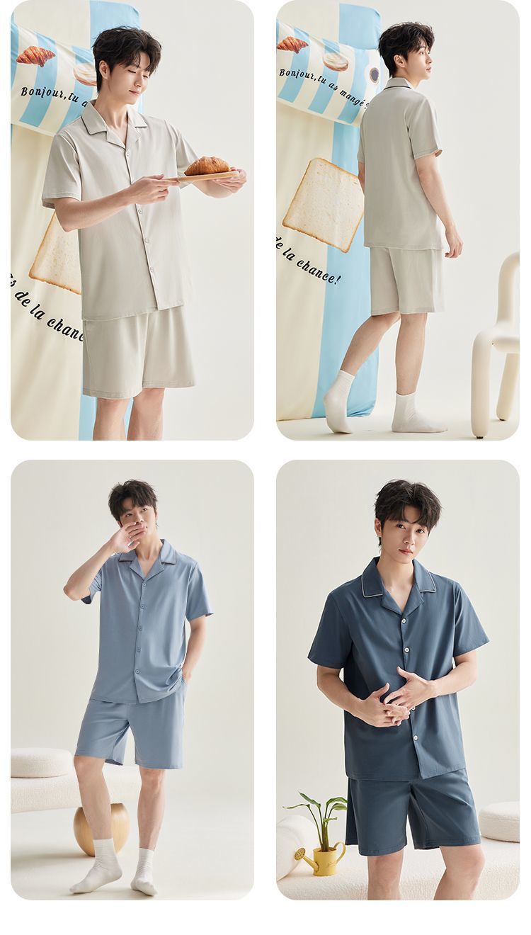 Hongdou Home [면 항균] 봄 여름 3A 항균 라펠 가디건 반팔 남성 순면 정장 홈웨어스토어 가기