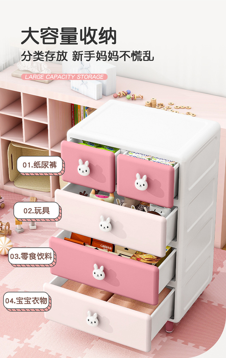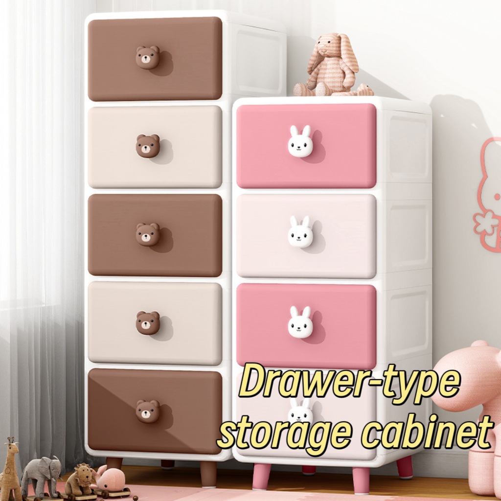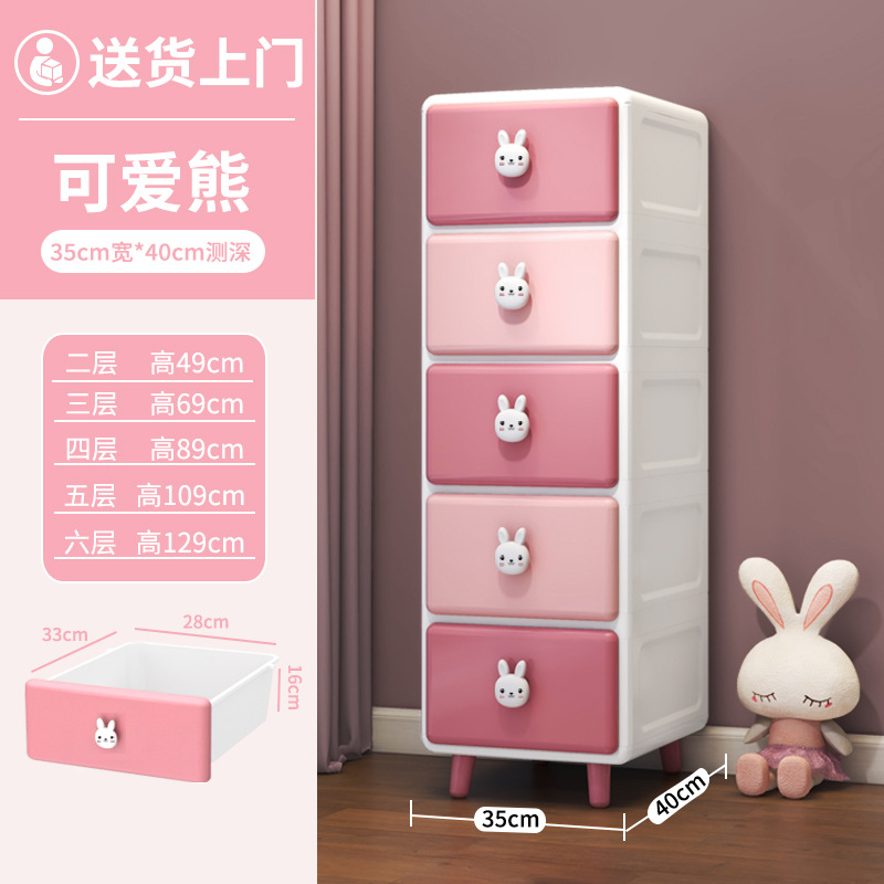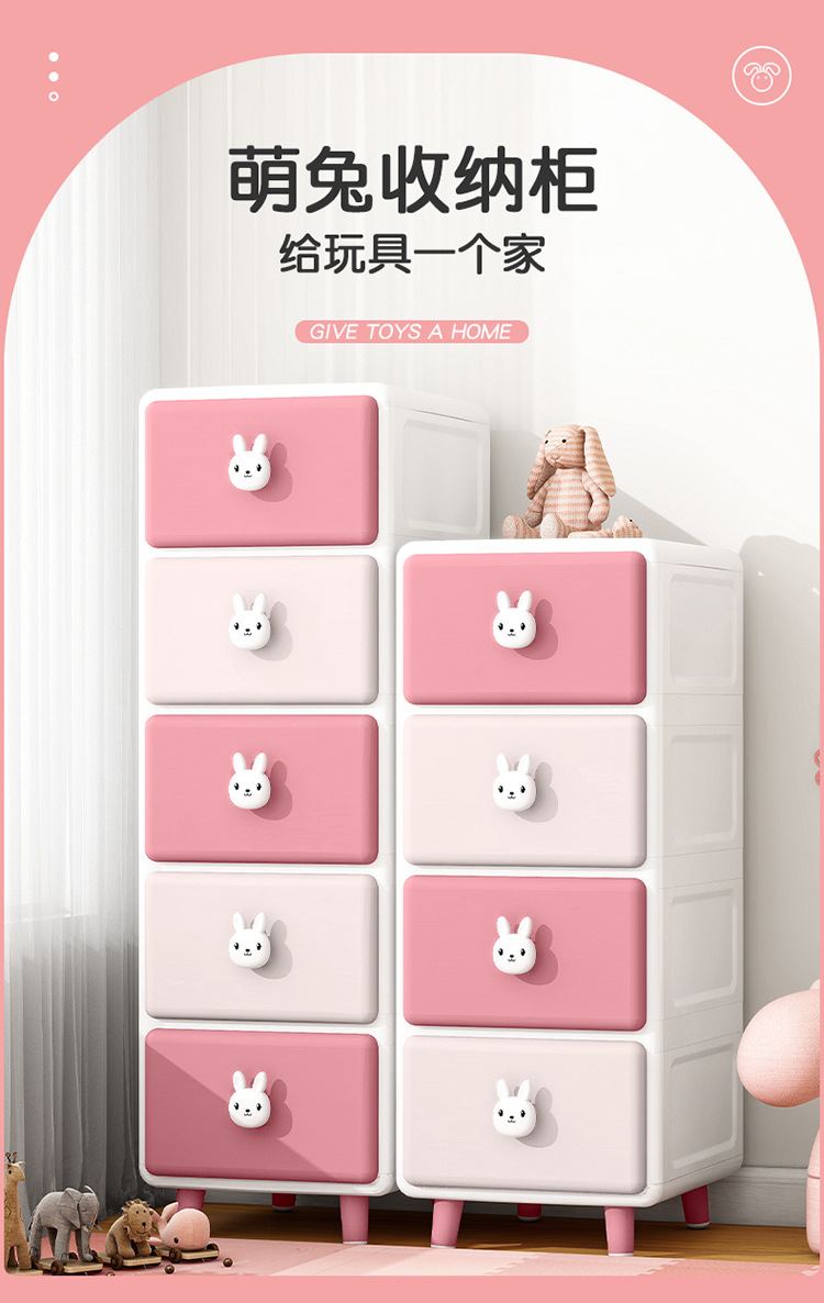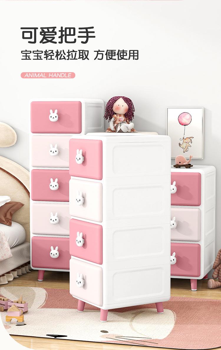 Qiaona 만화 장난감 보관 슬롯 캐비닛 가정용 어린이 플라스틱 옷장 장난감 보관 캐비닛 침대 옆 정리 캐비닛