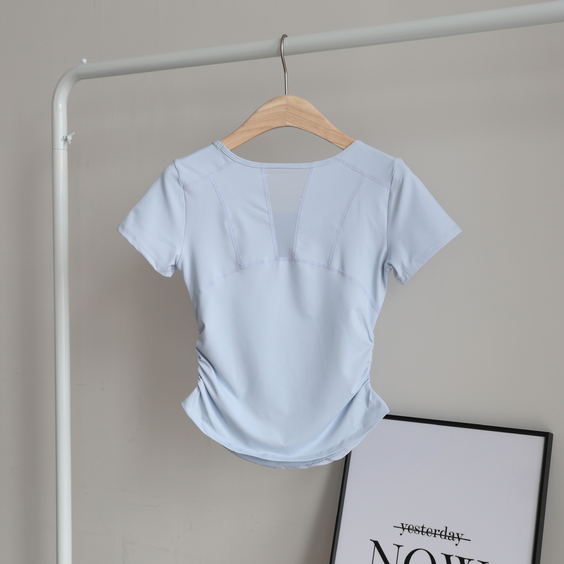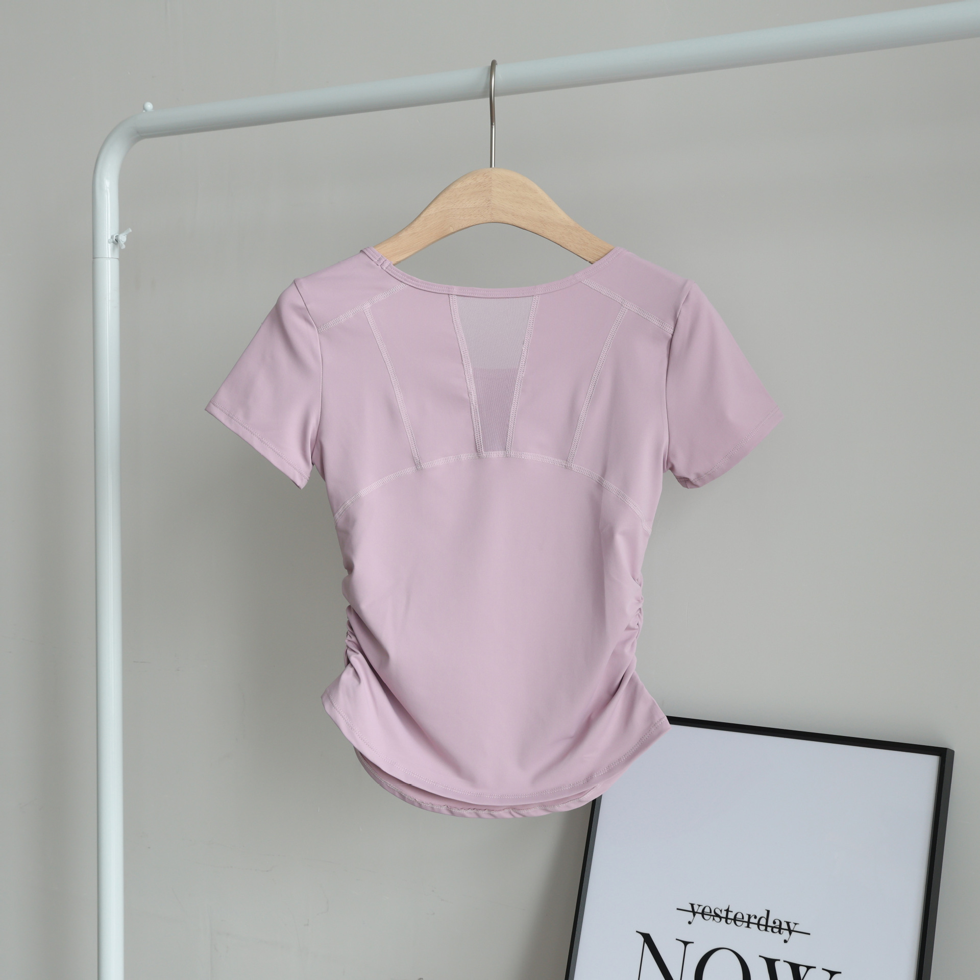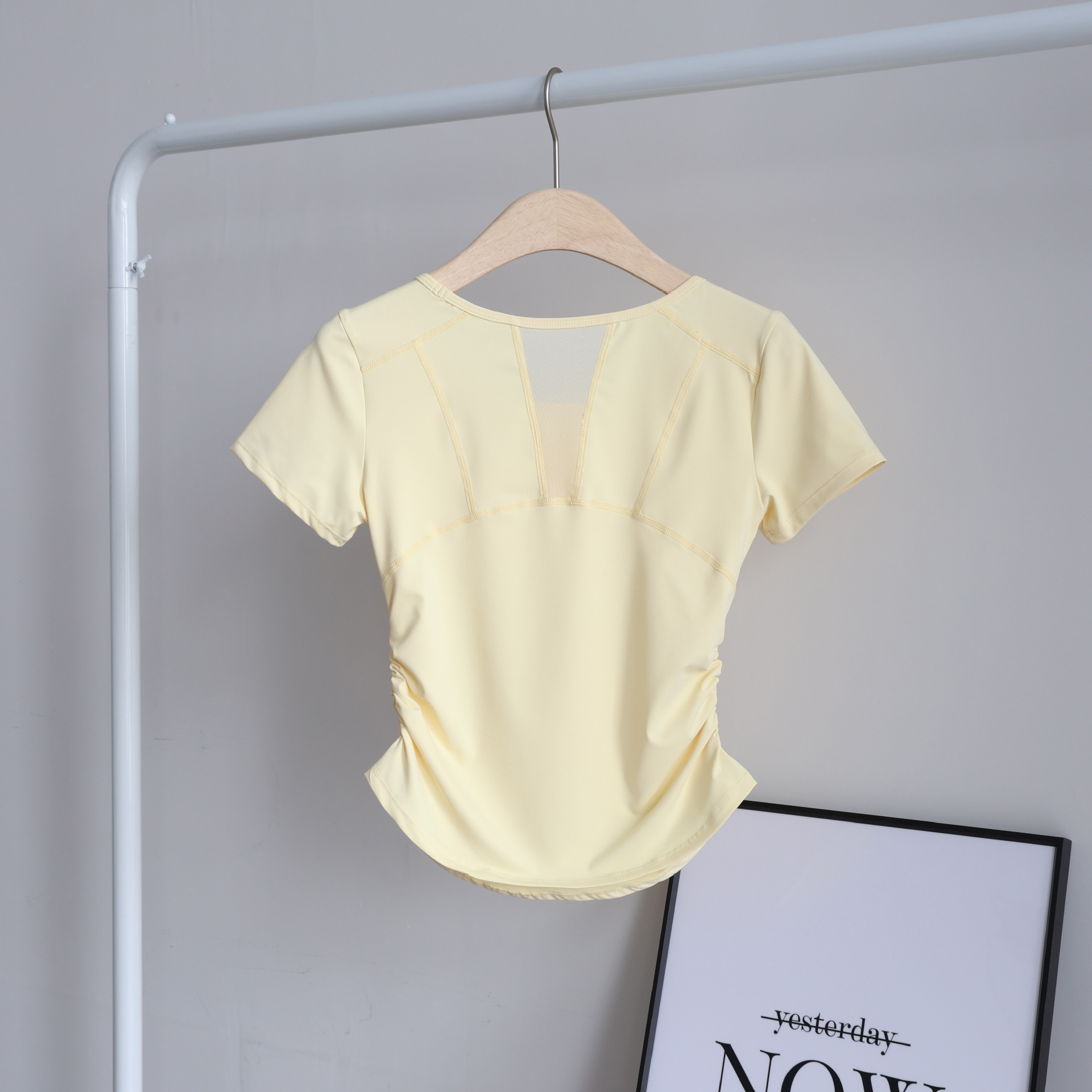 스포츠 반팔 여성 여름 주름 허리 피트니스 트레이닝 탑 메쉬 스플 라이스 통기성 속건 요가웨어 티셔츠