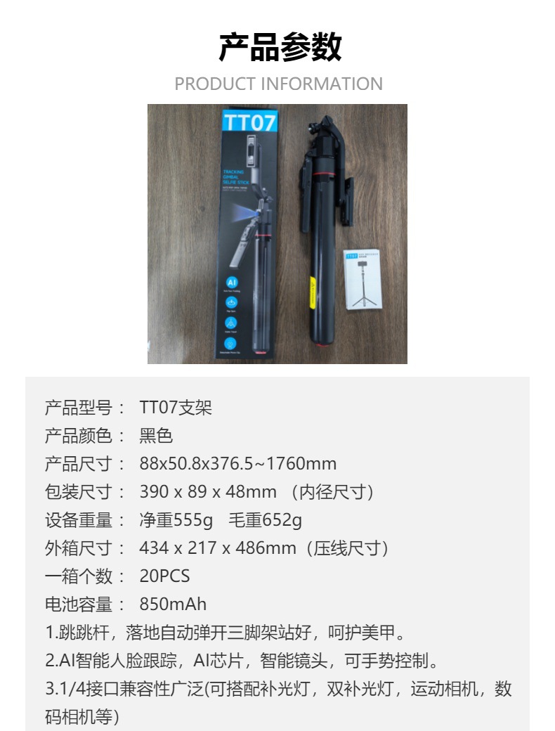 TT07 스마트 AI 얼굴 추적 짐벌 셀카봉 삼각대 휴대폰 셀카 스틱 손떨림 방지 스탠드