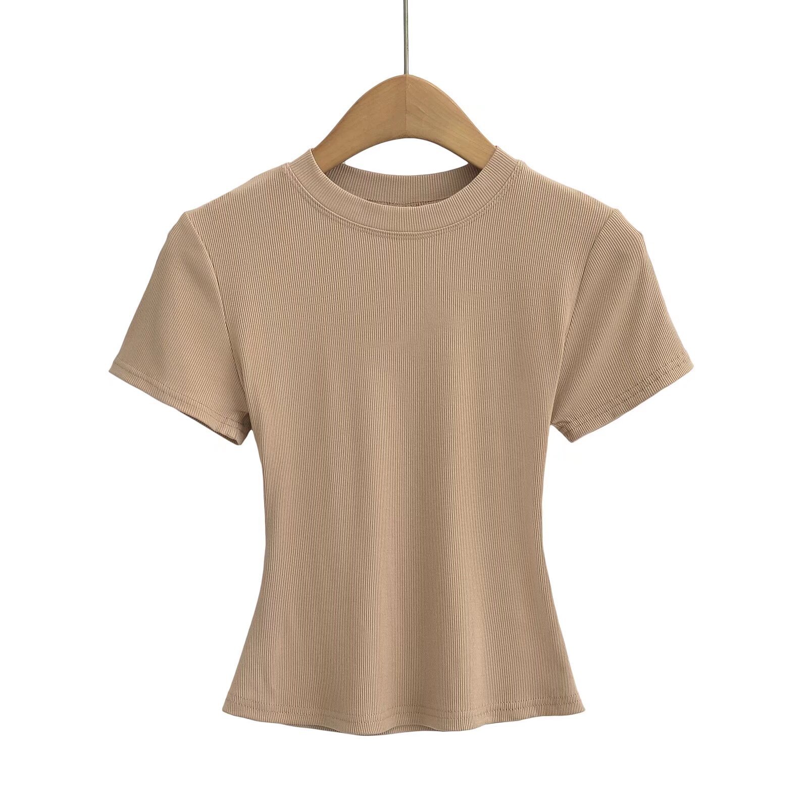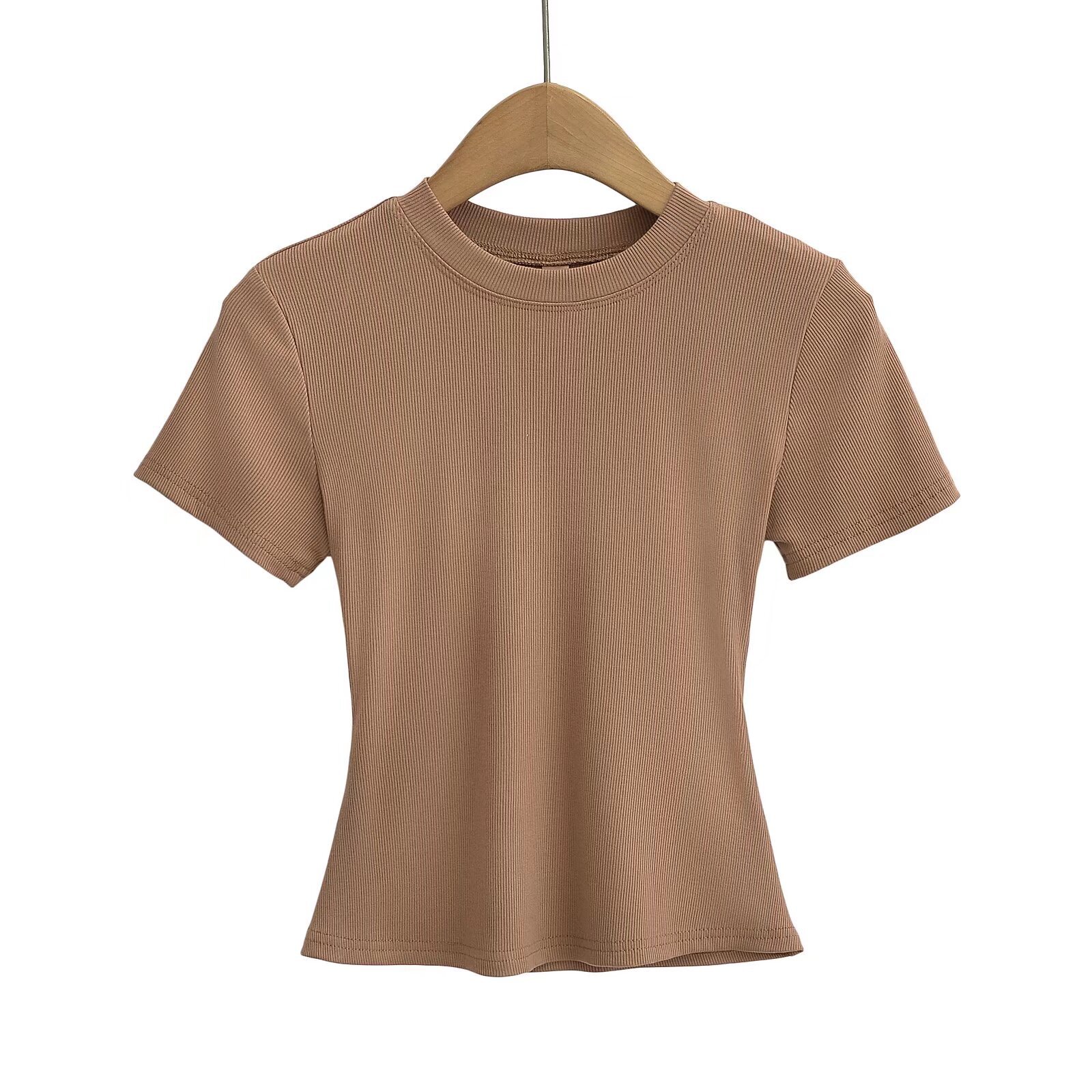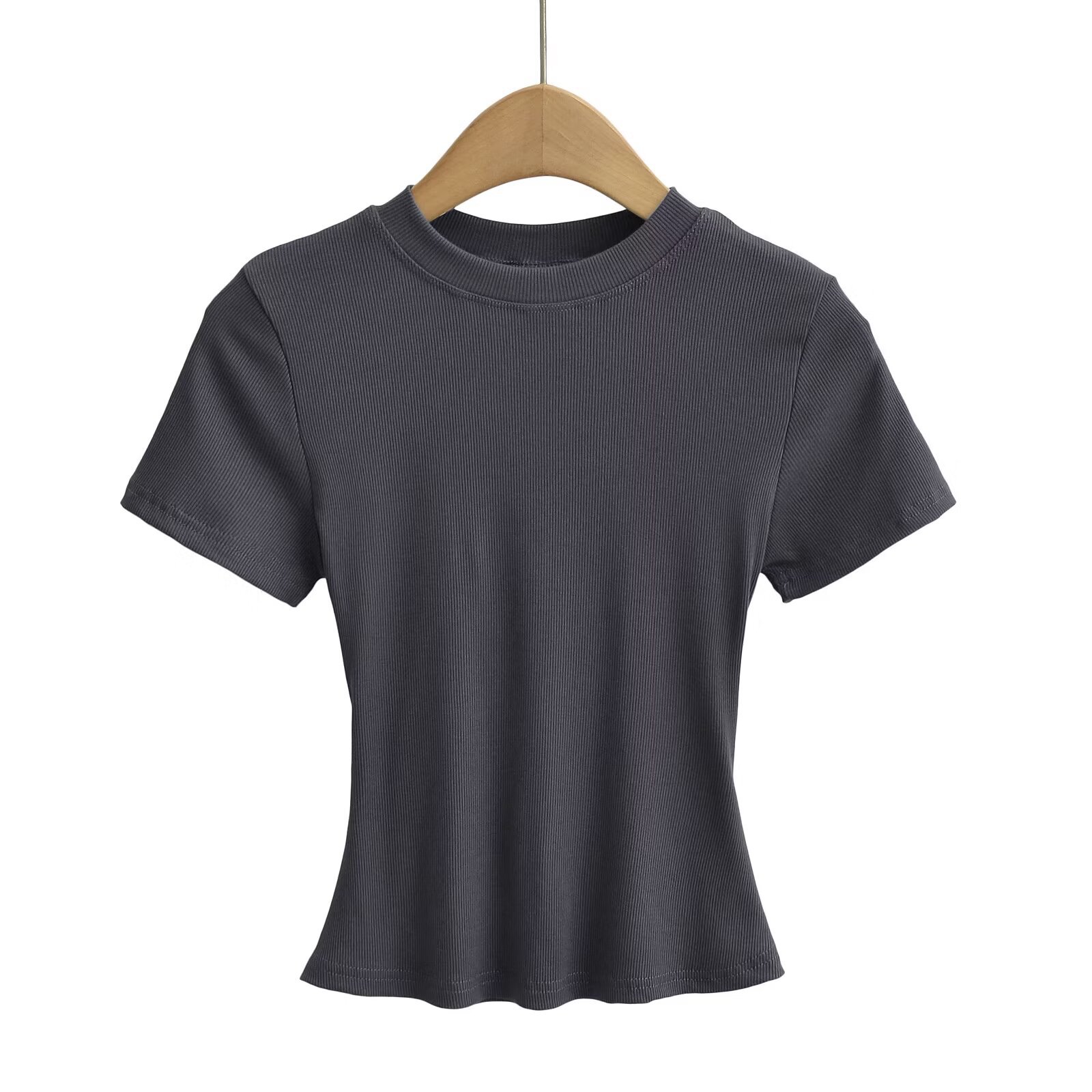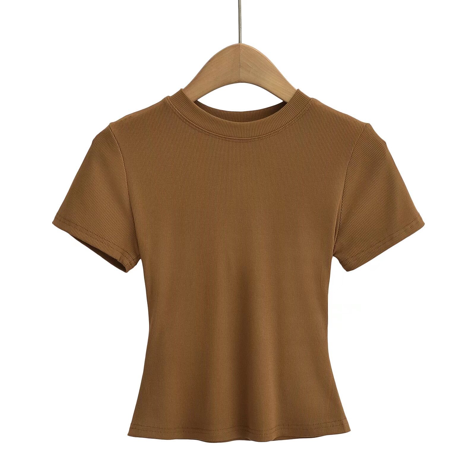 여름 여성용 아메리칸 INS 핫걸 슬림핏 셔츠, 신축성 있는 타이트 티셔츠, 반팔 라운드넥, 슬리밍 솔리드 컬러 탑, 트렌디스토어 가기
