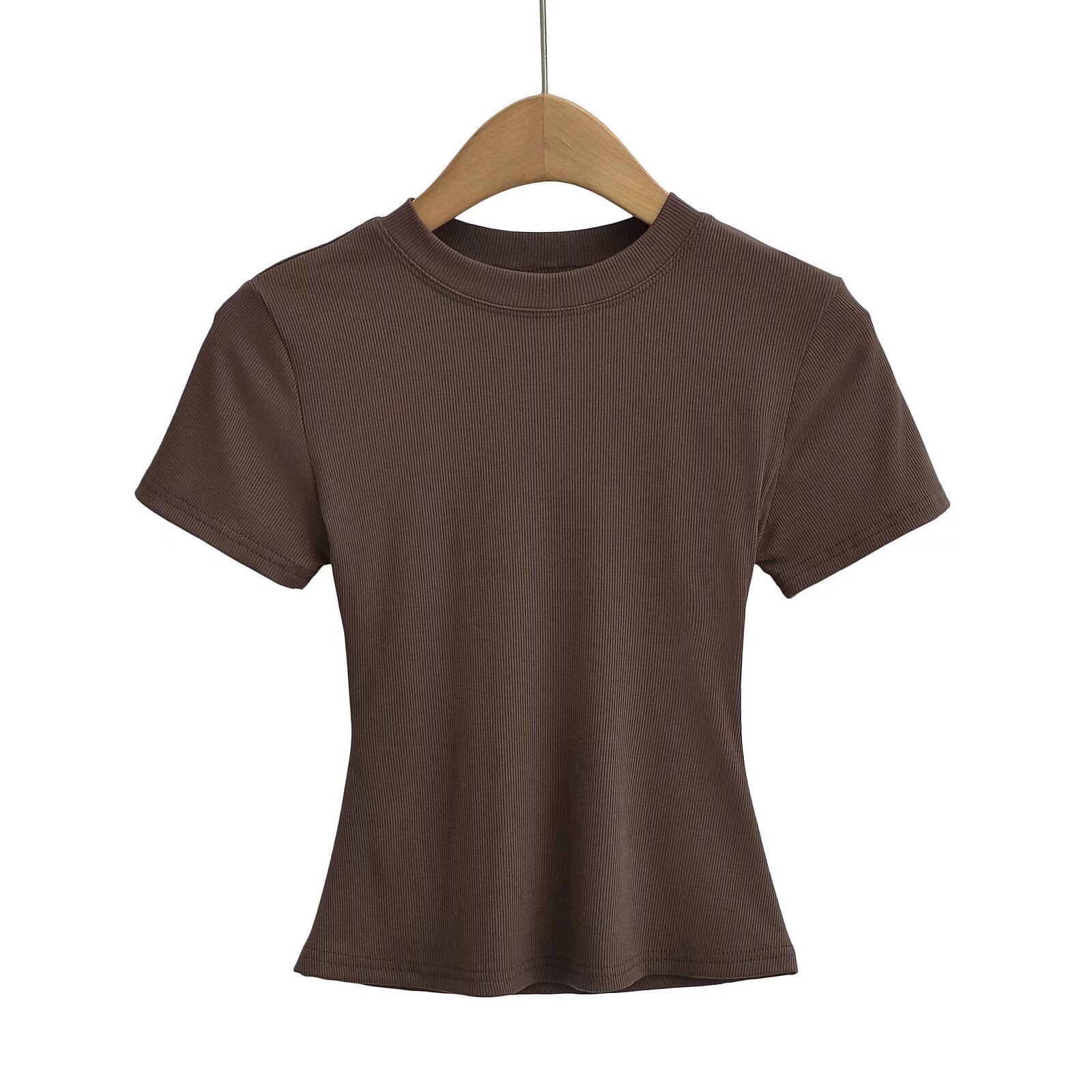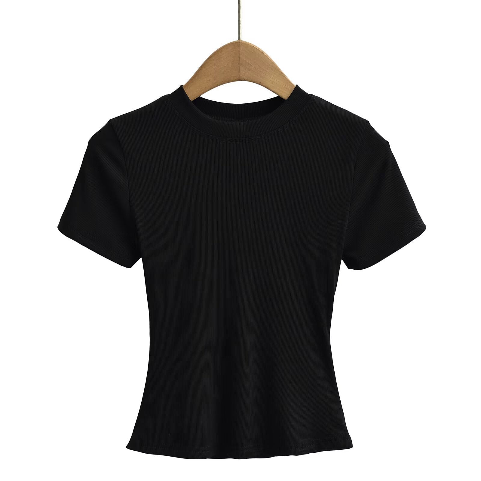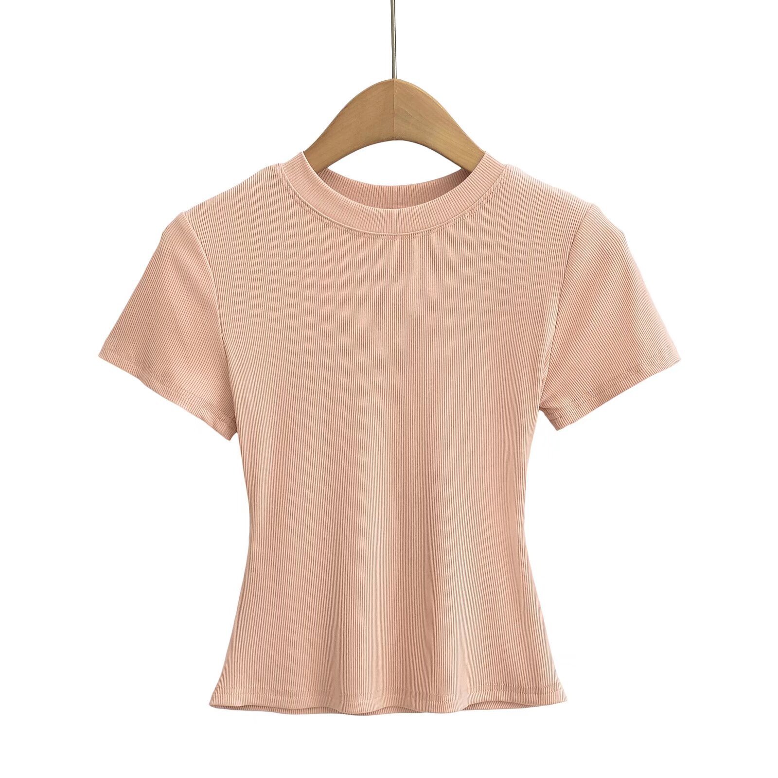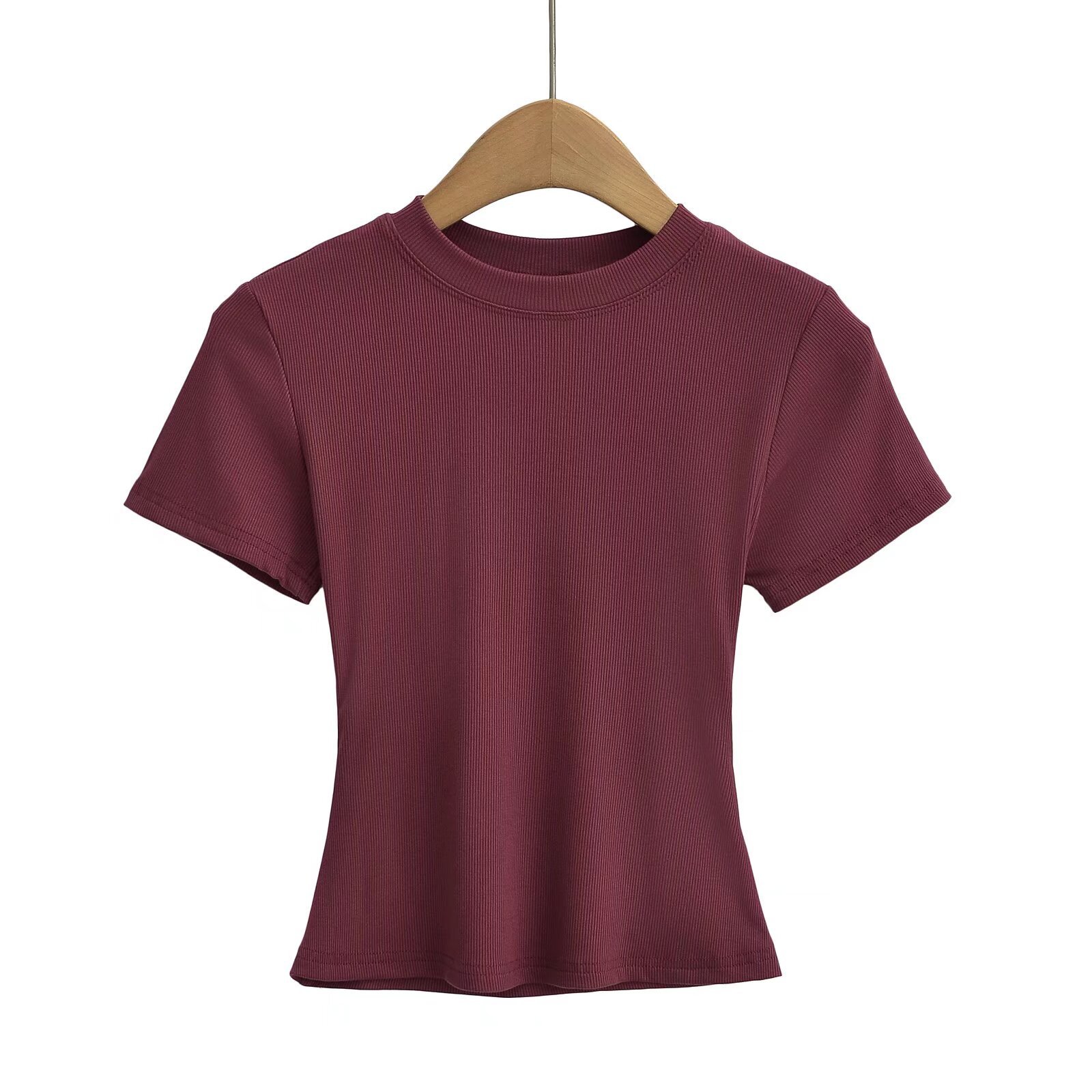 여름 여성용 아메리칸 INS 핫걸 슬림핏 셔츠, 신축성 있는 타이트 티셔츠, 반팔 라운드넥, 슬리밍 솔리드 컬러 탑, 트렌디스토어 가기