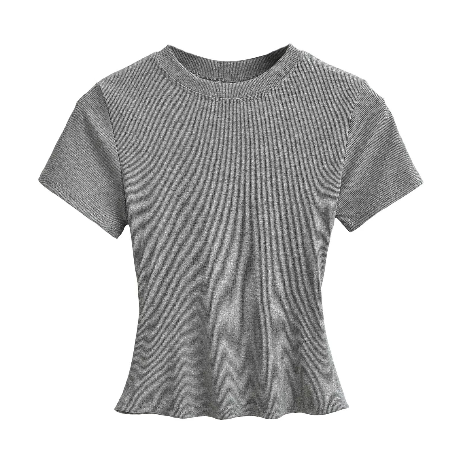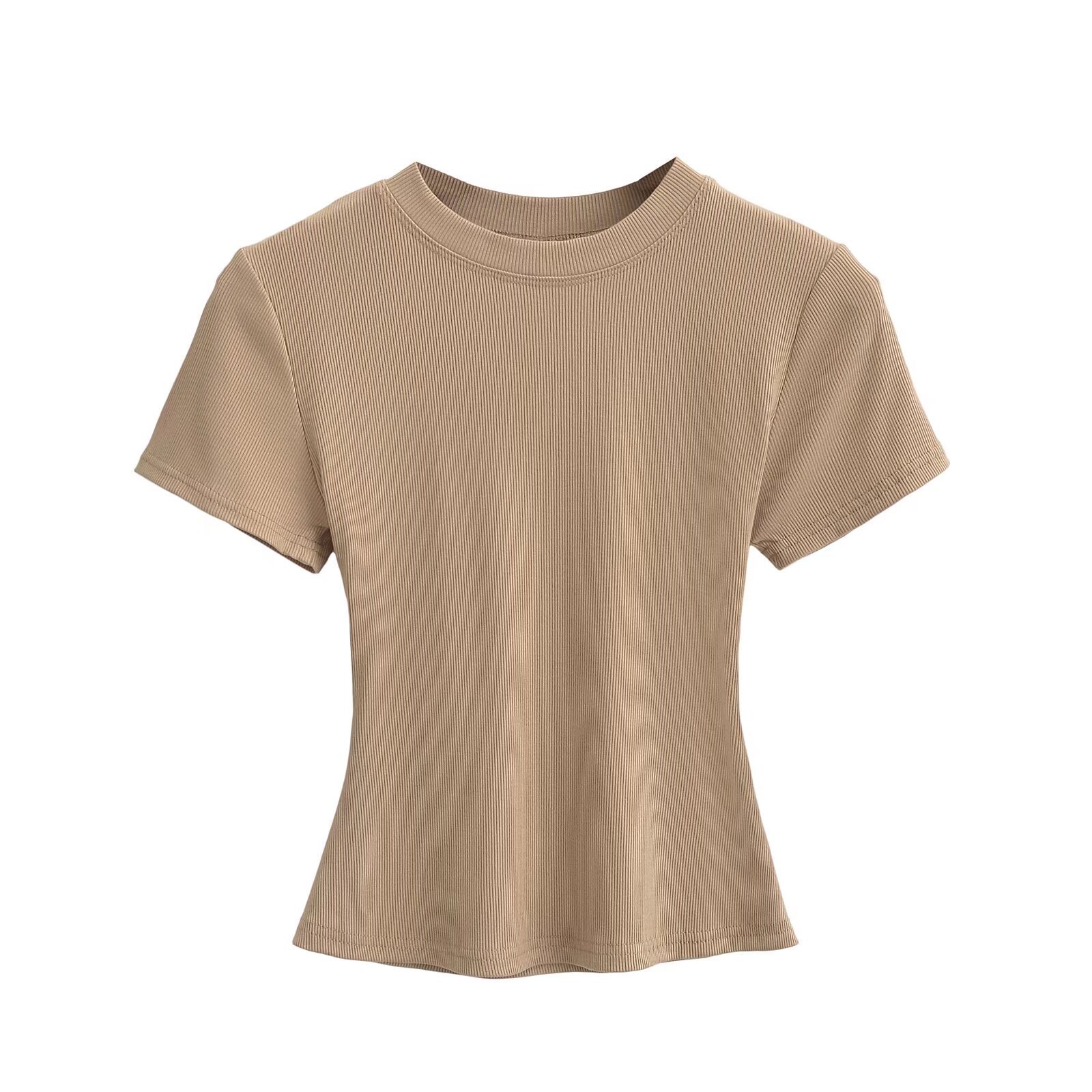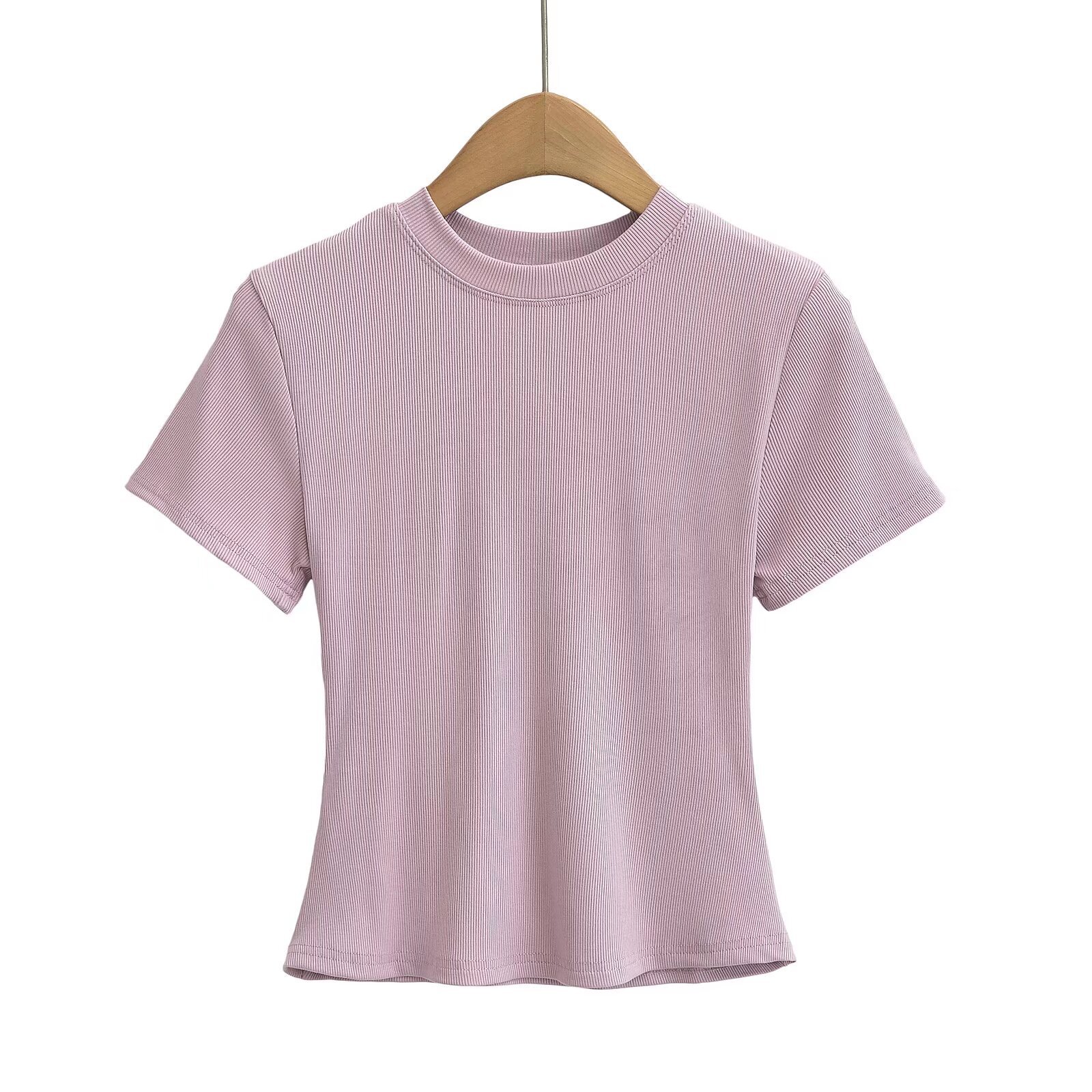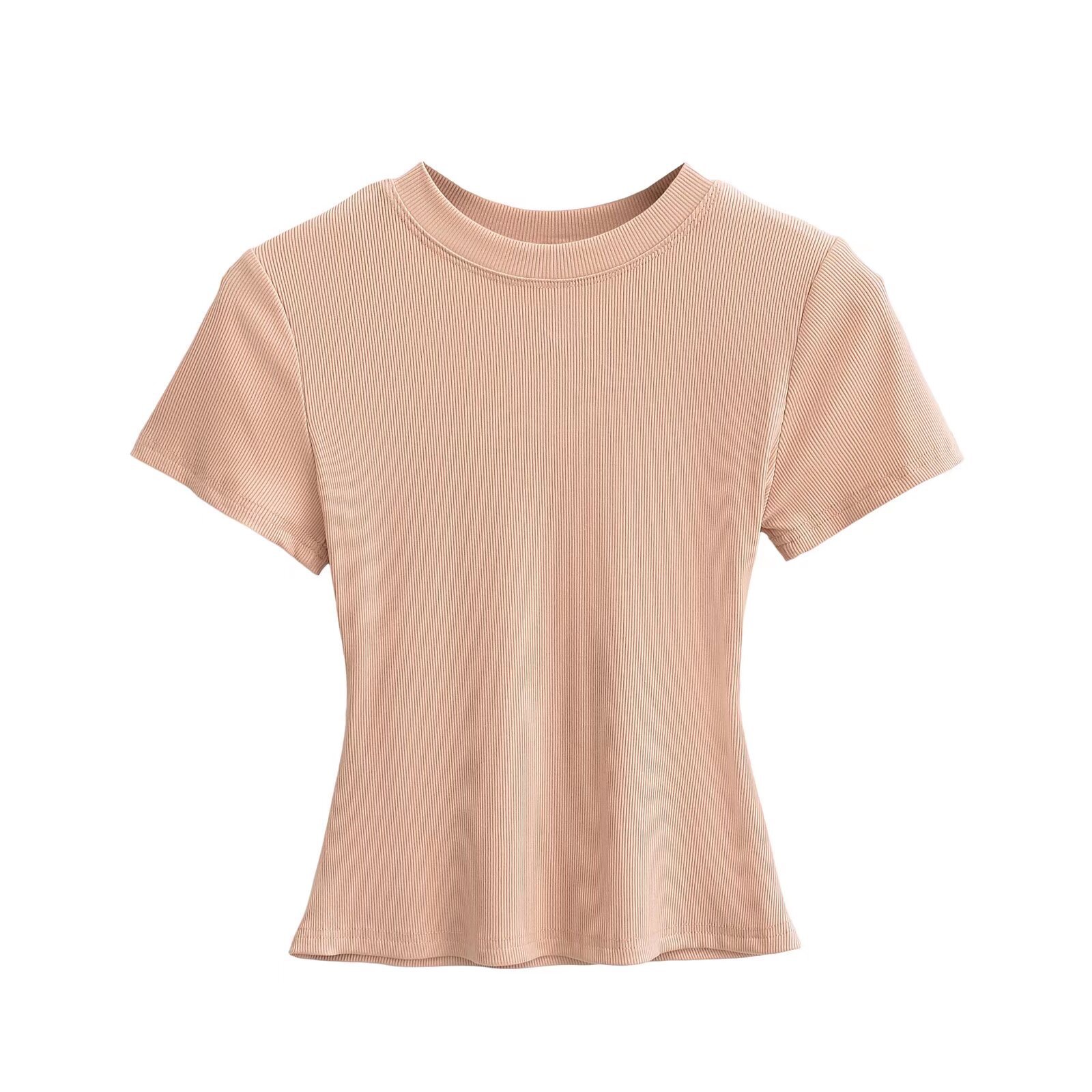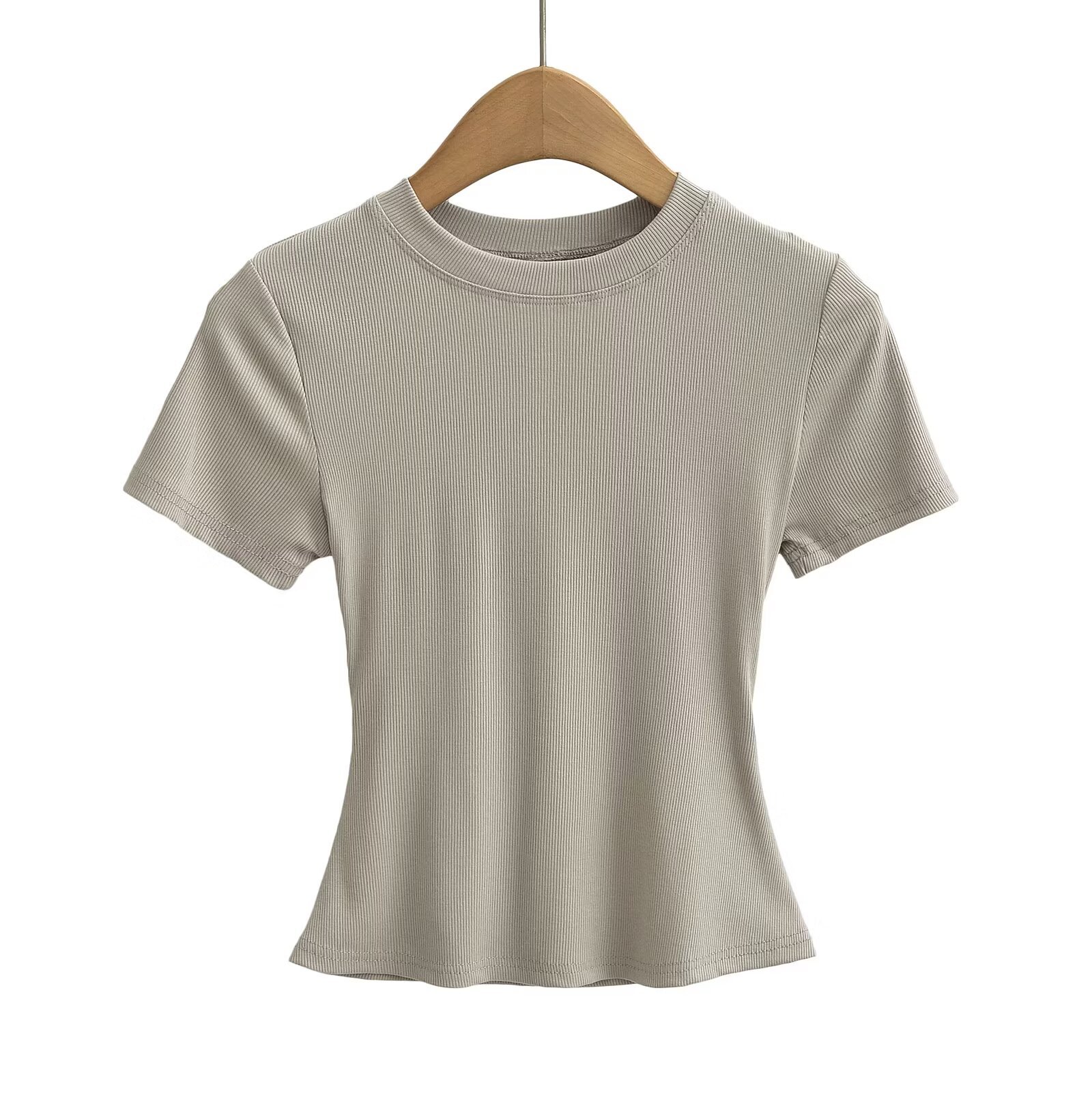 여름 여성용 아메리칸 INS 핫걸 슬림핏 셔츠, 신축성 있는 타이트 티셔츠, 반팔 라운드넥, 슬리밍 솔리드 컬러 탑, 트렌디스토어 가기