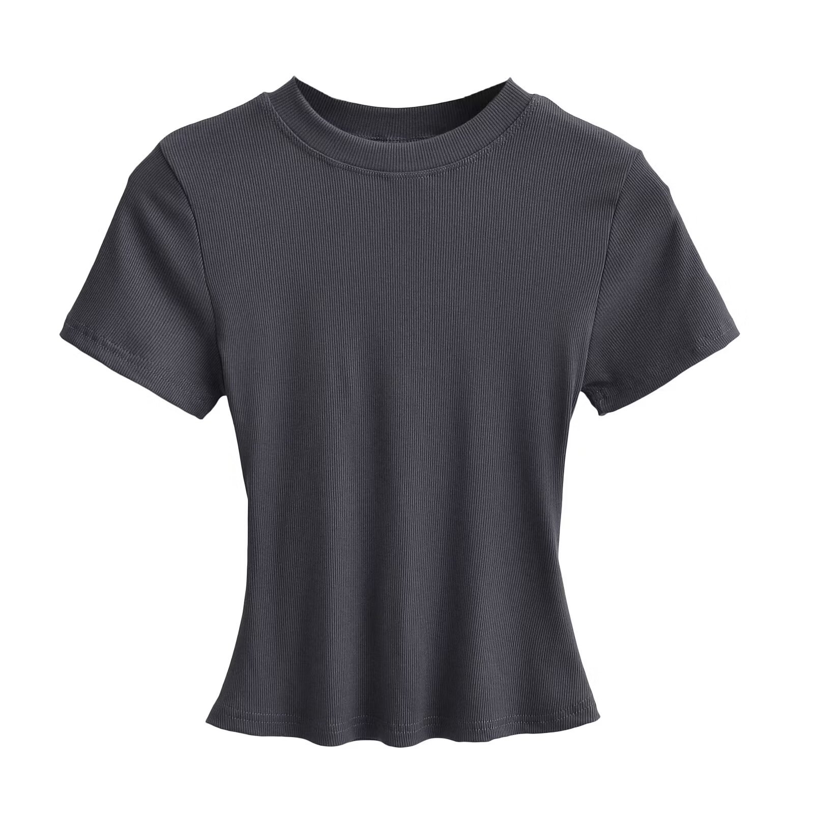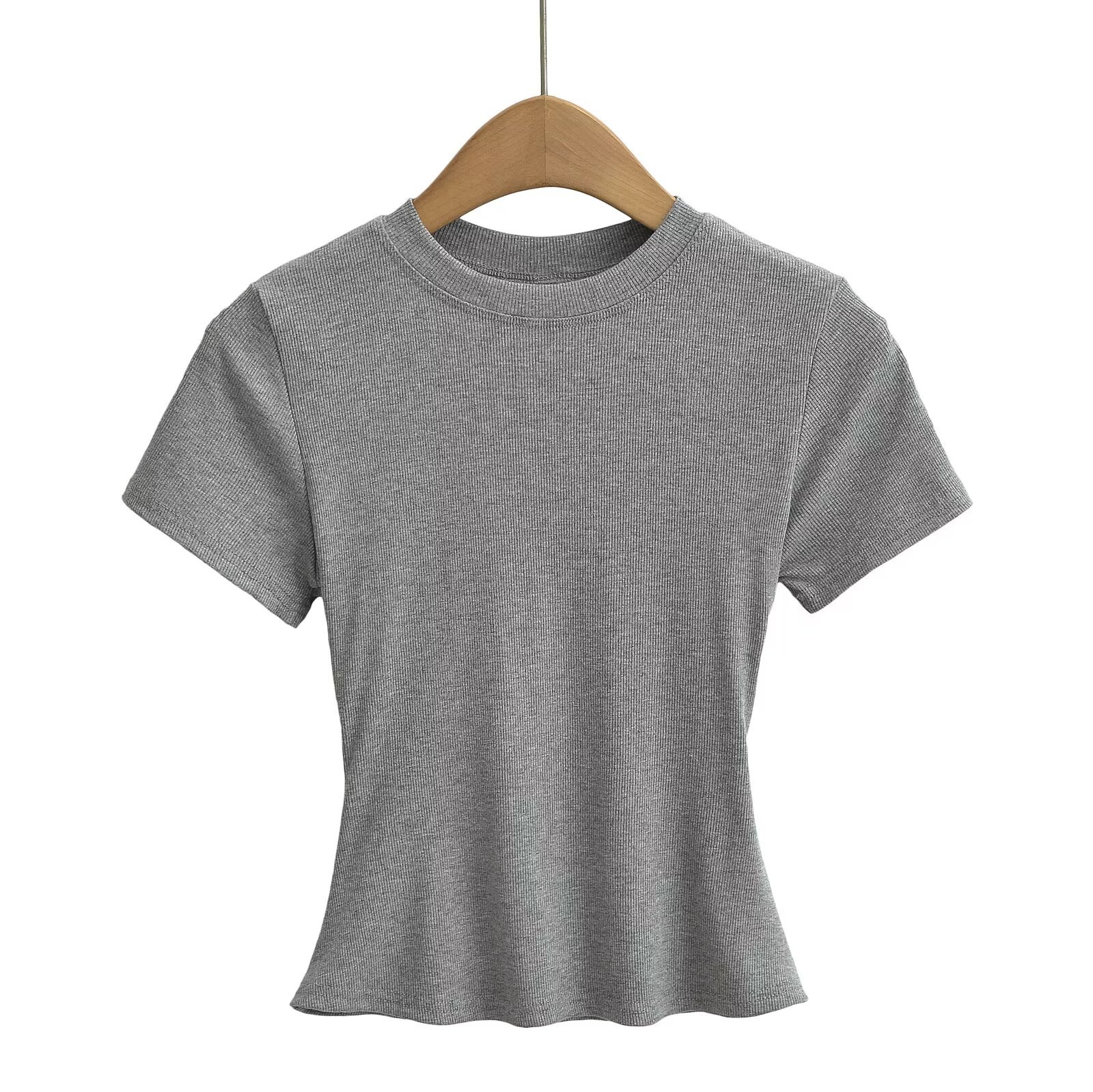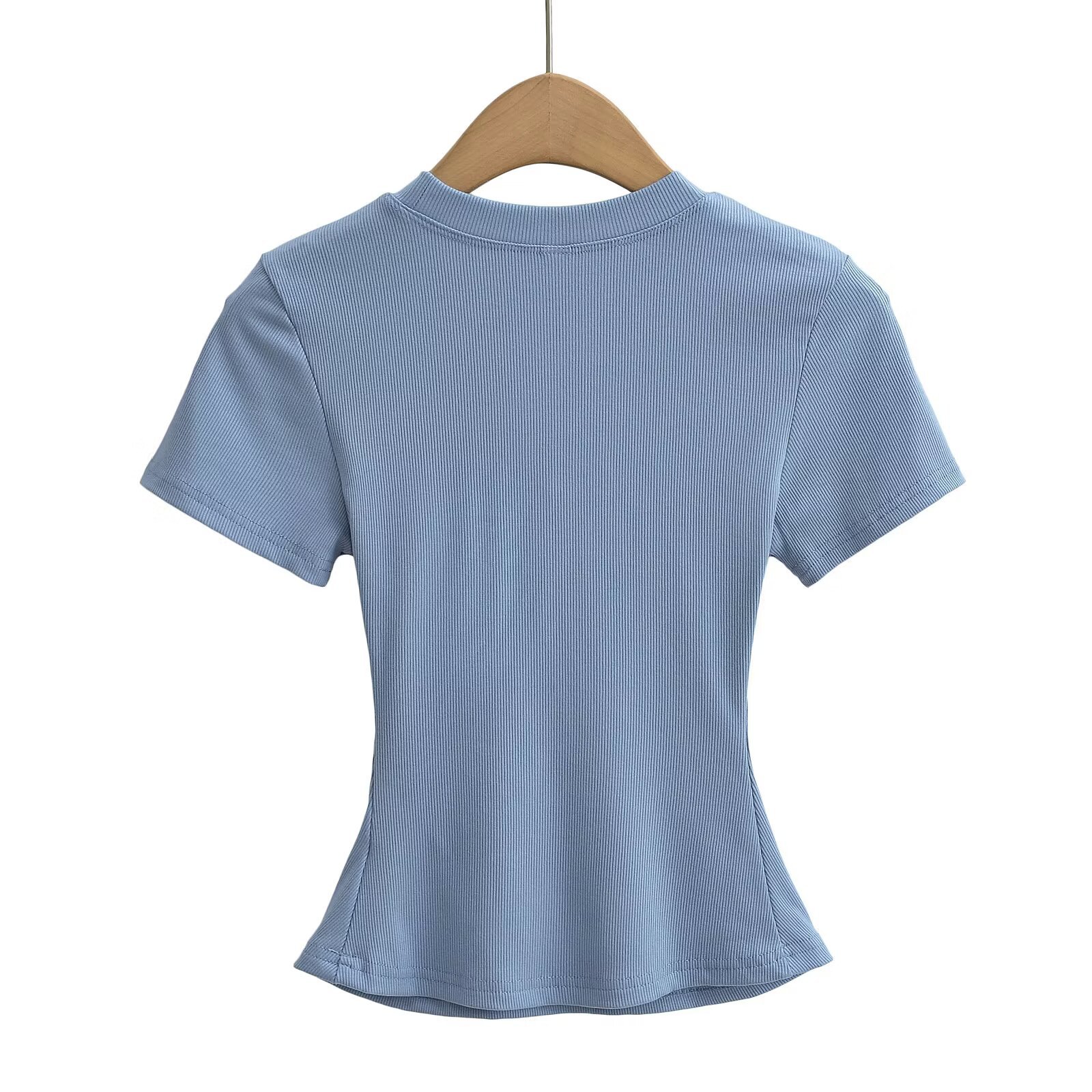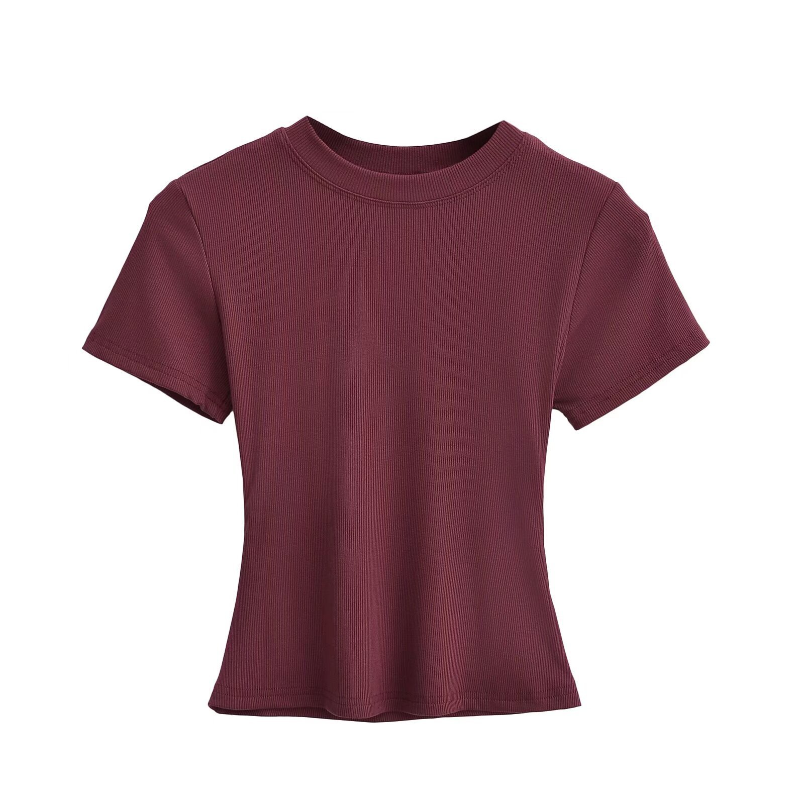 여름 여성용 아메리칸 INS 핫걸 슬림핏 셔츠, 신축성 있는 타이트 티셔츠, 반팔 라운드넥, 슬리밍 솔리드 컬러 탑, 트렌디스토어 가기