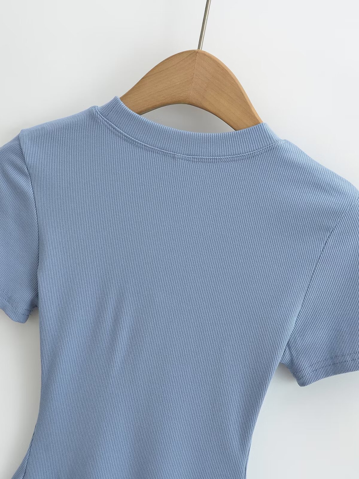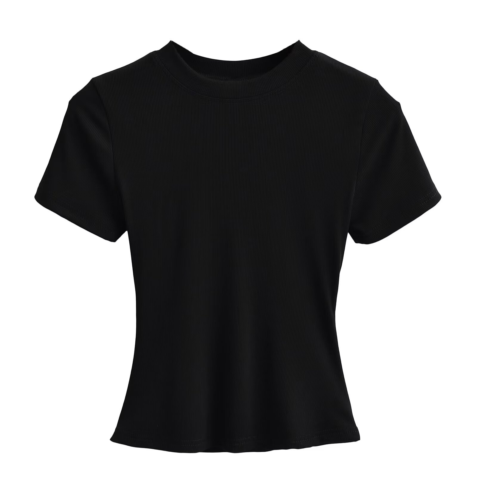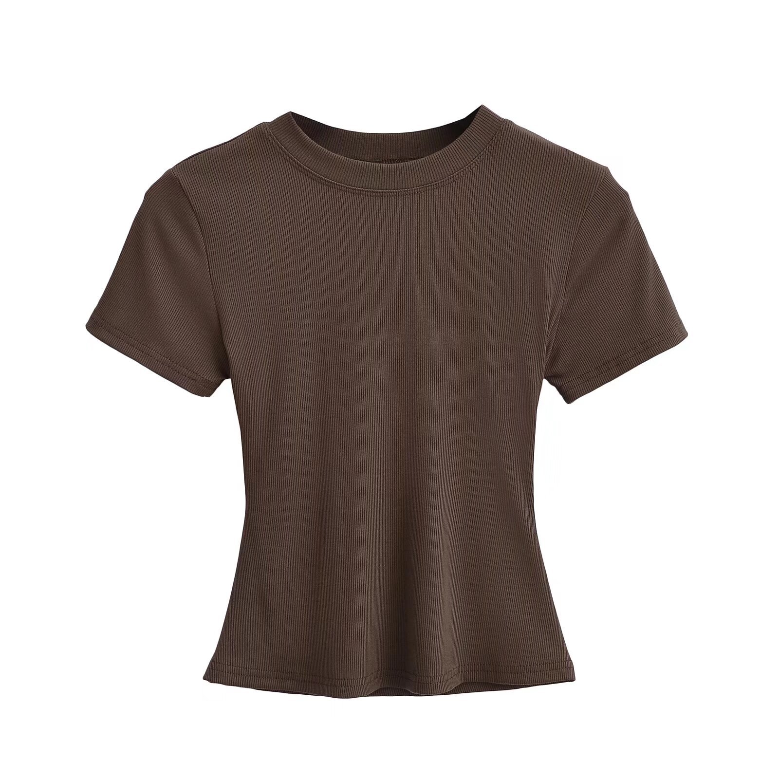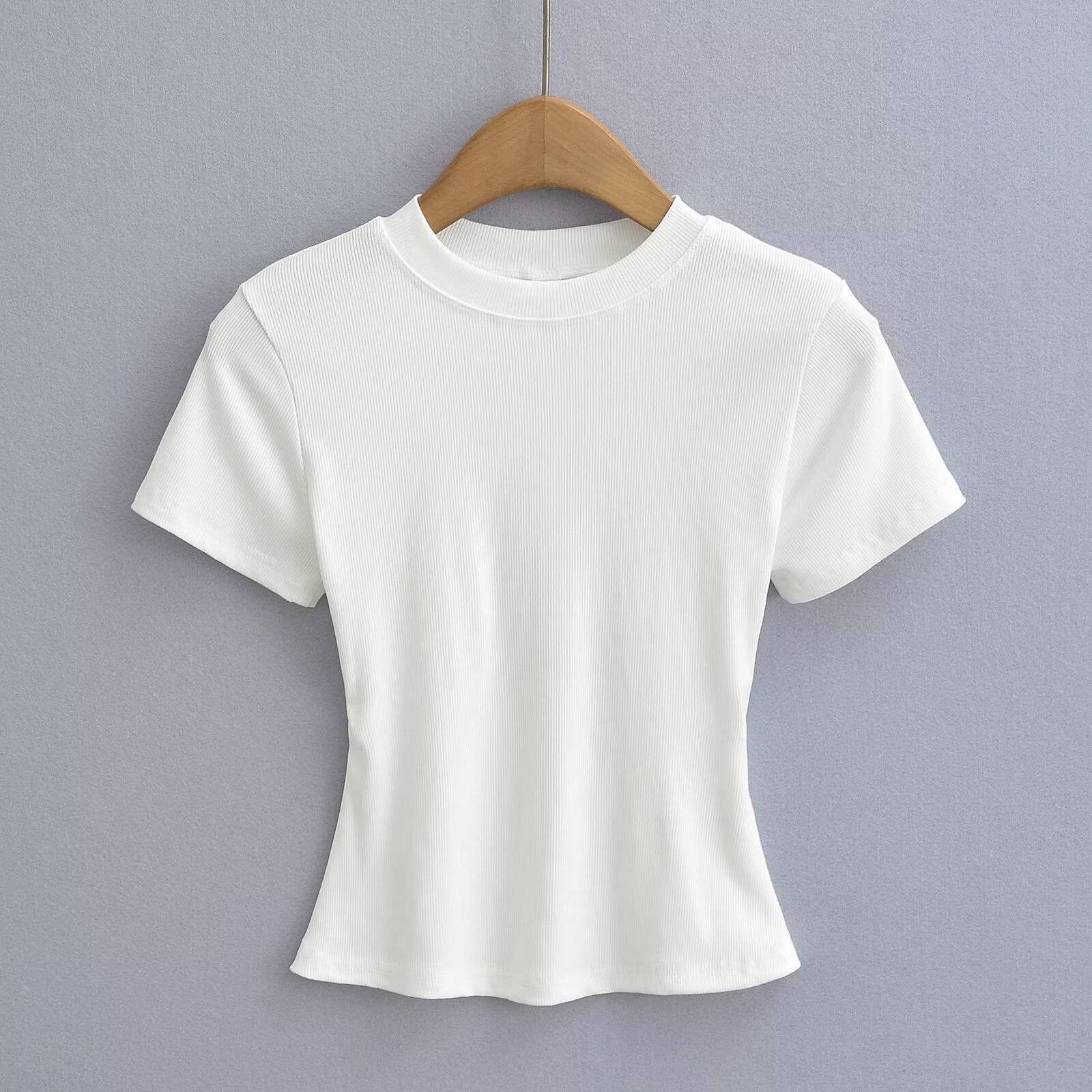 여름 여성용 아메리칸 INS 핫걸 슬림핏 셔츠, 신축성 있는 타이트 티셔츠, 반팔 라운드넥, 슬리밍 솔리드 컬러 탑, 트렌디스토어 가기