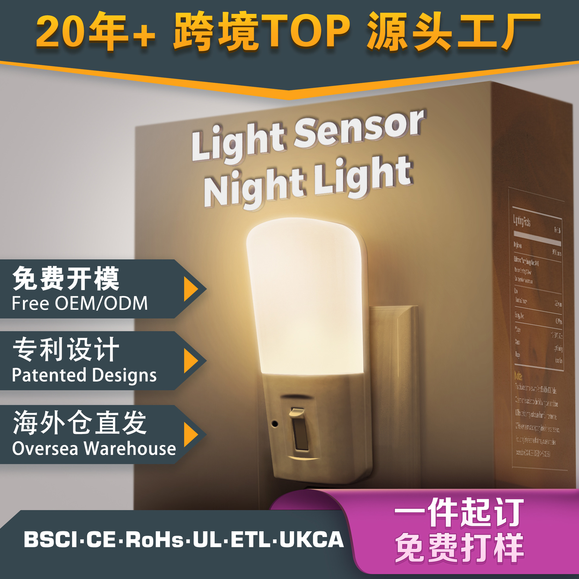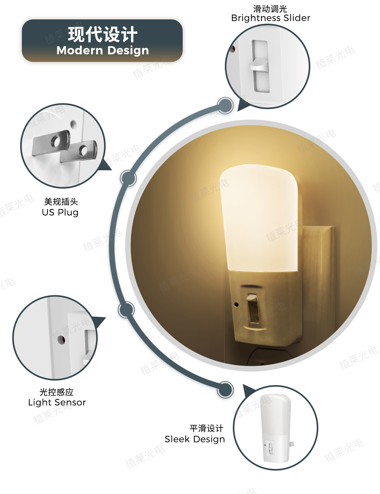 플러그인형 야간등 GY008 심플 슈퍼마켓 스타일 디밍 가능 어린이 침실 침대 옆 LED 조명 감지 야간등