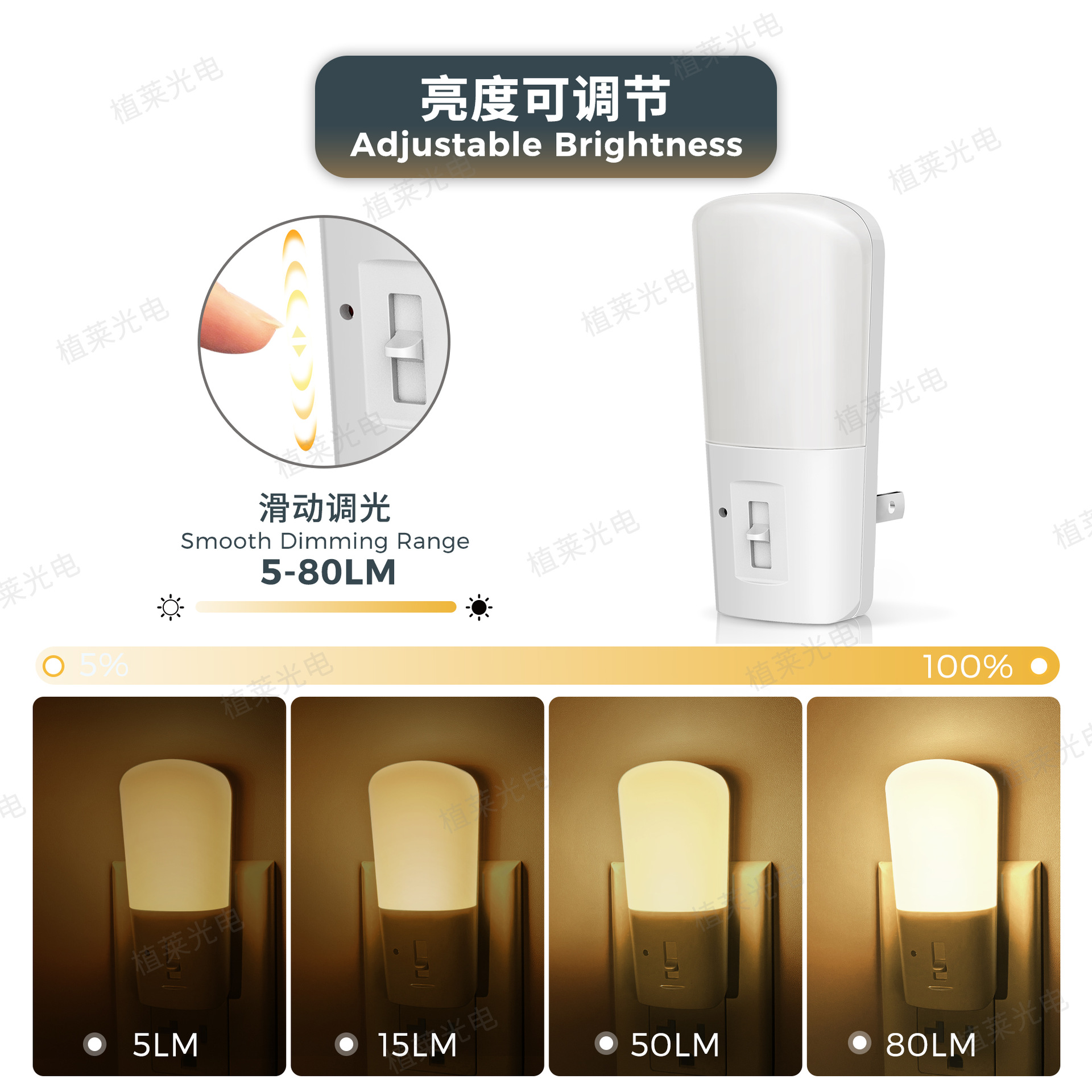 • Brightness Adjustable: This dimmable plug in night light are brightness adjustable from 5lm to 80lm with a slide switch. You can choose the brightness you want to cater to your different usage scenarios.