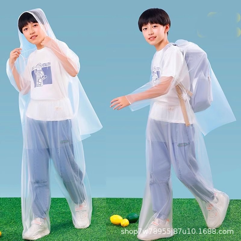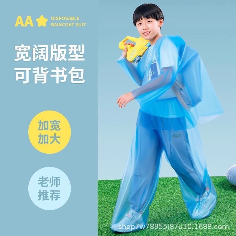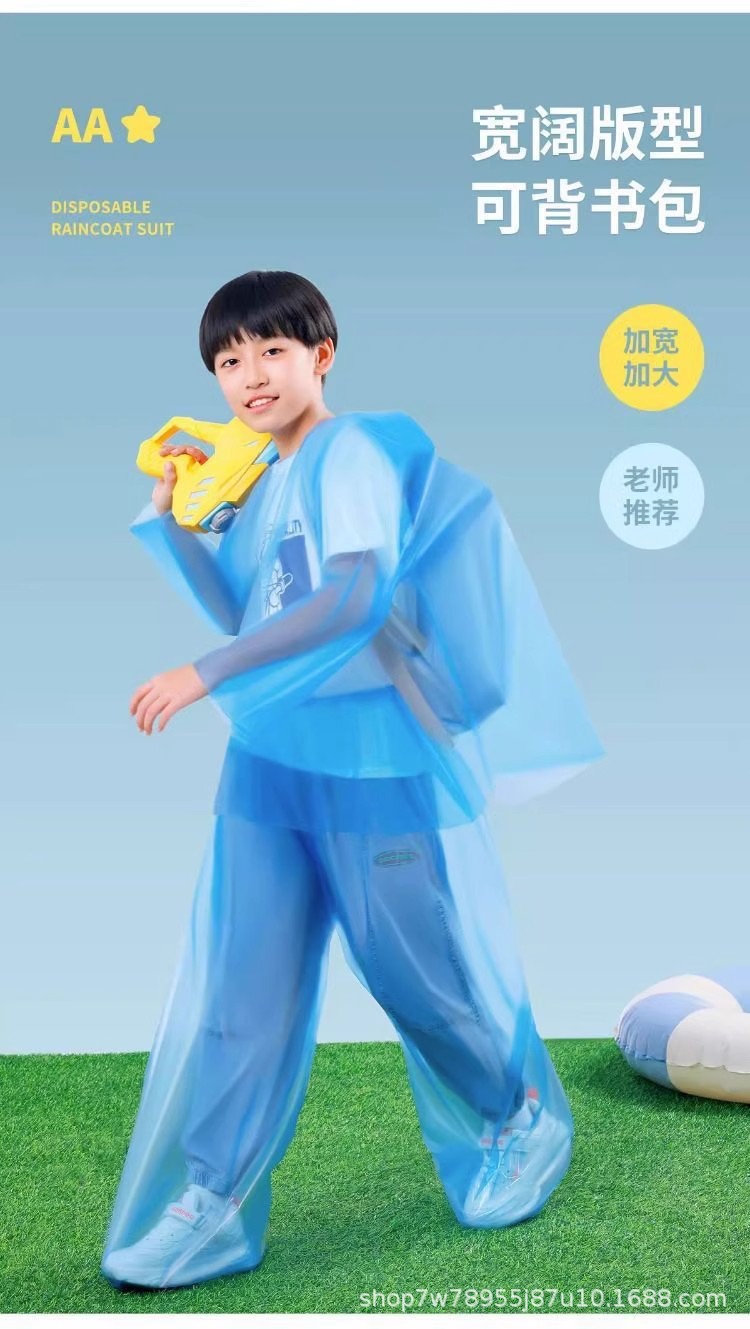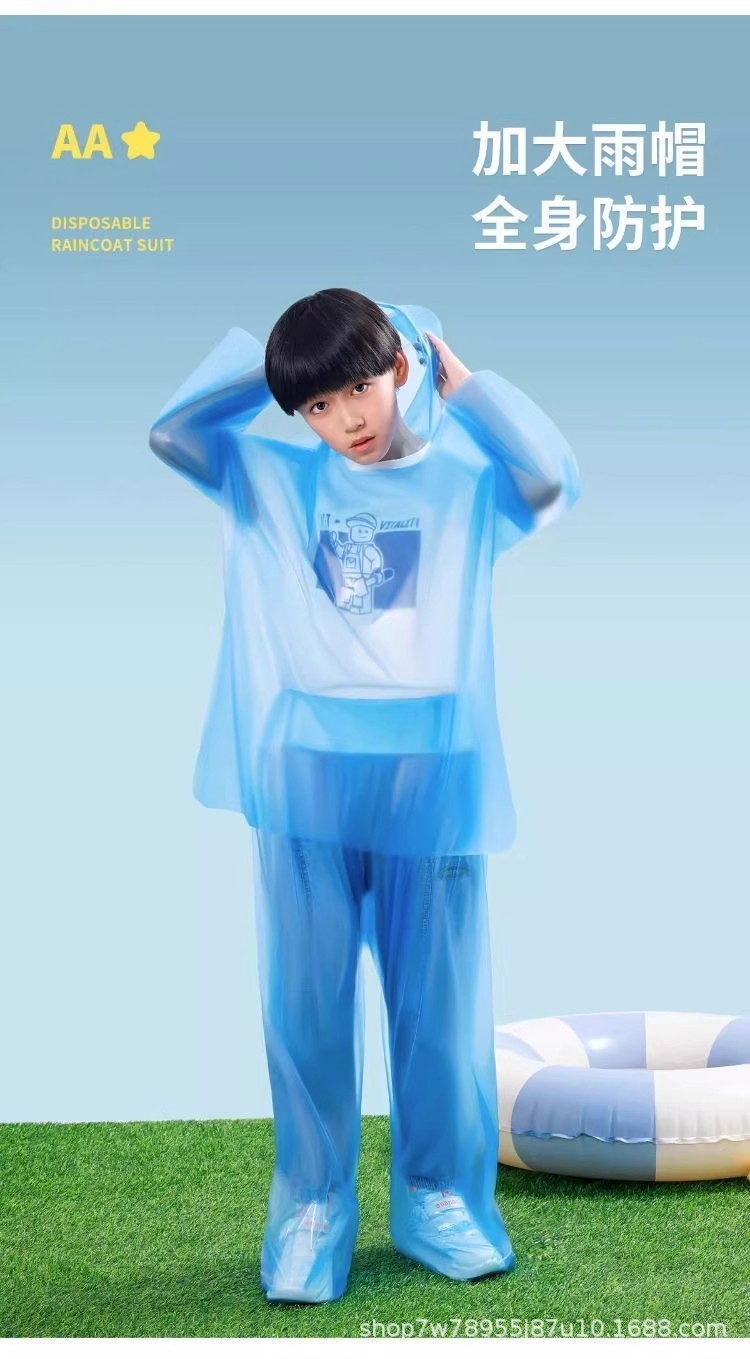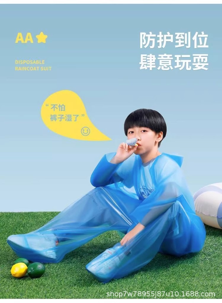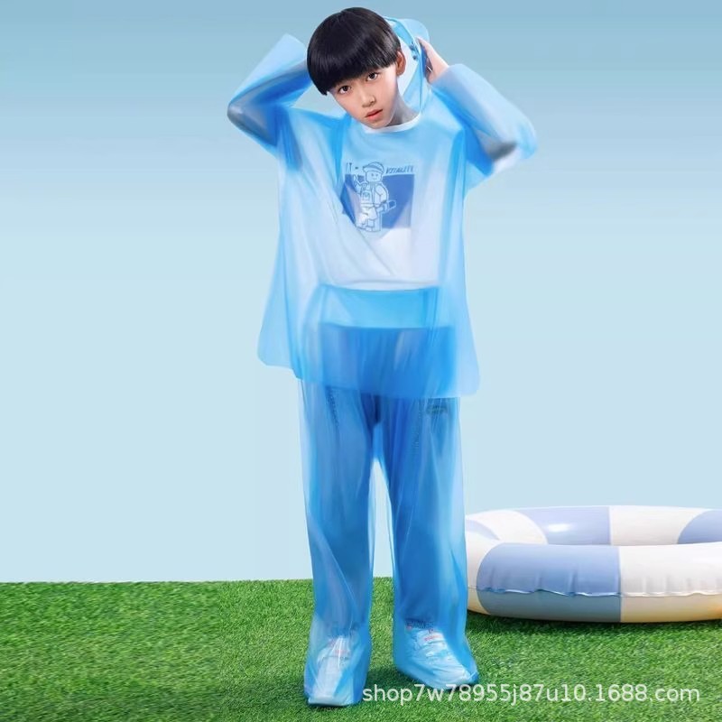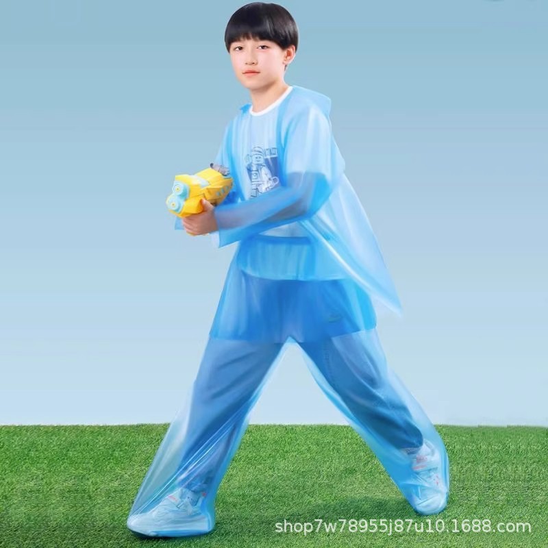 일회용 아동용 비옷 세트, 두껍고 길고 완전히 밀폐된 발을 덮는 비바람과 래프팅 비옷