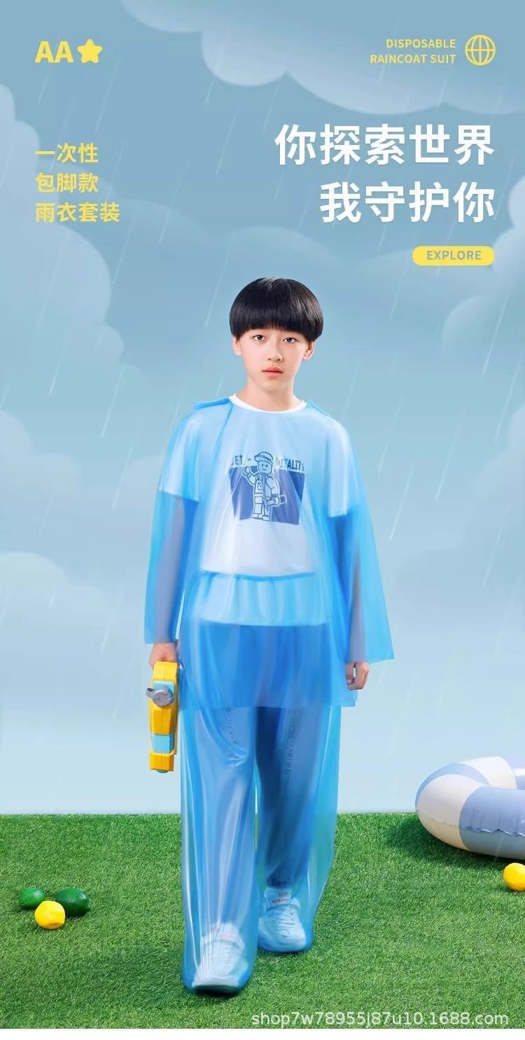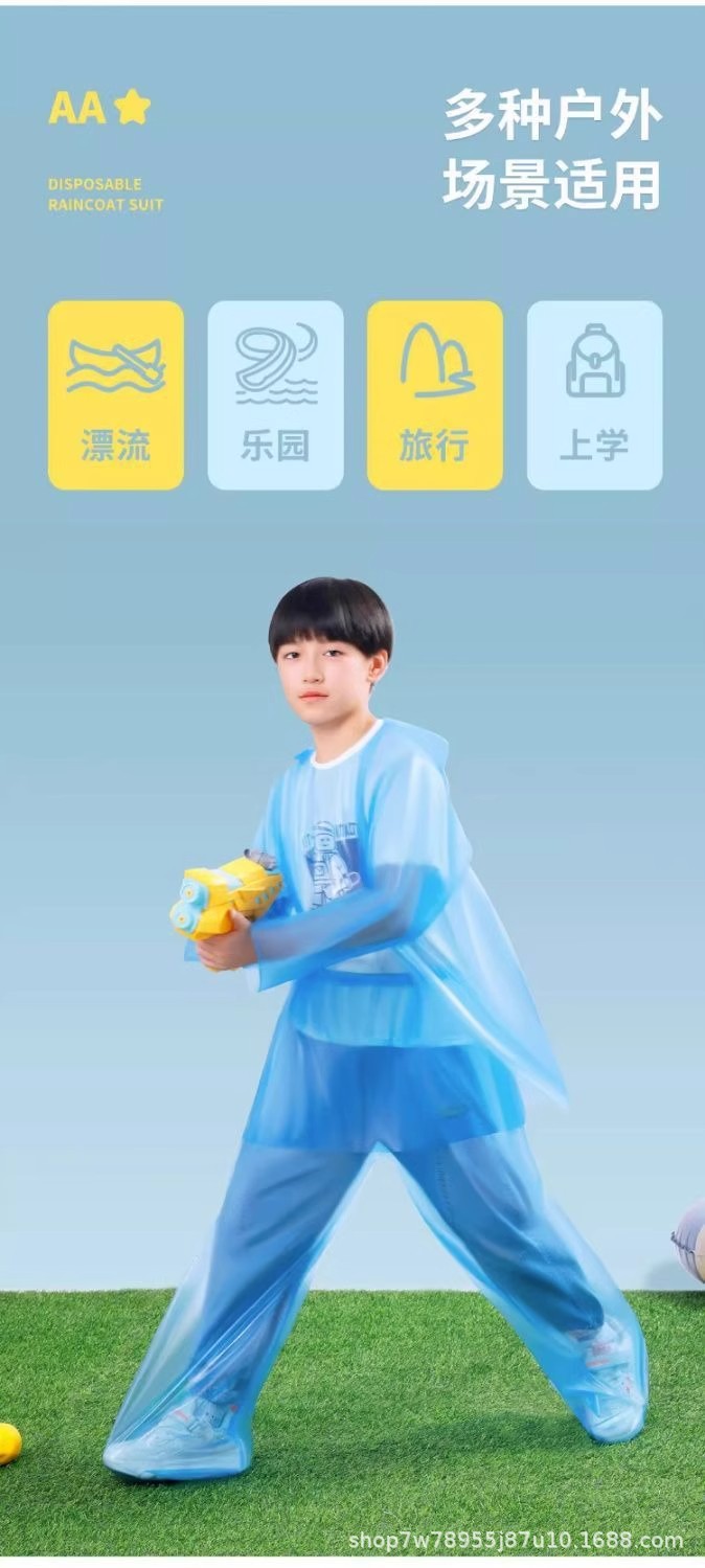 일회용 아동용 비옷 세트, 두껍고 길고 완전히 밀폐된 발을 덮는 비바람과 래프팅 비옷스토어 가기