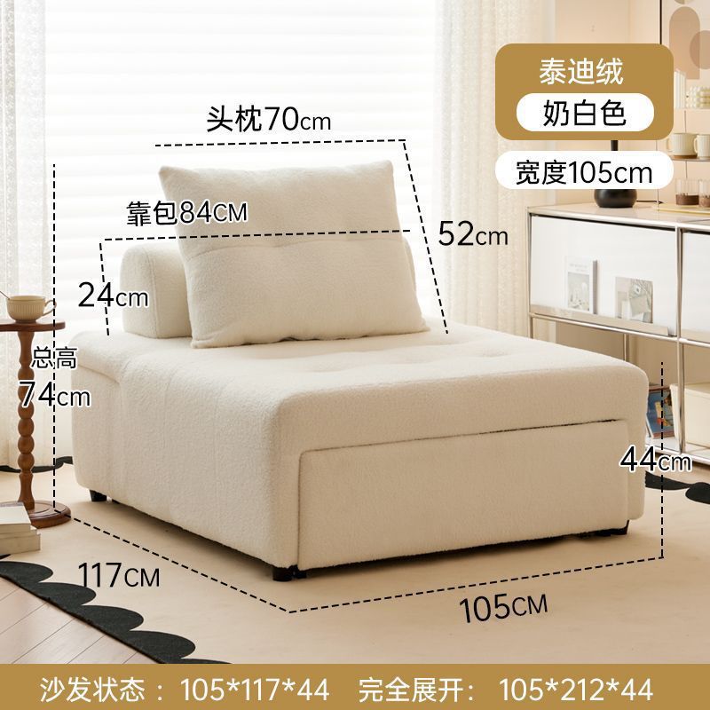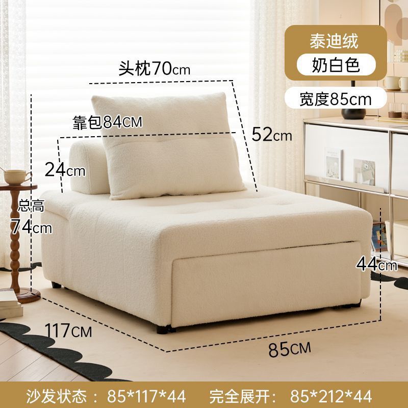 크림 스타일 소파 접이식 텔레스코픽 소파 침대 다기능 작은 아파트 싱글 게으른 이중 목적 거실 소파 의자