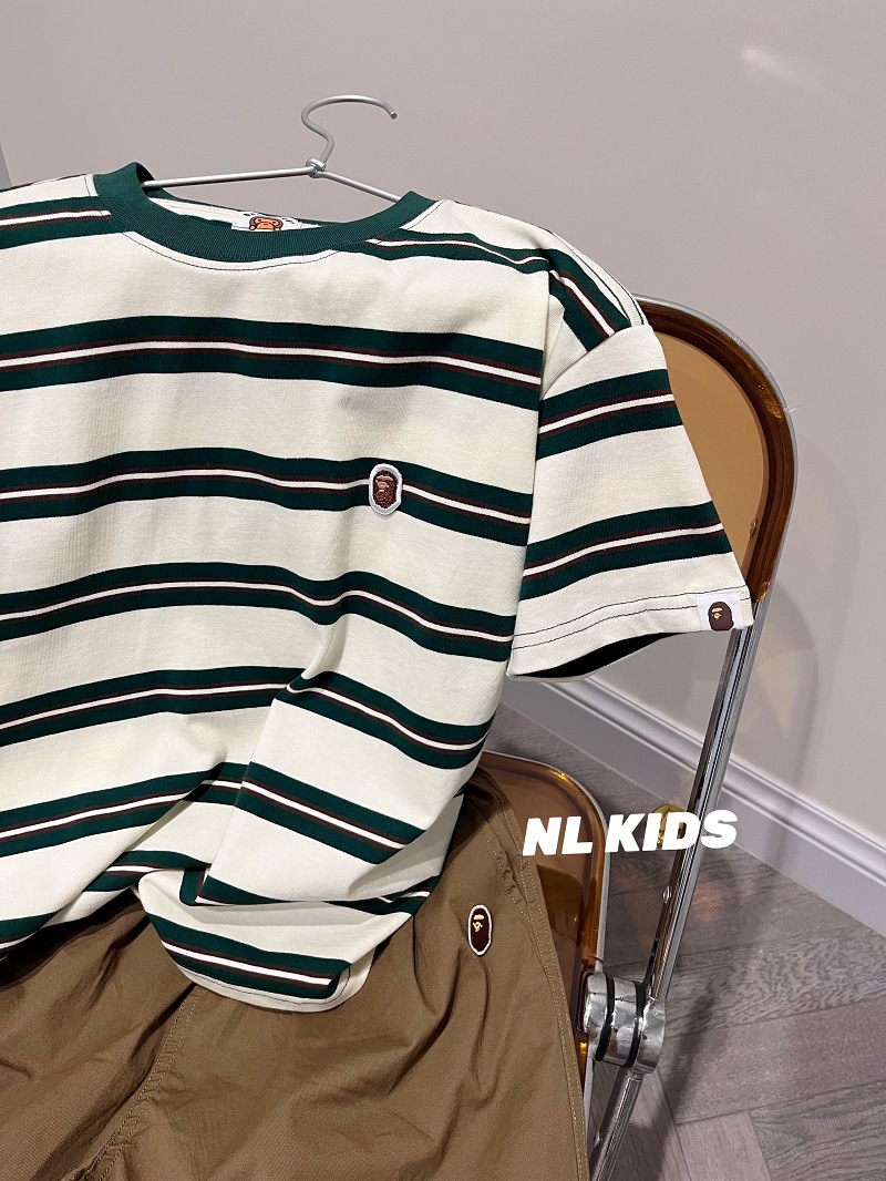 트렌디한 브랜드는 멋지고 화이트닝 효과가 있어요! 남아용 녹색 줄무늬 반팔 티셔츠 Mshendidi 줄무늬 원숭이 반팔 티셔츠스토어 가기