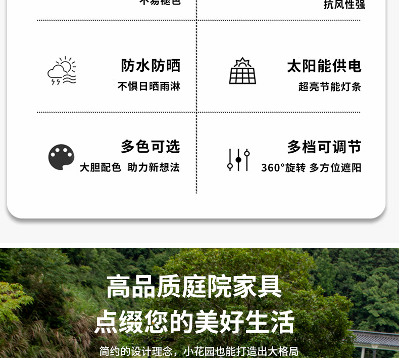 야외용 태양 우산, 햇빛 가림막, 휴대용 정원 태양광 충전 우산, 대형 빌라 테라스 우산스토어 가기