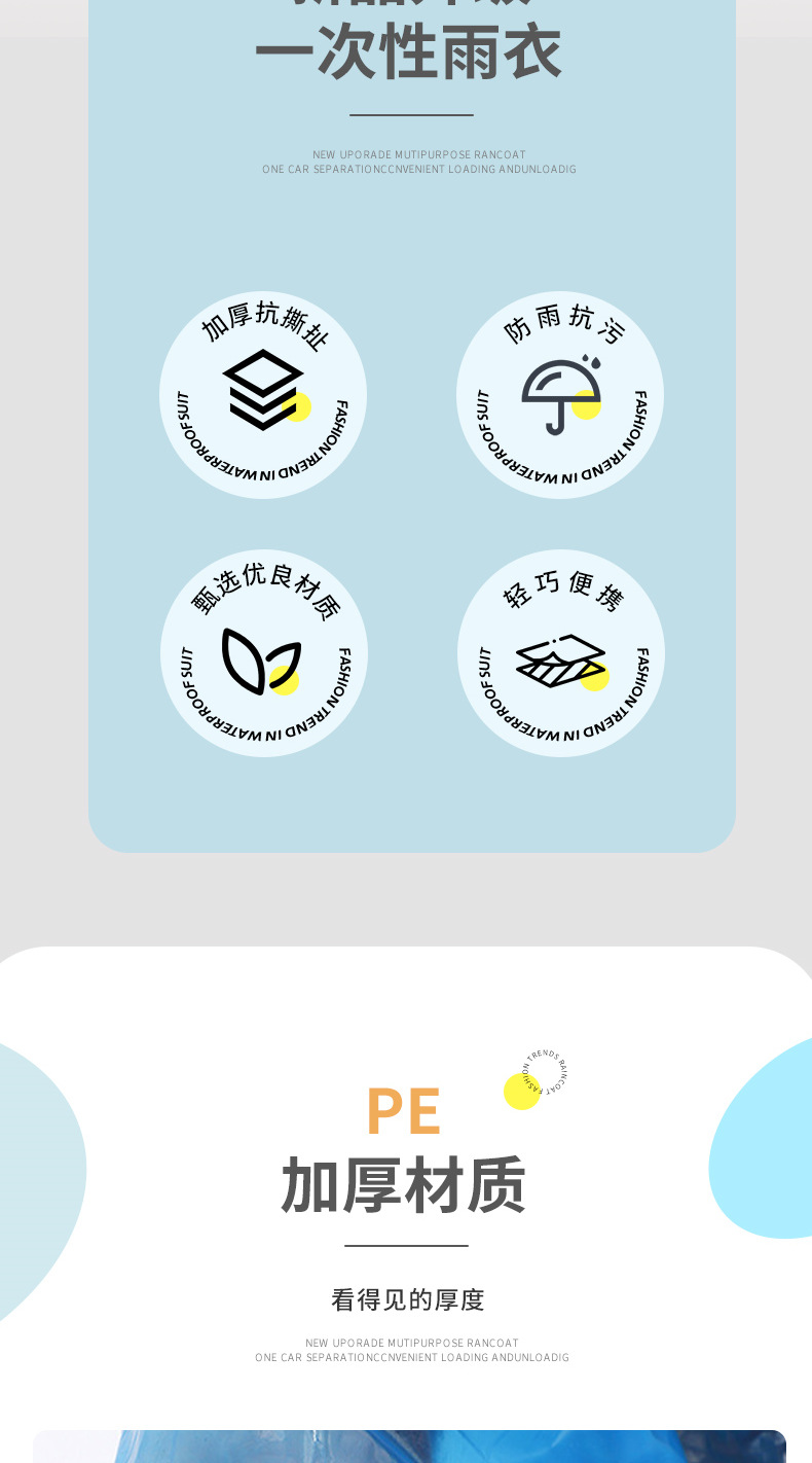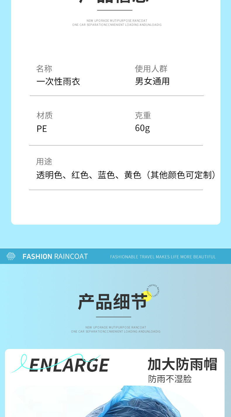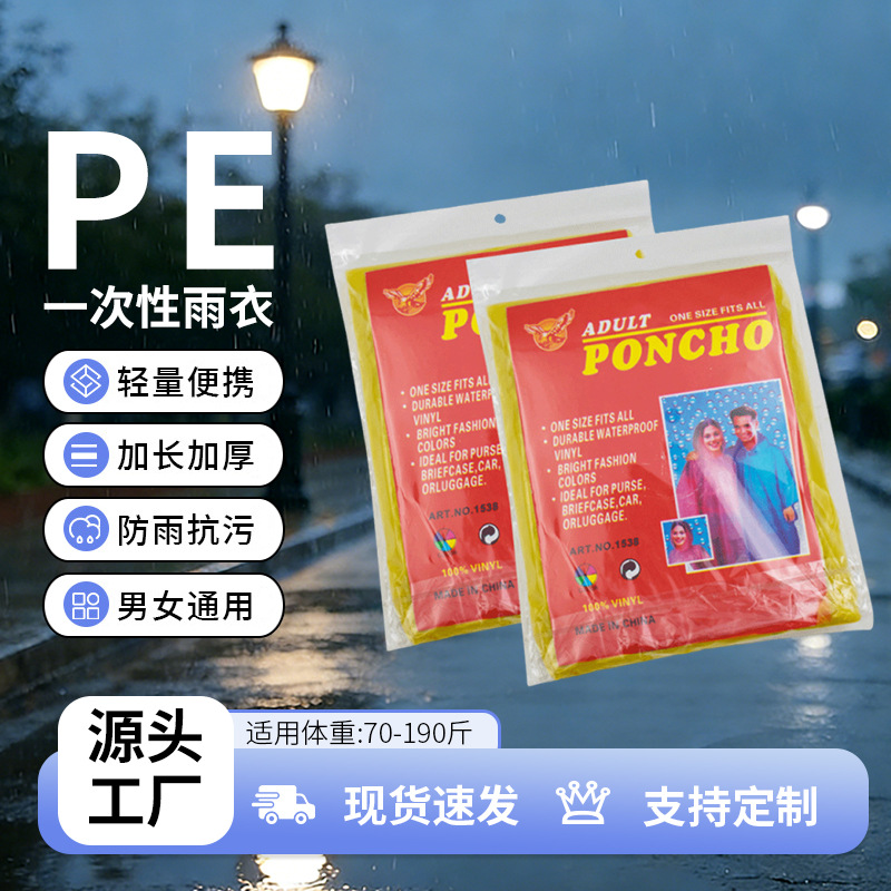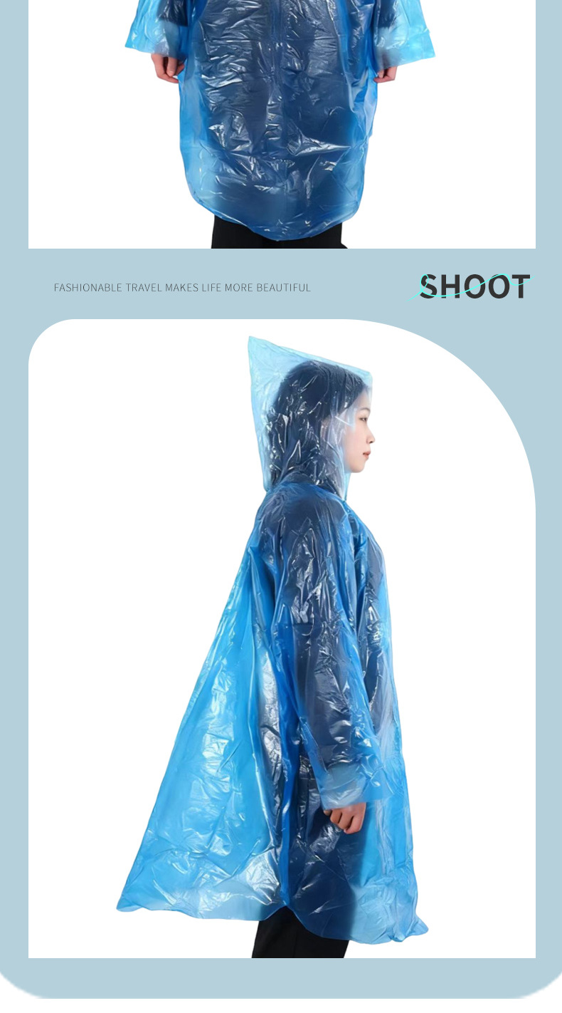 공장 직송, 고무줄이 달린 투명한 일회용 성인용 중간 길이 비옷, 도매, 야외 휴대용스토어 가기