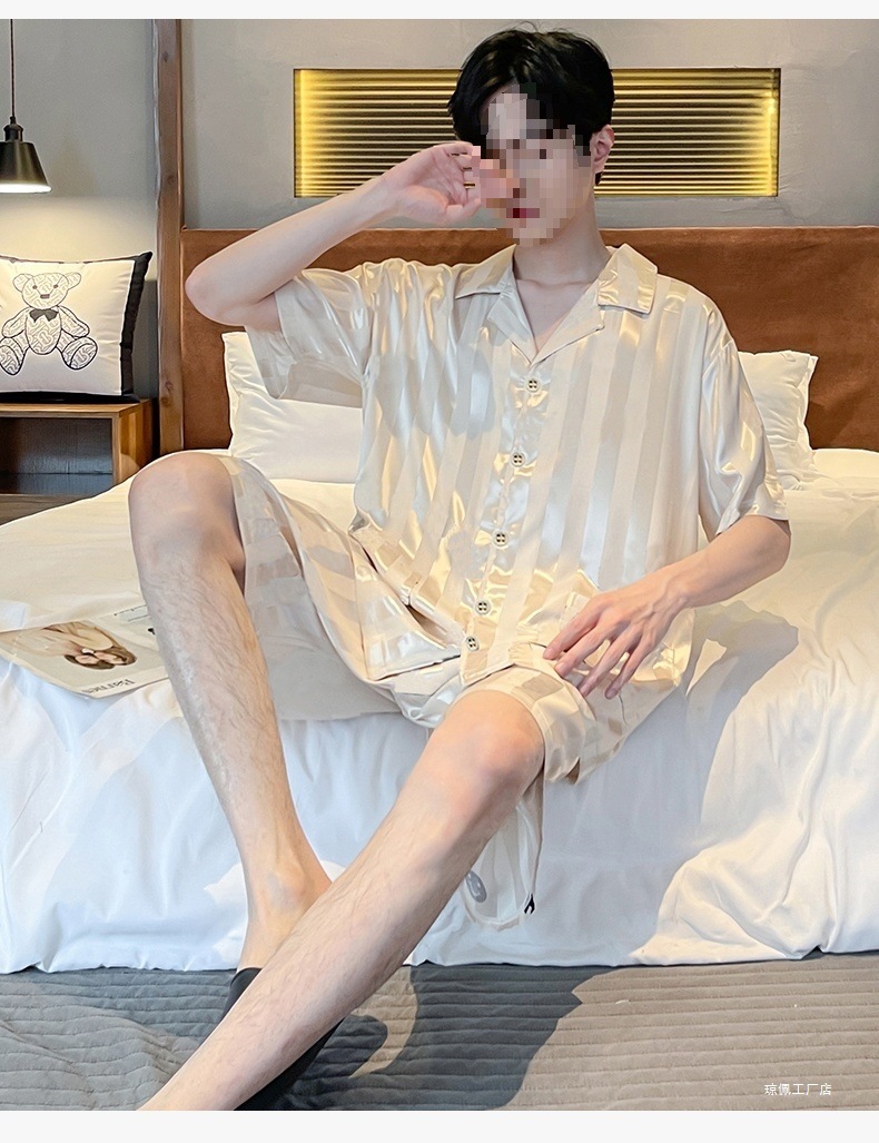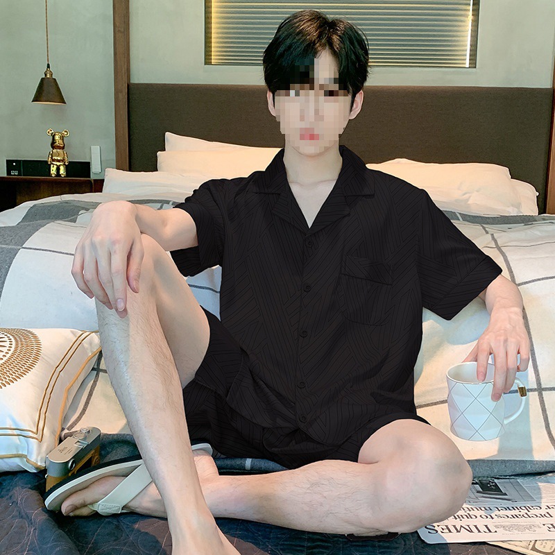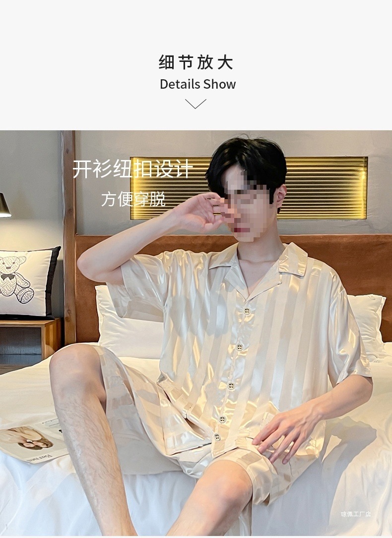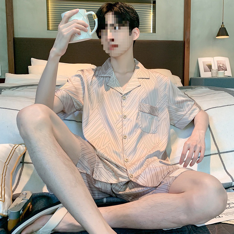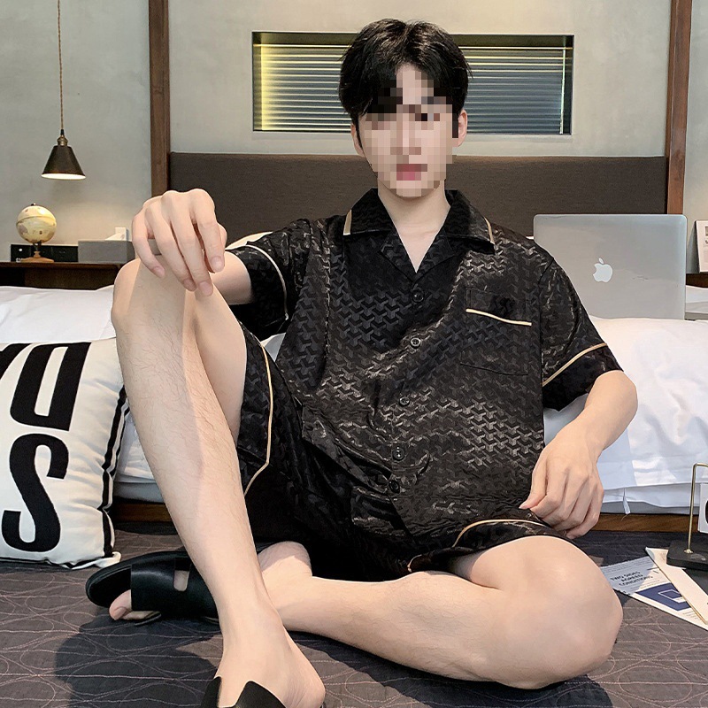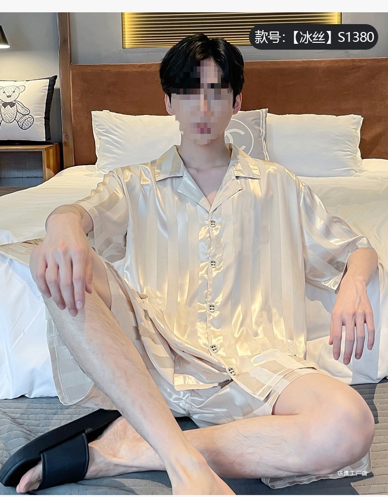 남성용 잠옷 여름 얼음 실크 반팔 여름 남성용 시뮬레이션 실크 여름 2025 새로운 얇은 가정 의류 세트스토어 가기