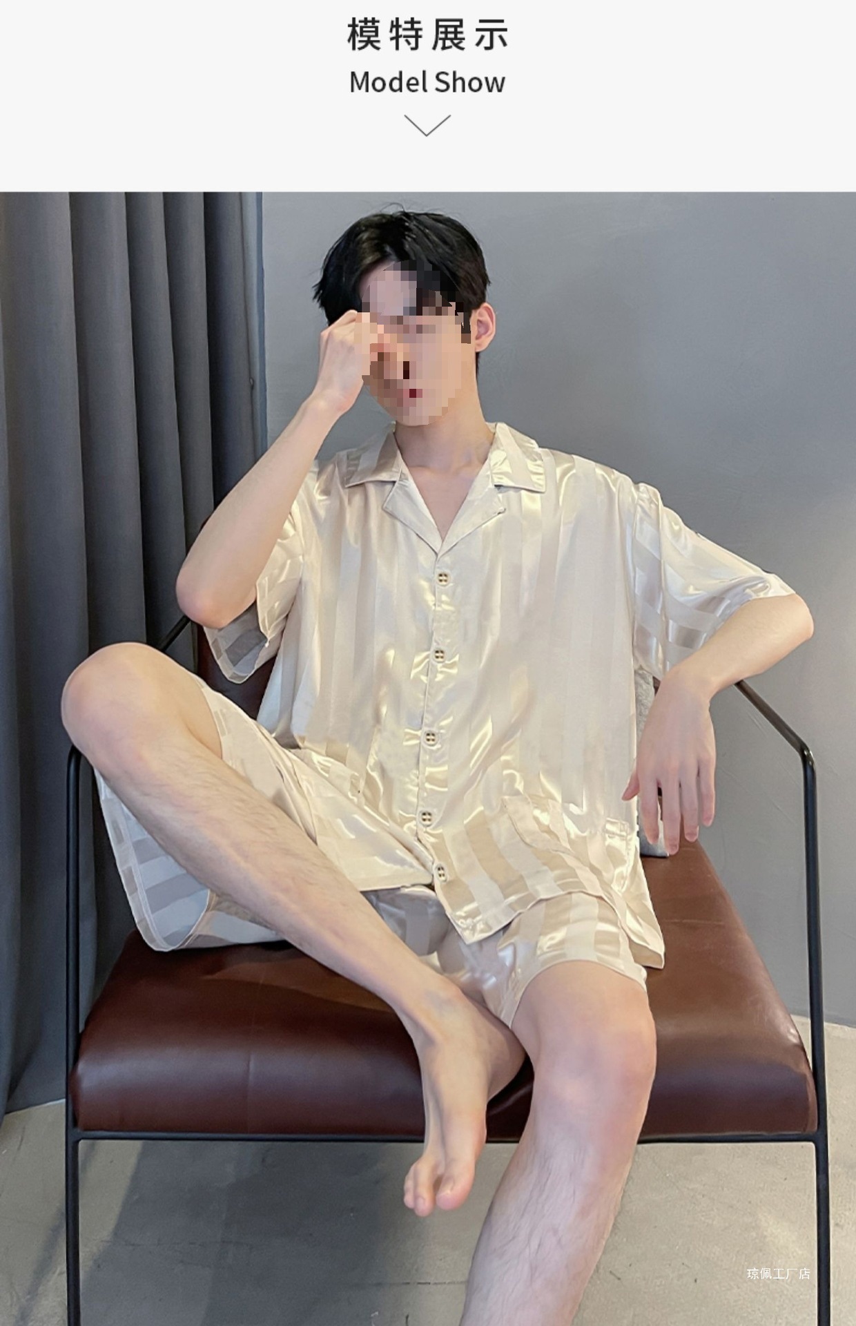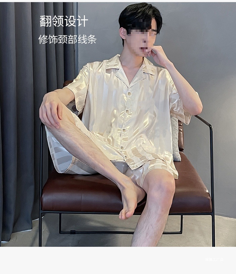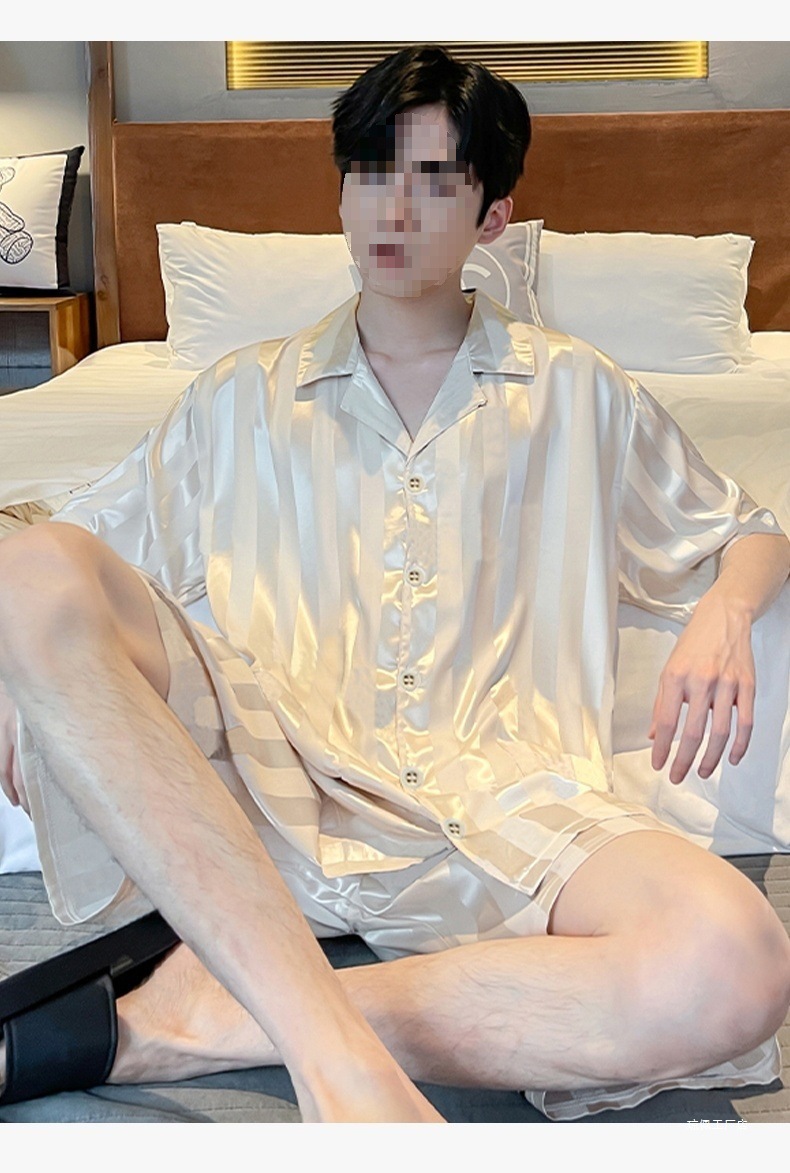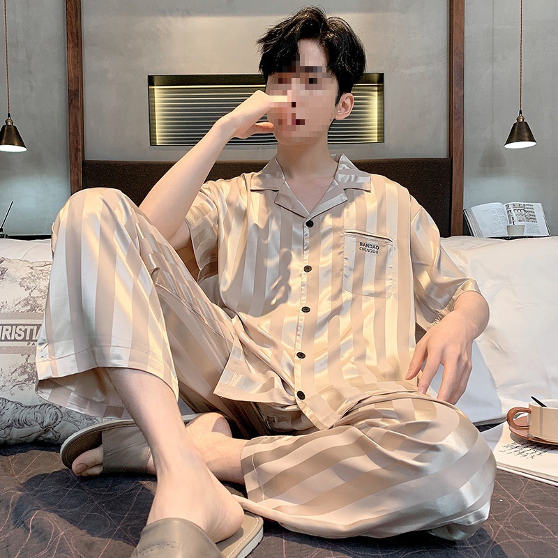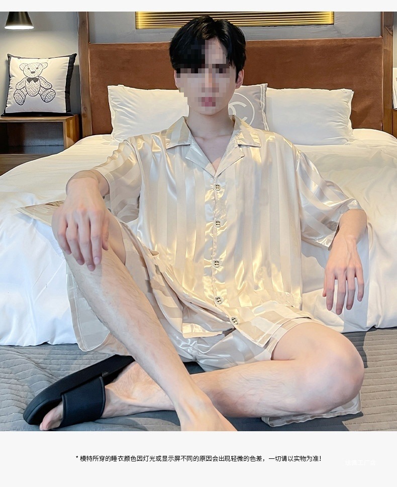 남성용 잠옷 여름 얼음 실크 반팔 여름 남성용 시뮬레이션 실크 여름 2025 새로운 얇은 가정 의류 세트스토어 가기
