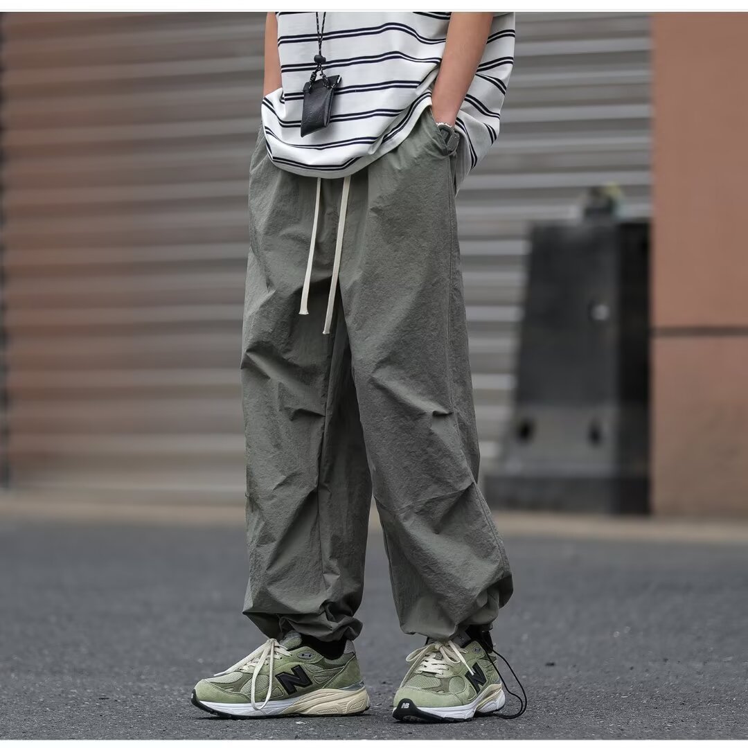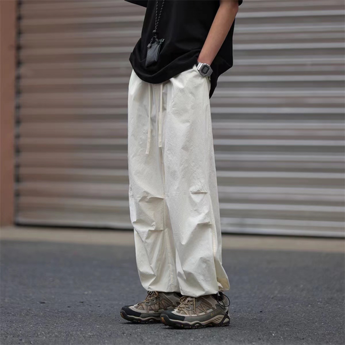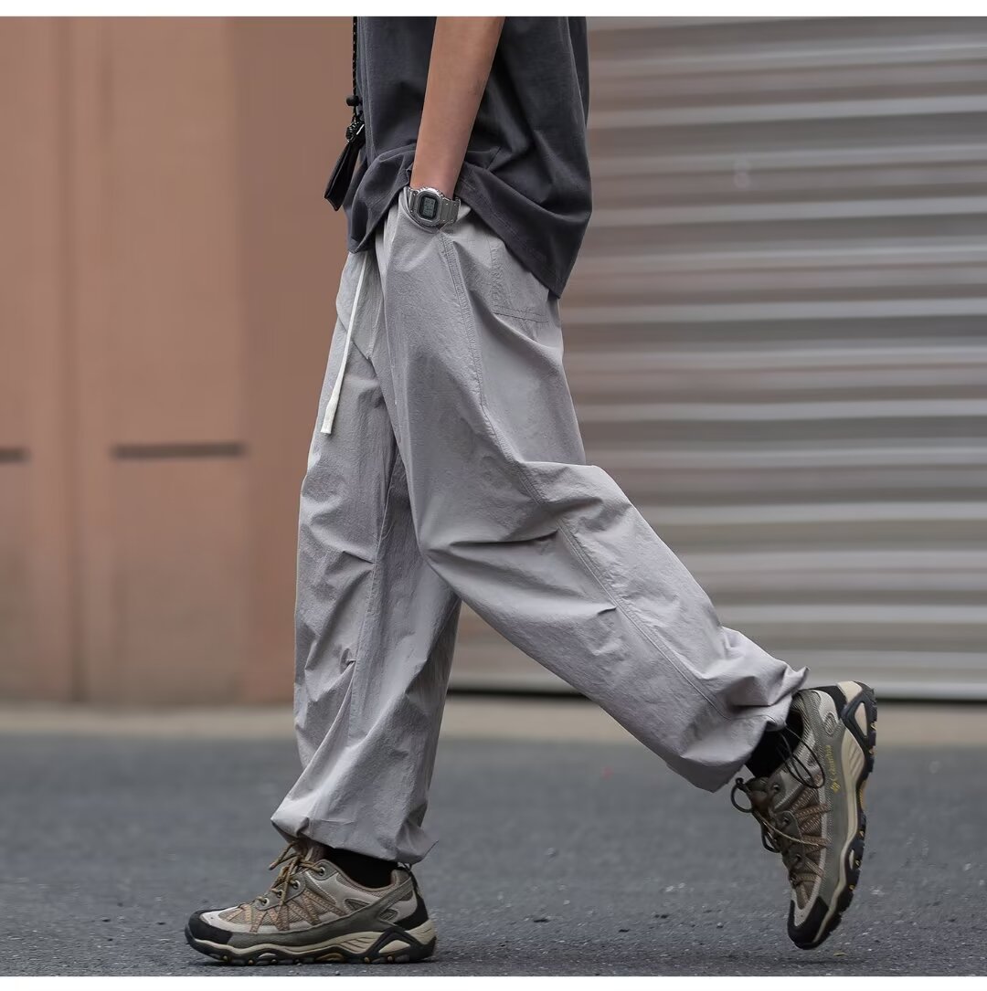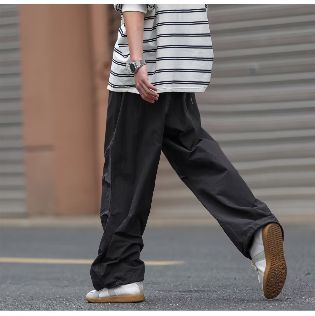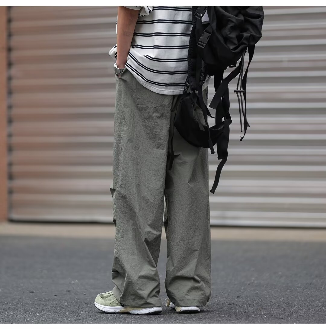 남성용 크로스보더 아메리칸 방수 바지, 가을 주름 스트레이트 루즈 작업복, 남성용 블랙 팬츠, 캐주얼 바지스토어 가기