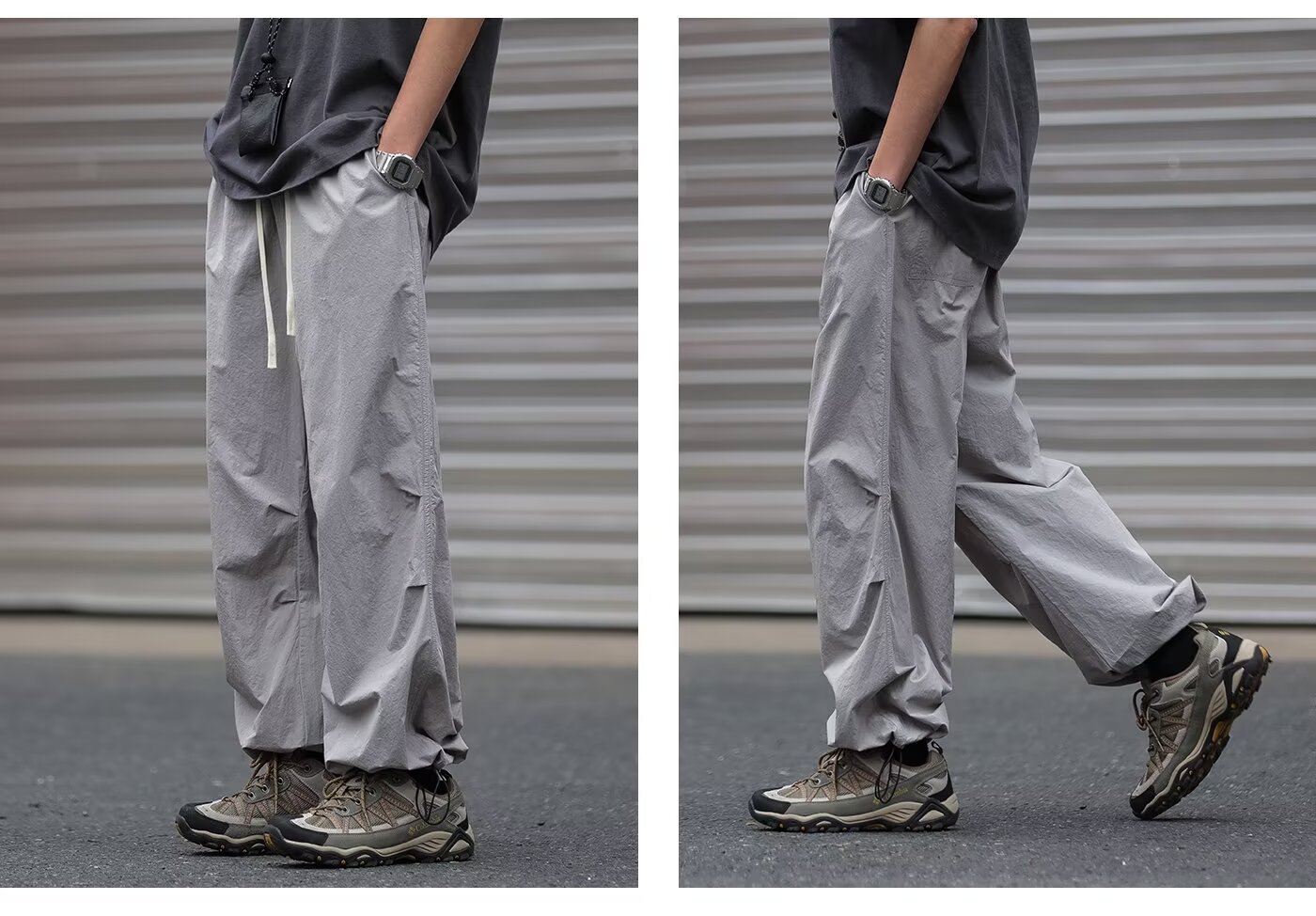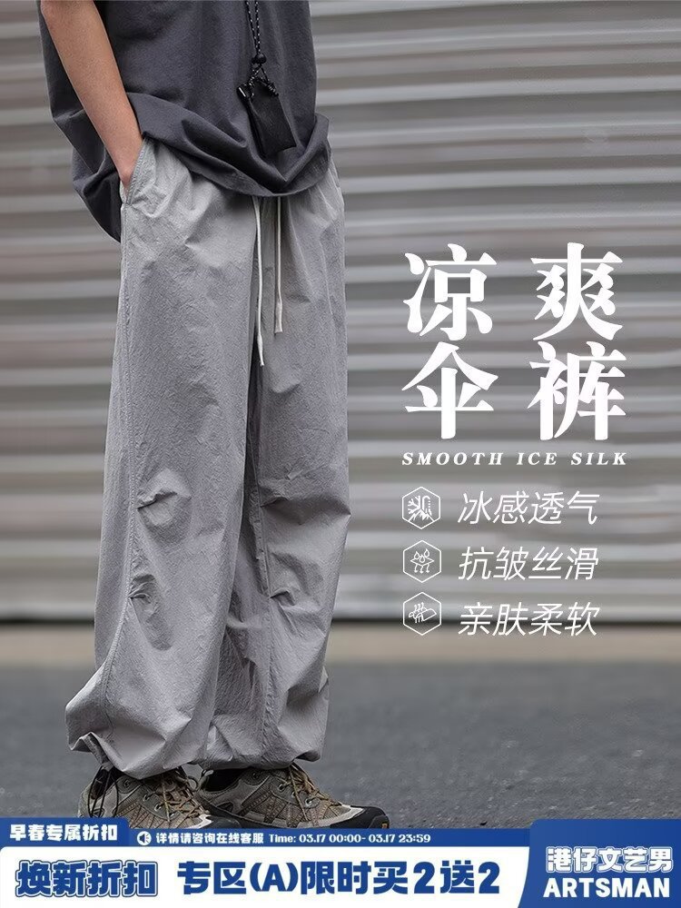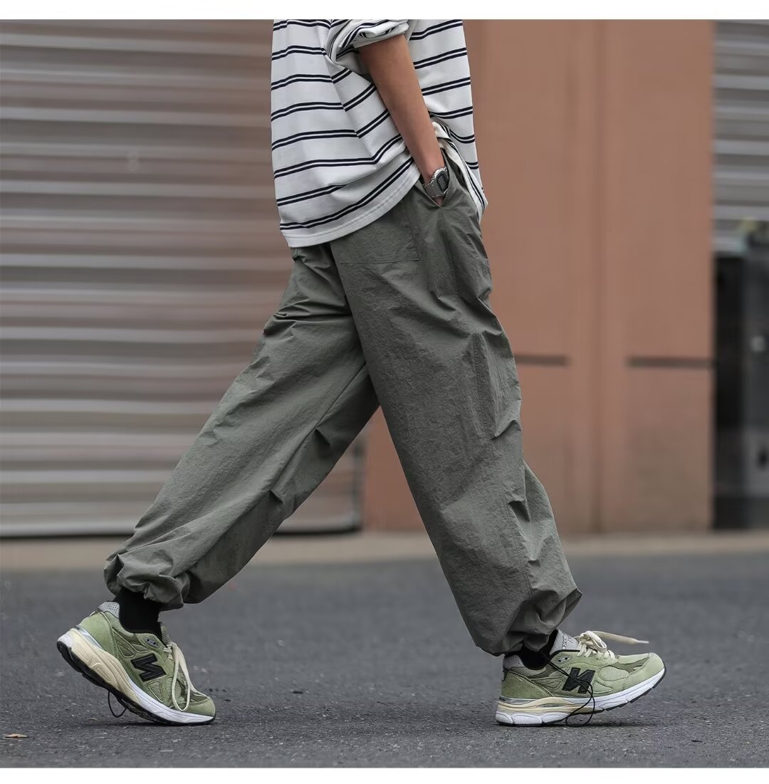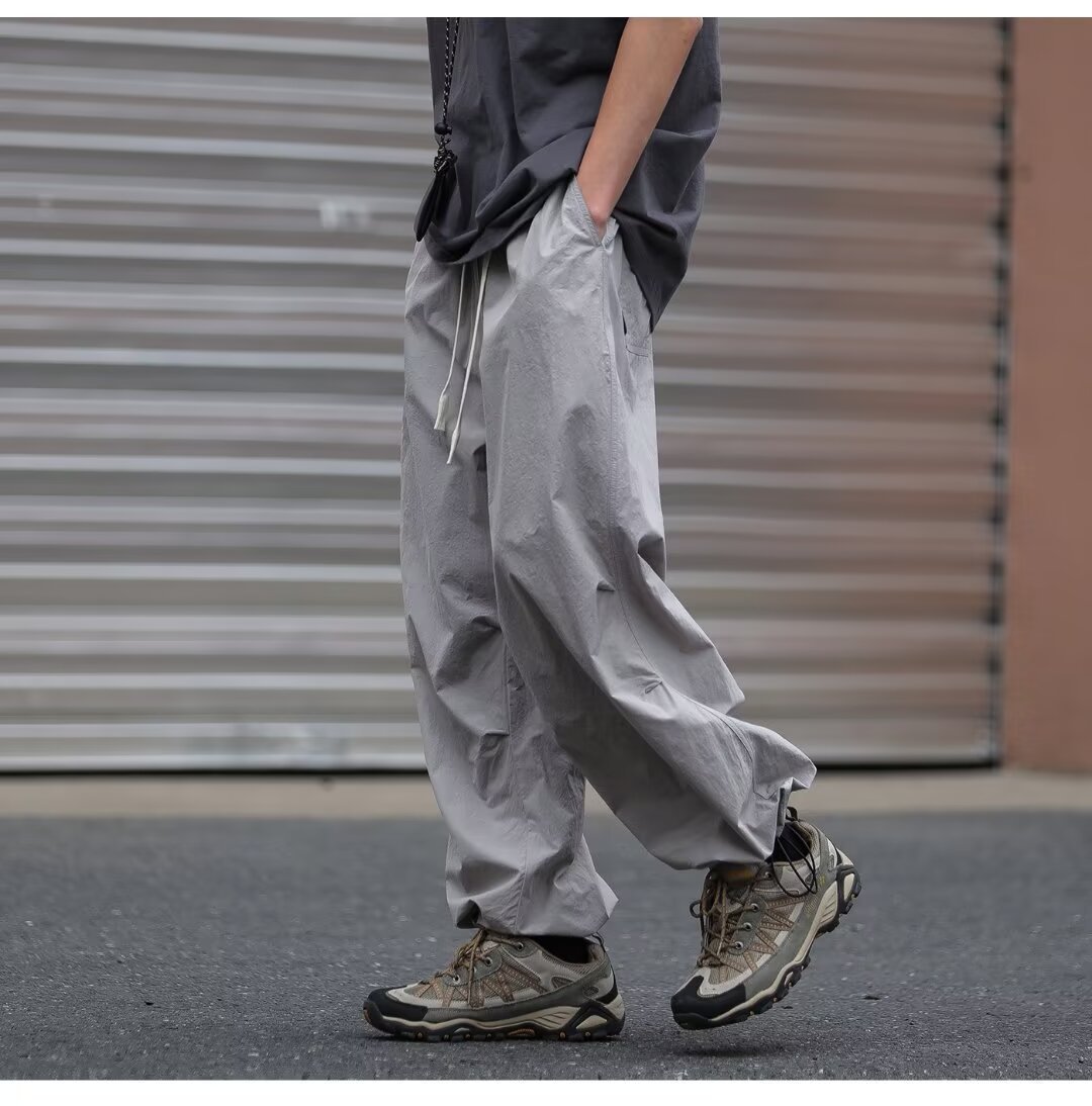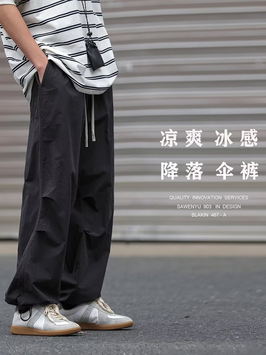 남성용 크로스보더 아메리칸 방수 바지, 가을 주름 스트레이트 루즈 작업복, 남성용 블랙 팬츠, 캐주얼 바지스토어 가기