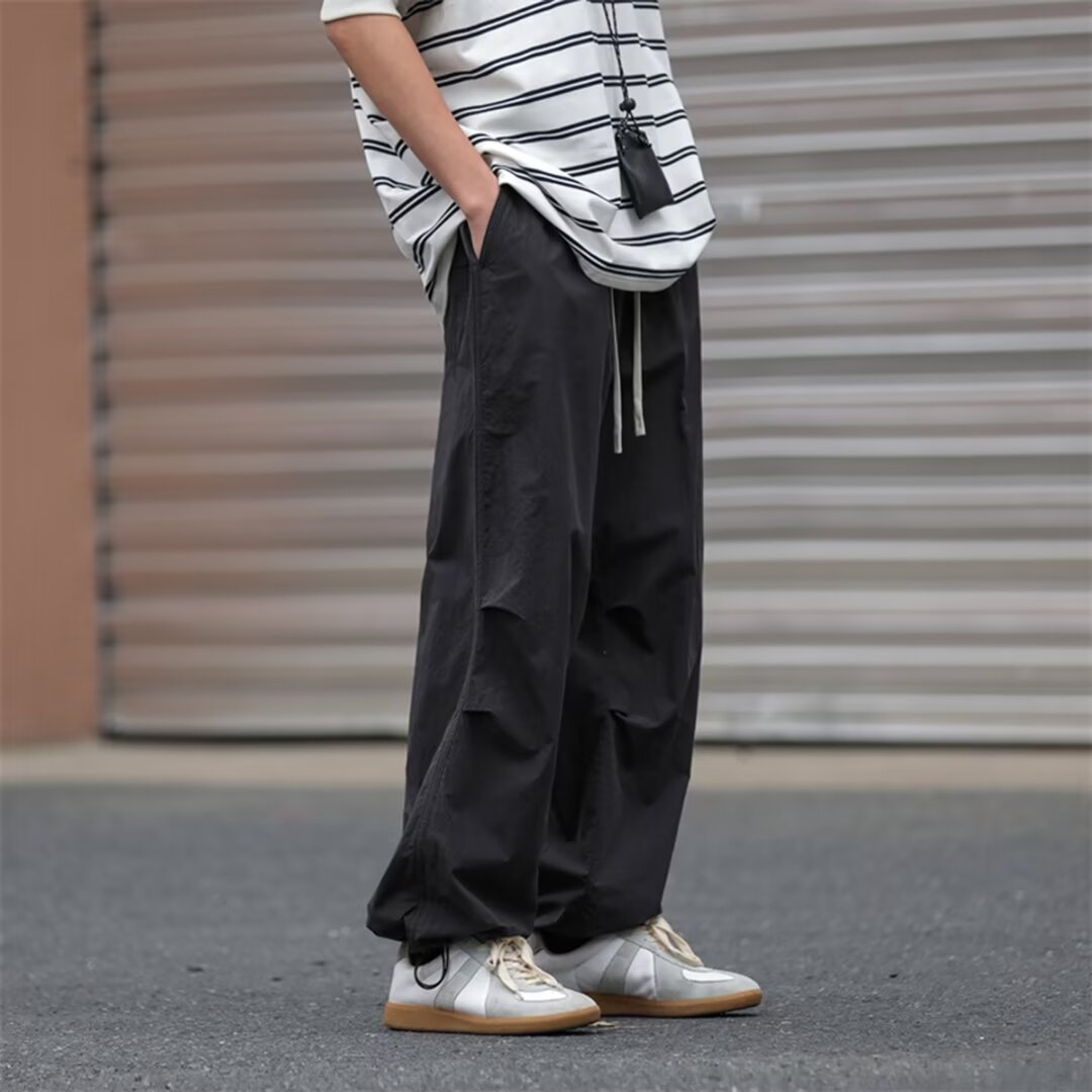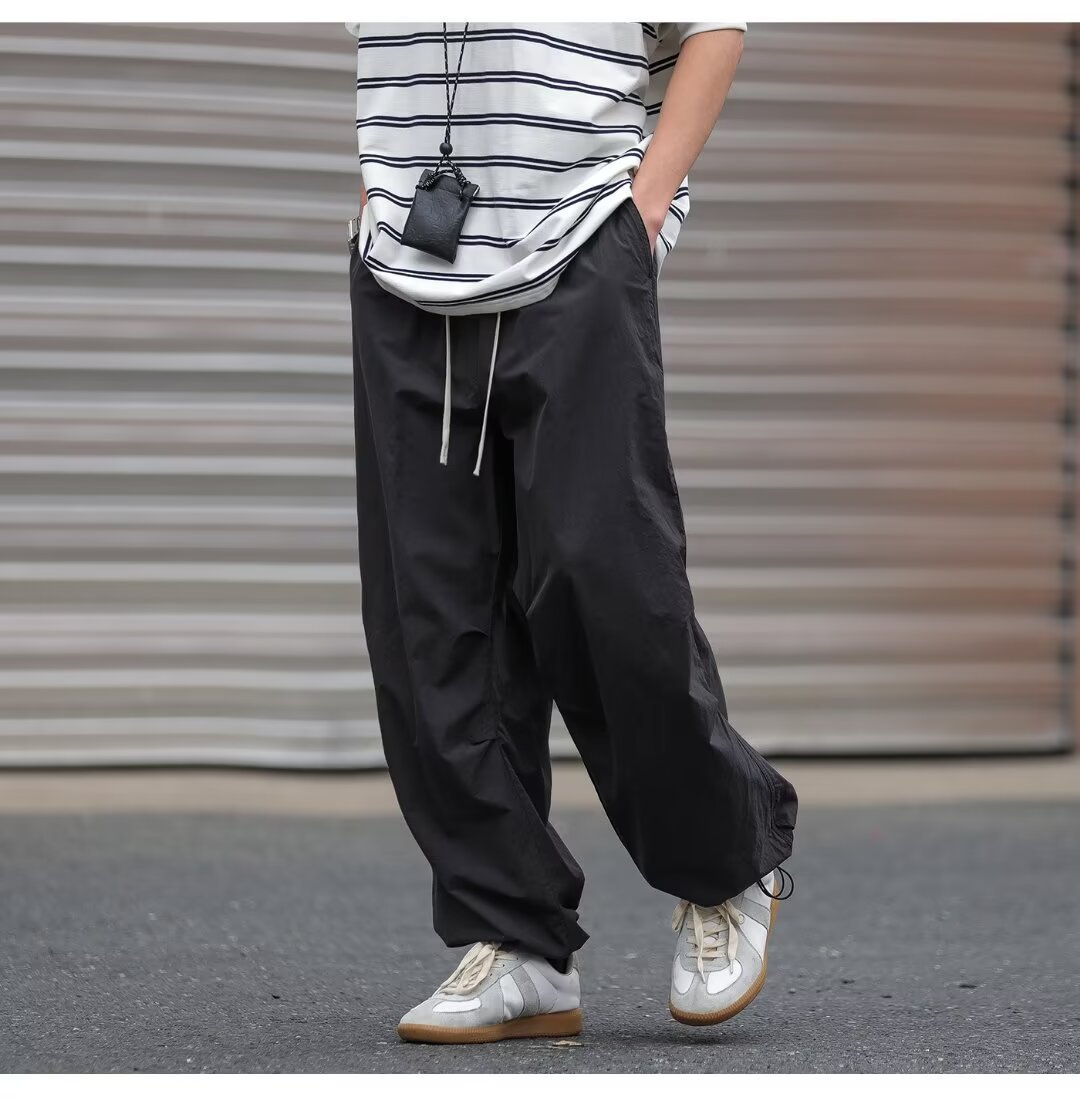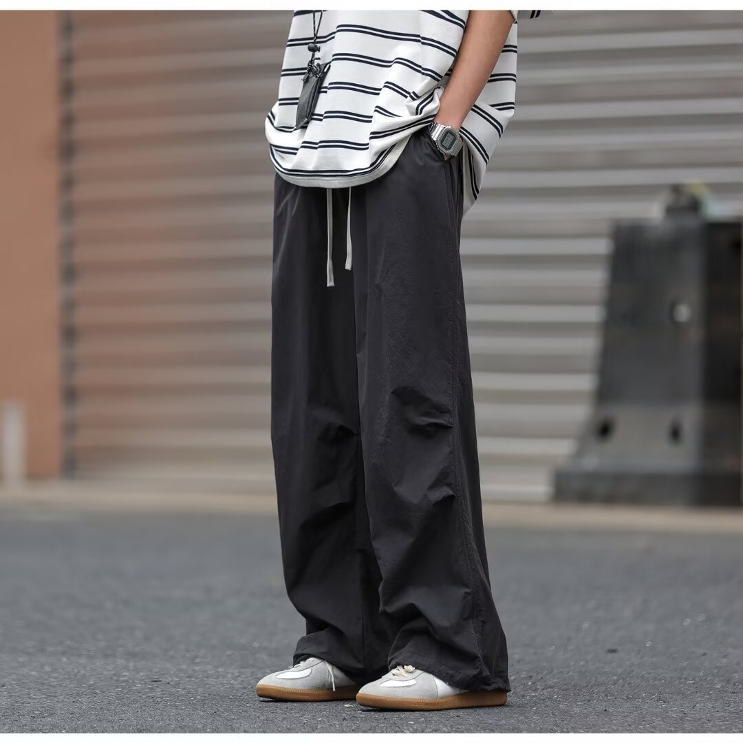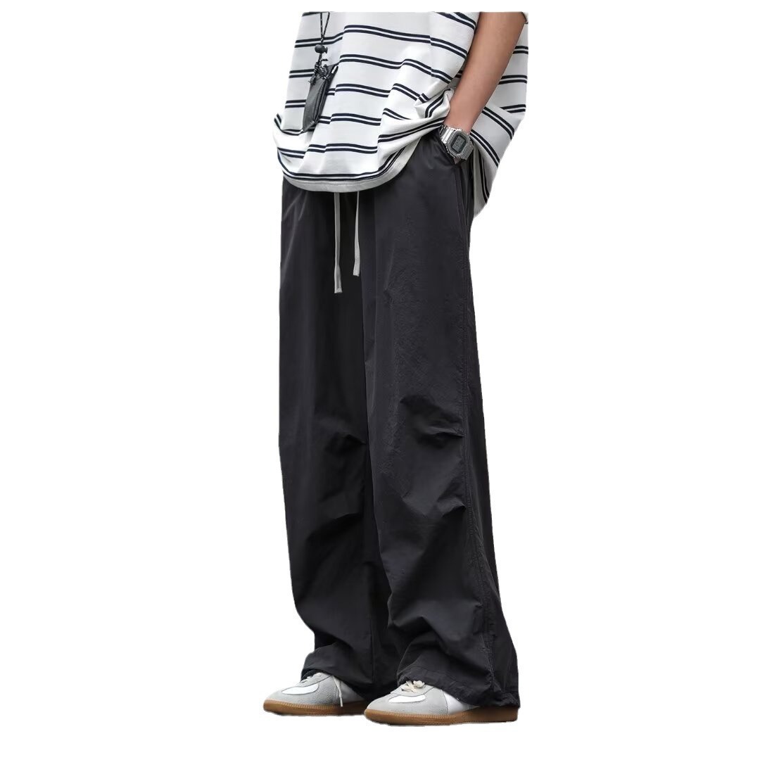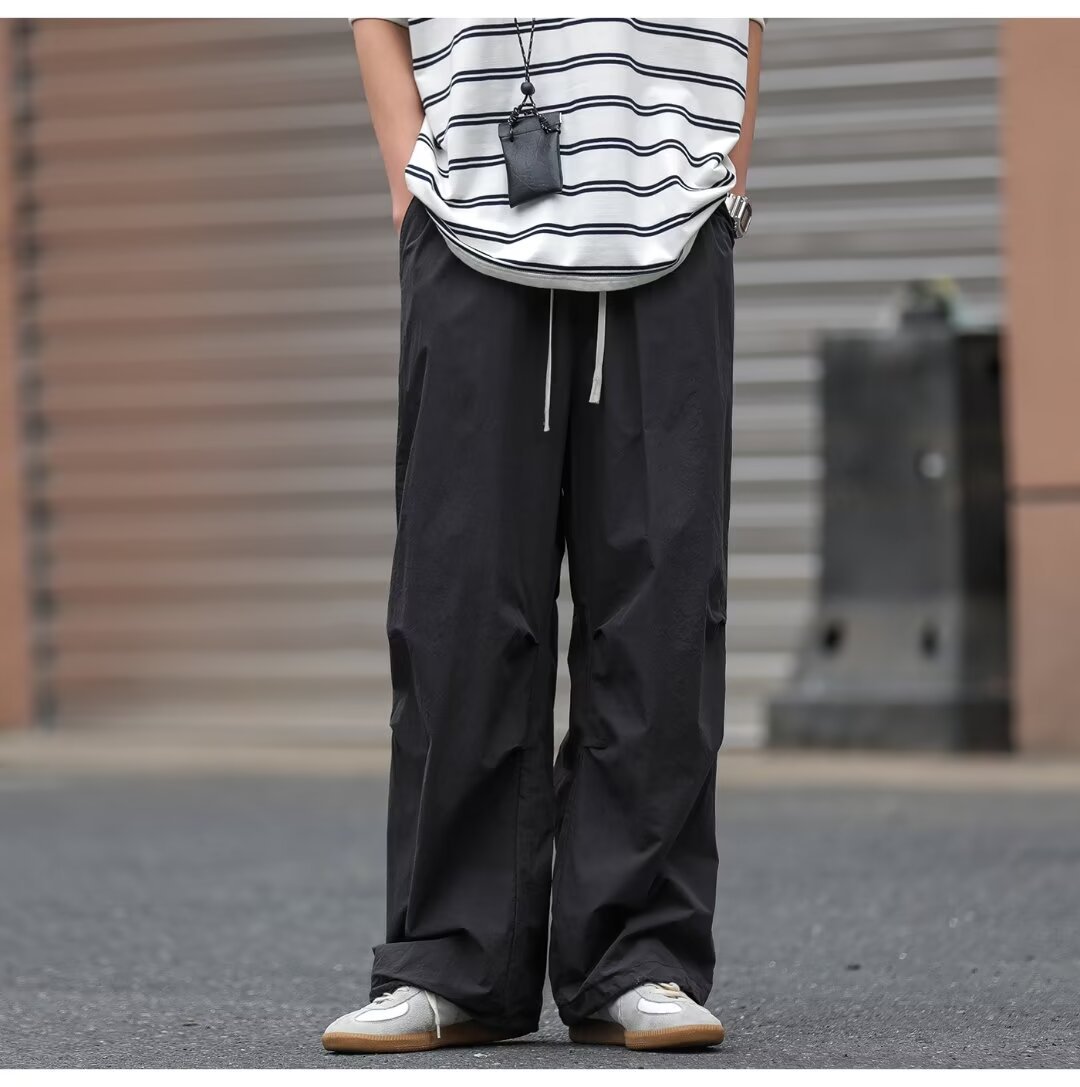 남성용 크로스보더 아메리칸 방수 바지, 가을 주름 스트레이트 루즈 작업복, 남성용 블랙 팬츠, 캐주얼 바지