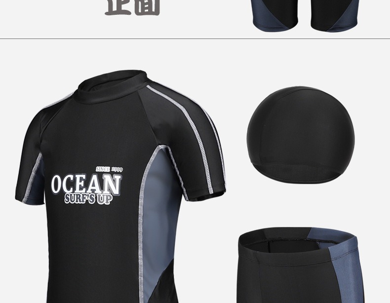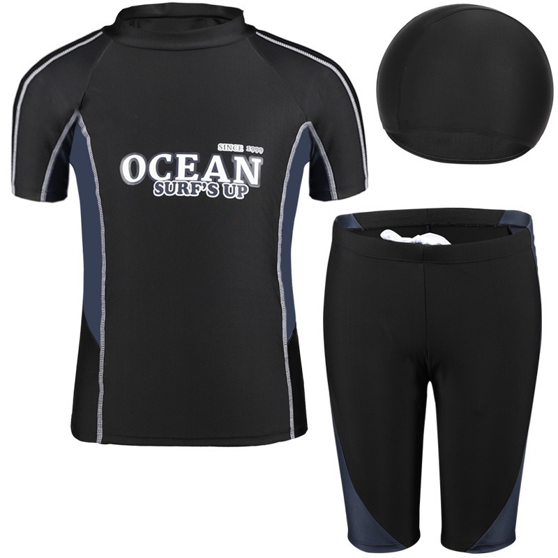 큰 어린이를 위한 새로운 어린이 수영복, 속건성, 중대형 어린이 소년 스플릿 복서 바지, 자외선 차단 수영복 세트