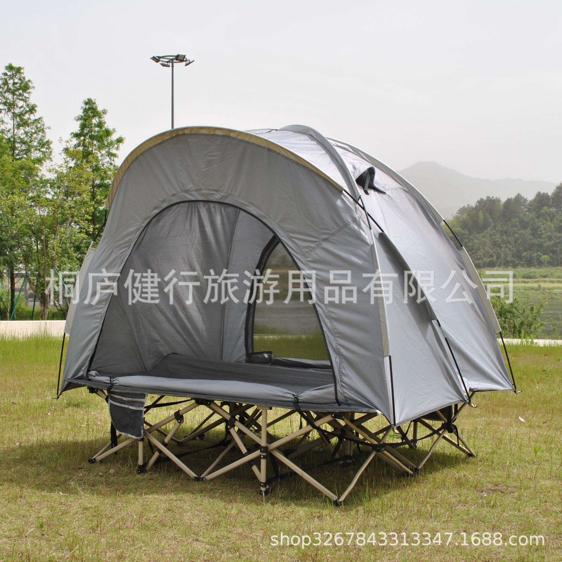 功能特点:这款双人离地行军床帐篷,在原有的蚕豆两人帐篷基础上进行了升级,做行军床帐篷使用的时候,可以配合市面上的绝大部分双人行军床帐篷配合使用,在户外配合行军床,睡的更安心舒服。脱离行军床,单独作为野营帐篷使用时,这款蚕豆两人帐篷采用内外帐一体化的设计,极大地减轻了重量简化了搭建过程的同时,又确保了兼有内帐网纱透气的优点。前后开门设计用一层网纱一层布,两侧有防水透气窗设计。整体帐篷立挺饱满,1.4米的高度确保了两个成人都可以在帐篷里坐直伸懒腰,空间舒适度非常好。帐篷整体支架采用双交叉杆子设计,杆子之间三角结构稳固性非常好,配合地丁风绳抗风性能好。