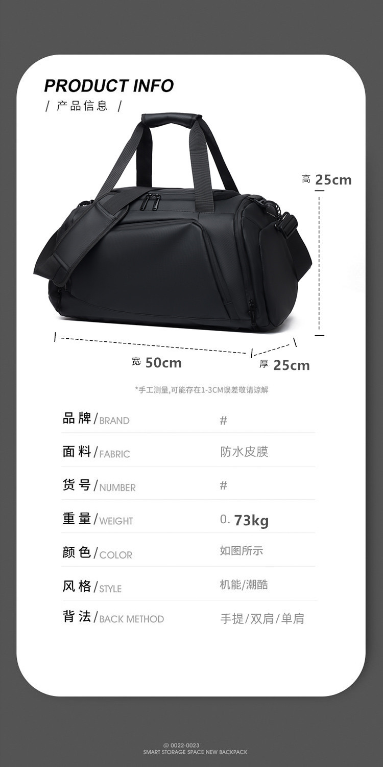 대용량 캐주얼 크로스백 여행가방, 건식 및 습식 분리, 더블백, 다기능 휴대용 피트니스 백팩, 경량스토어 가기