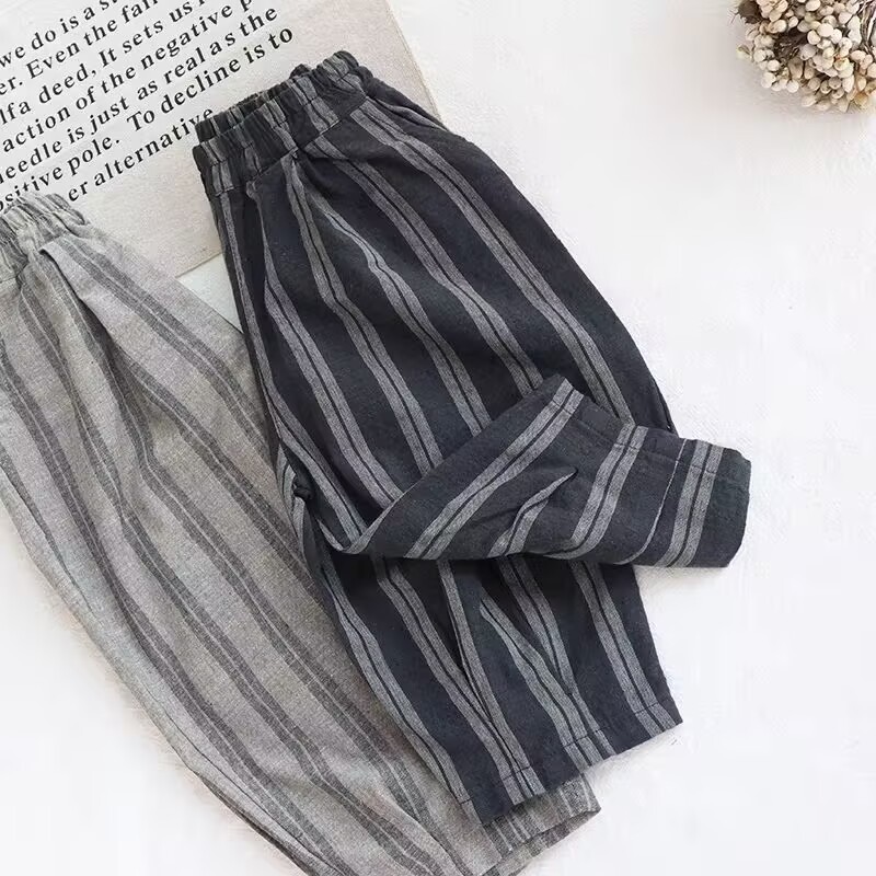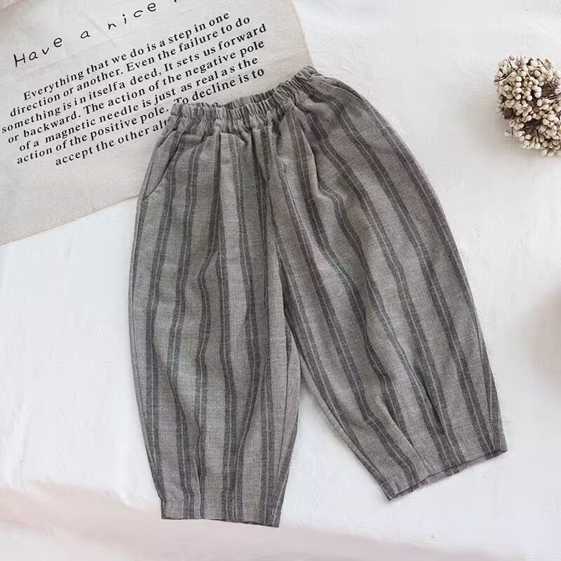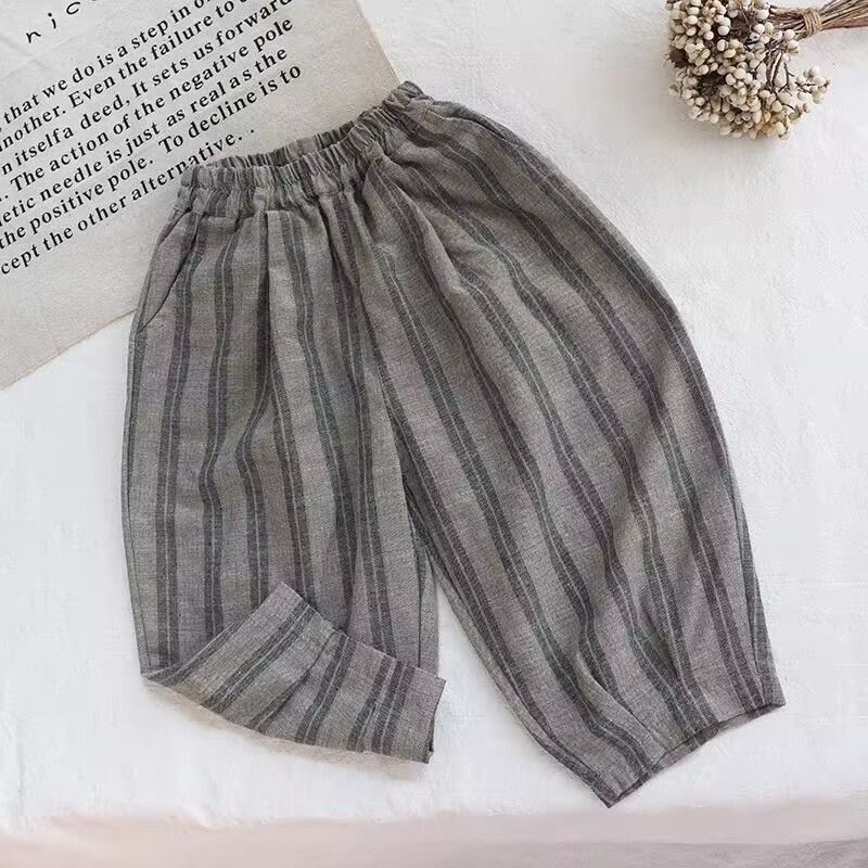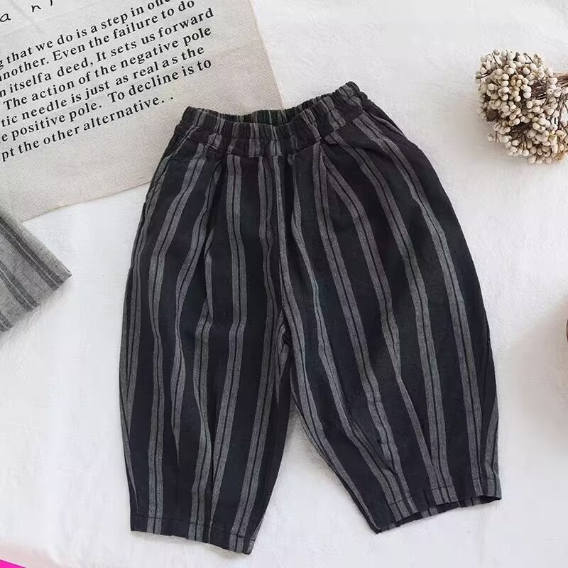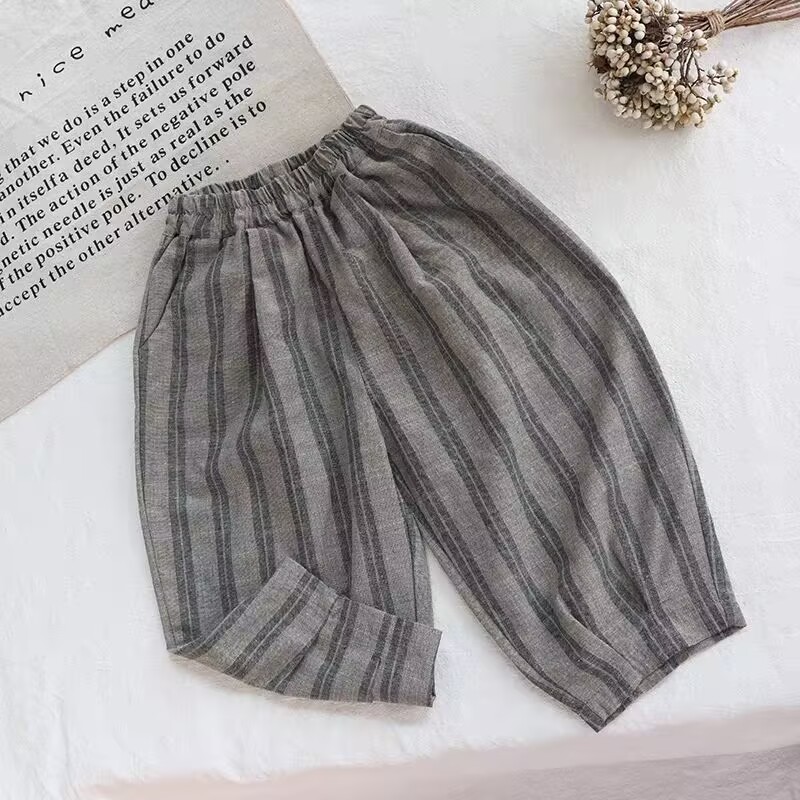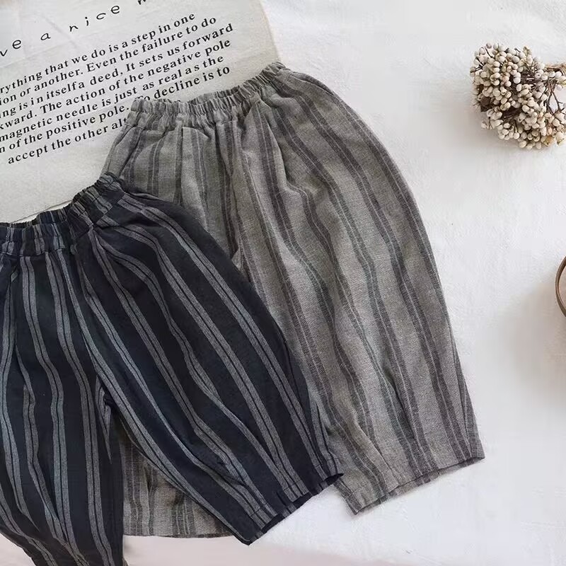 가을 겨울 신상 남아 린넨 면바지 아동 캐주얼 바지 다용도 일본 레트로 스트라이프 통기성 모기 방지 바지스토어 가기
