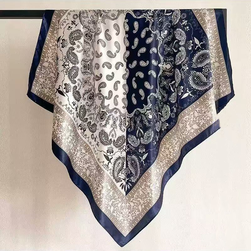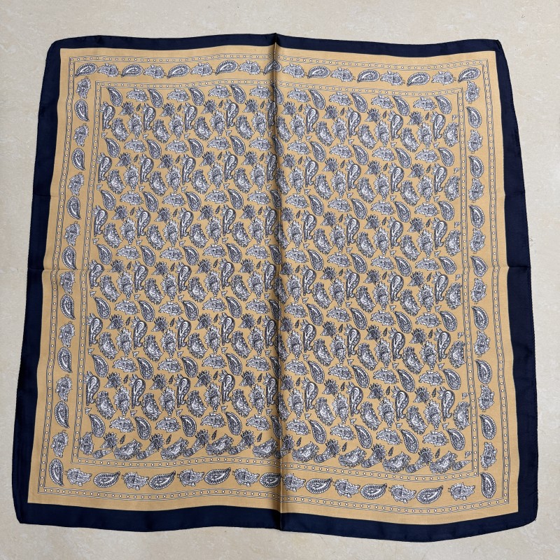 • 네이비 블루 캐슈넛 실크 스카프 스퀘어 스카프