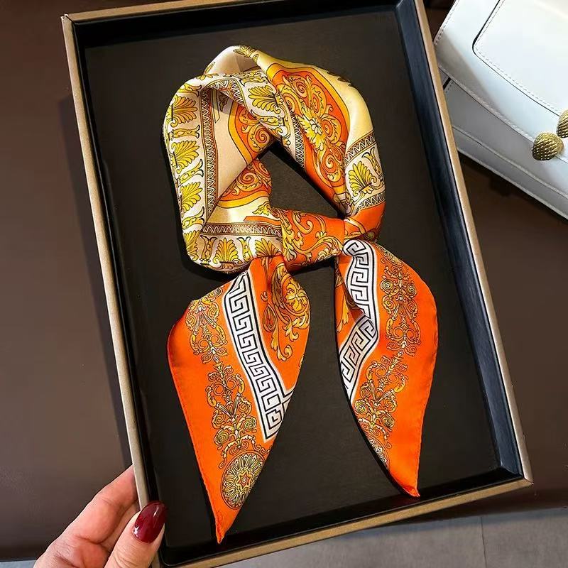 • 크로스보더 캐슈 오렌지 실크 스카프 스퀘어 스카프
