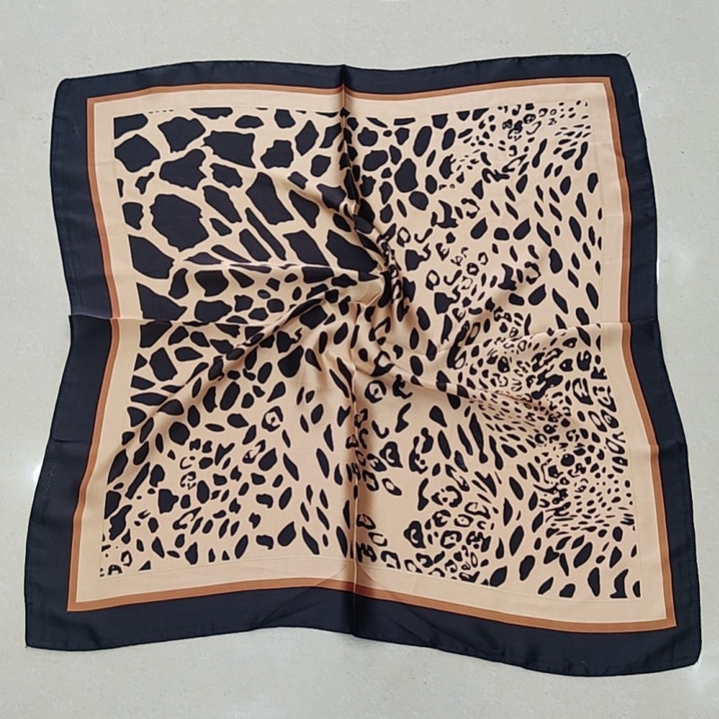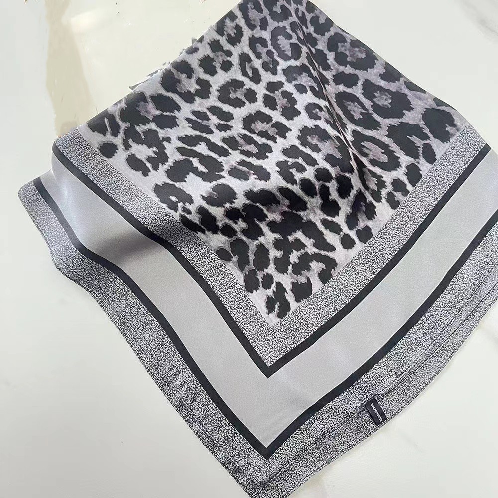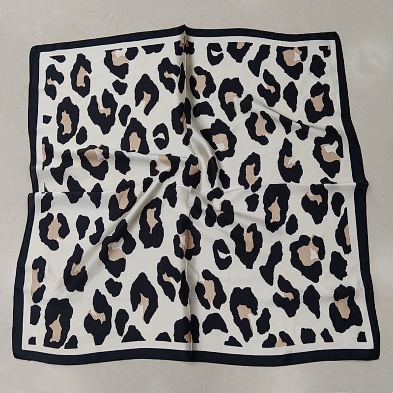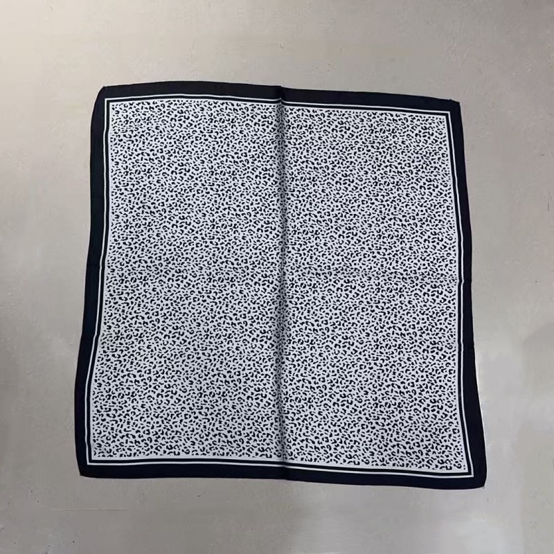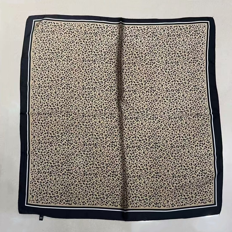 • 작은 표범 무늬 블랙 엣지 실크 스카프 스퀘어 스카프