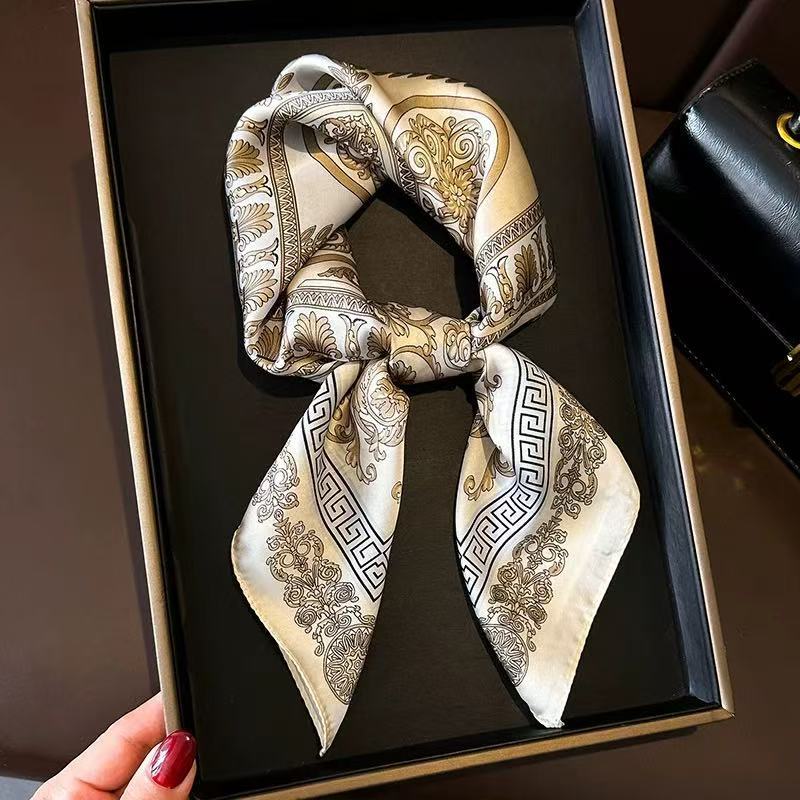 • 크로스보더 캐슈넛 베이지 실크 스카프 스퀘어 스카프