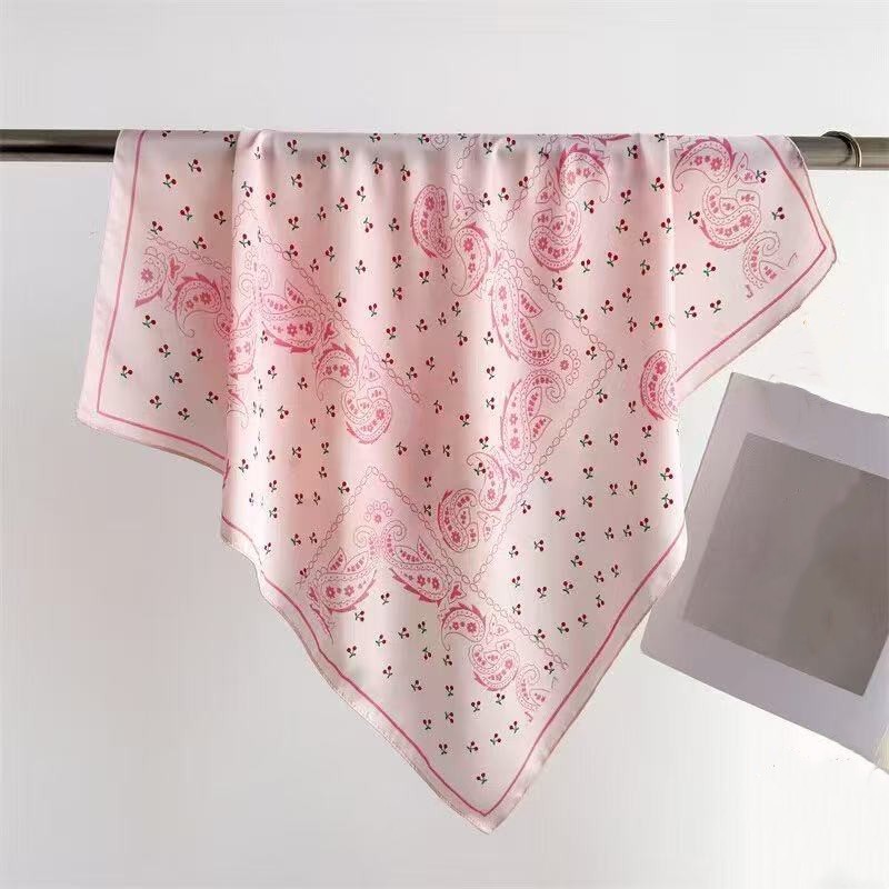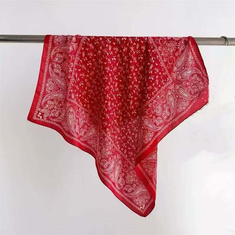 • 크로스보더 캐슈 로즈 레드 실크 스카프 스퀘어 스카프