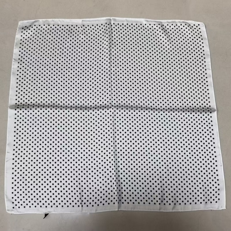 • 폴카 도트 화이트 실크 스퀘어 스카프